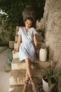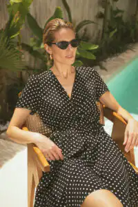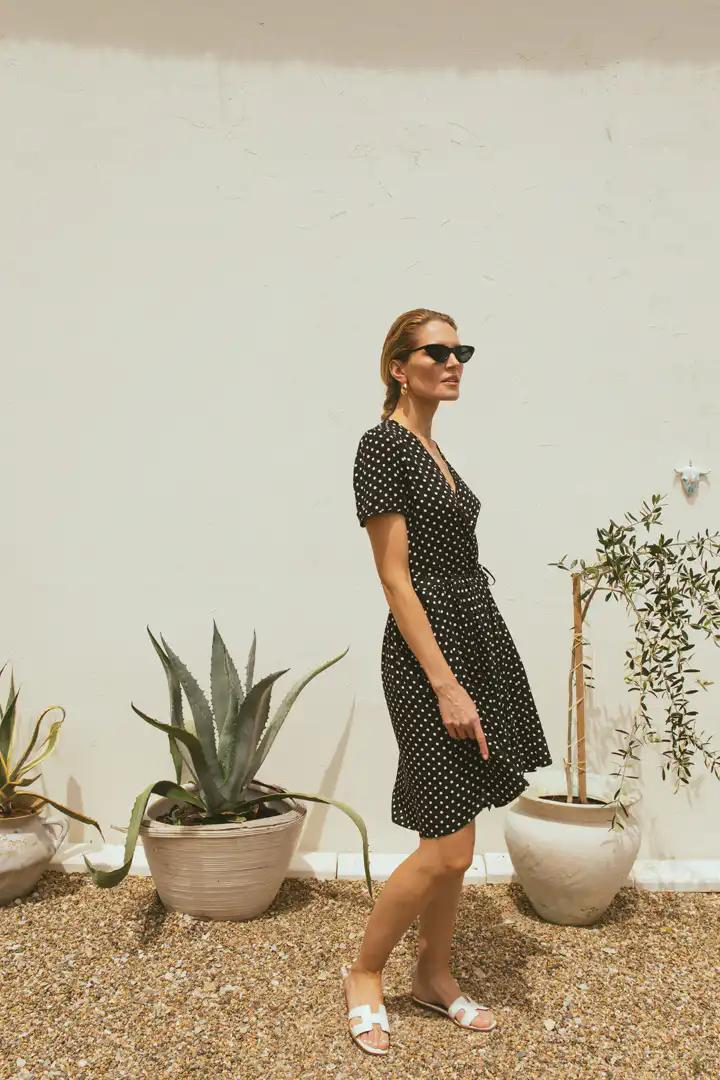 Predstavljamo vam Haljinu Lolita, koja dolazi u dve očaravajuće varijante – Dots i Blue Belle. Ovaj model mini haljine na preklop savršeno kombinuje eleganciju i praktičnost, nudeći prefinjen izgled sa svakim korakom. Sa tankim pojasom od istog materijala koji se elegantno vezuje oko struka, Haljina Lolita omogućava prilagodljivost i udobnost, istovremeno naglašavajući ženstvenu siluetu.