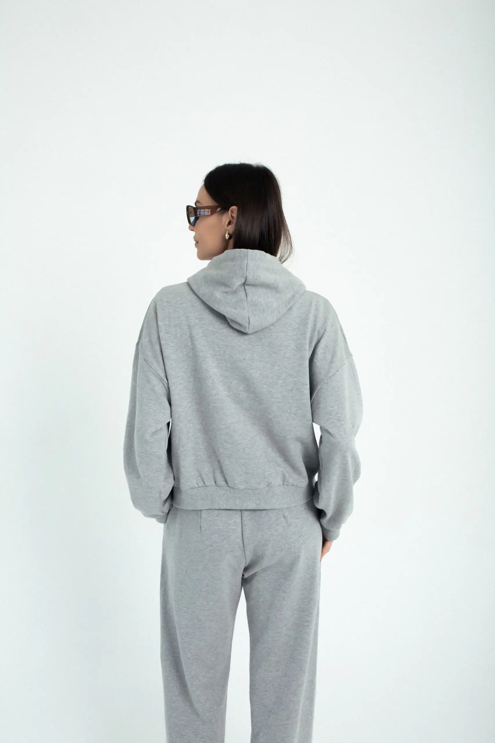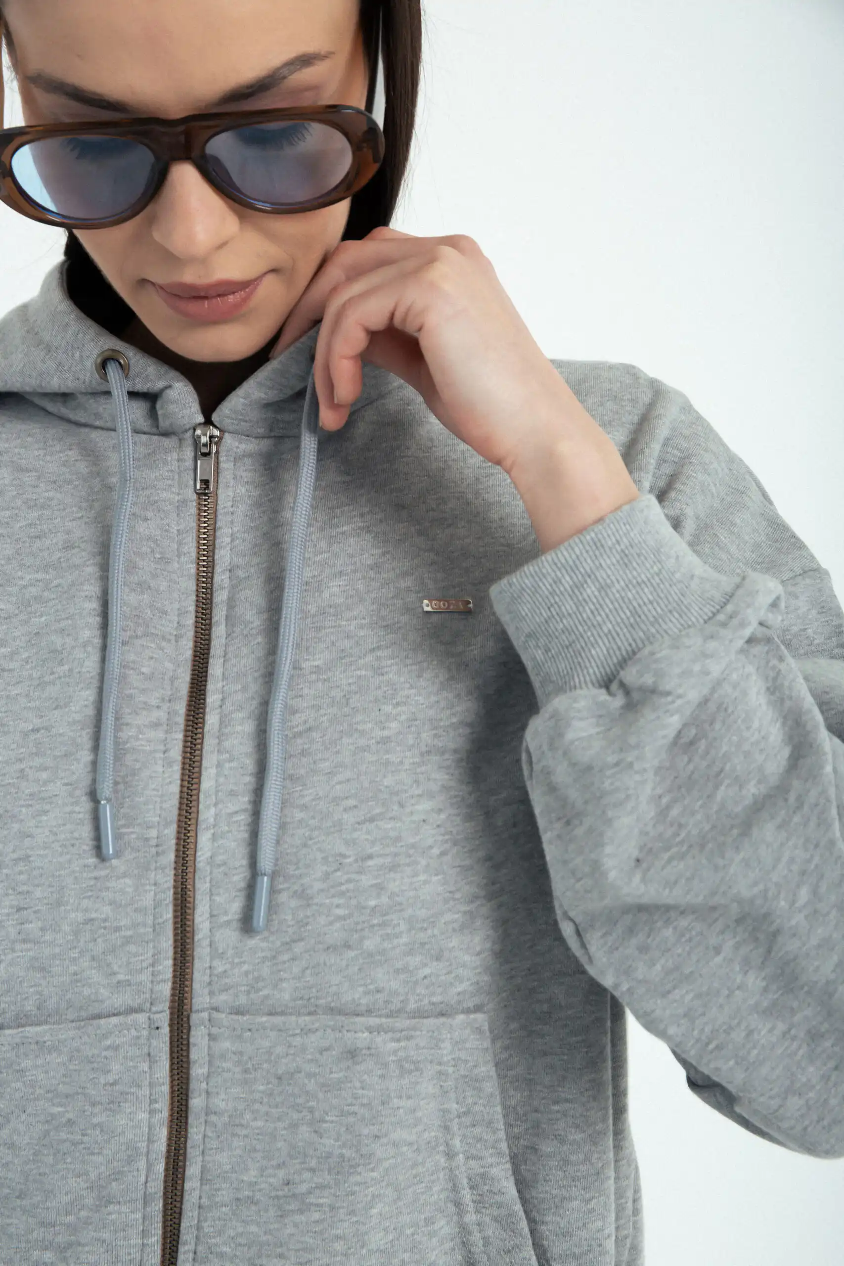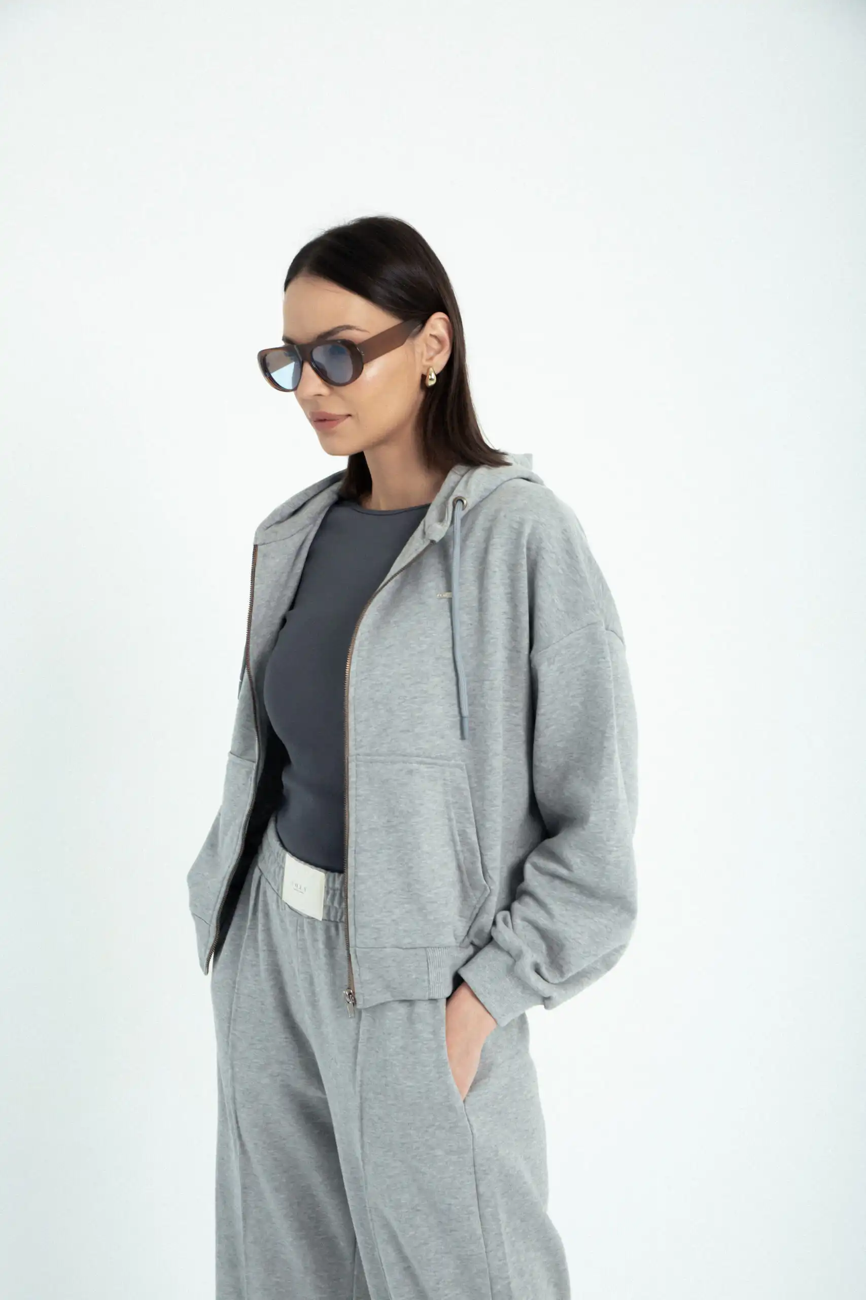 Duks jakna Boyfriend – zip hoodie oversized kroja, ali koji i dalje lepo prati liniju tela, spuštenih ramena i blago širih rukava koji oblačiš jednom i više ga ne skidaš. :) Metalni rajsferšlus, kapuljača i praktični džepovi dodaju urbani karakter i funkcionalnost, dok minimalistički dizajn omogućava lako kombinovanje, od helanki i trenerki do farmerki ili suknje za kontrastni, edgy look. Bezvremenski, udoban i jednostavan komad koji se nosi bez razmišljanja i uvek.