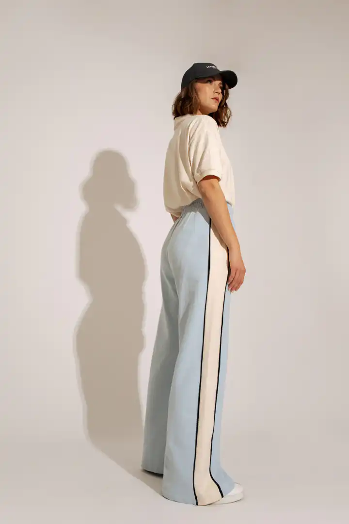 Ova široka trenerka od 100% pamuka ne samo da pruža udobnost već i naglašava prirodnu teksturu i mekoću materijala. Pamuk je čest izbor za sportsku odeću zbog svoje sposobnosti da apsorbuje vlagu, omogućavajući koži da diše tokom fizičkih aktivnosti. Širok, ravan kroj doprinosi slobodi kretanja, dok sportska elegancija ovog komada ističe vaš stil, čineći ga idealnim izborom kako za aktivnosti na otvorenom tako i za opuštanje kod kuće.