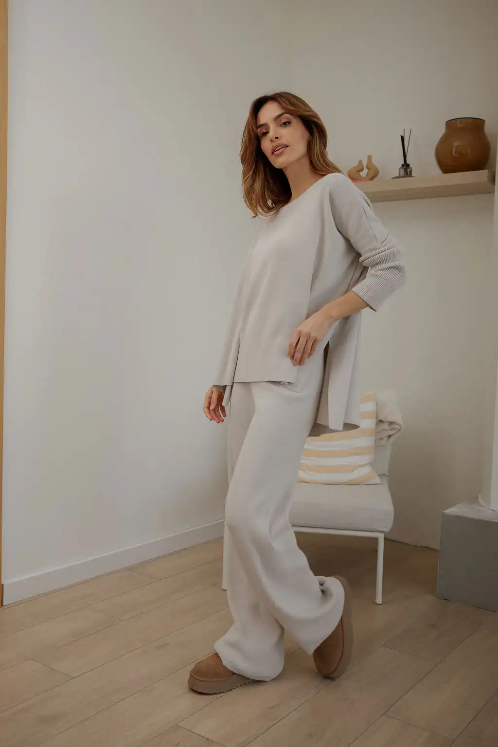 Knitted džemper je stvoren za one trenutke kada želiš da ti je toplo, udobno i lepo, sve u jednom. Oversized kroj lagano pada, dajući ti onaj effortless, cozy izgled koji voliš, dok rebrani rukavi dodaju notu profinjenosti i strukture. Napred je kraći, a pozadi duži.