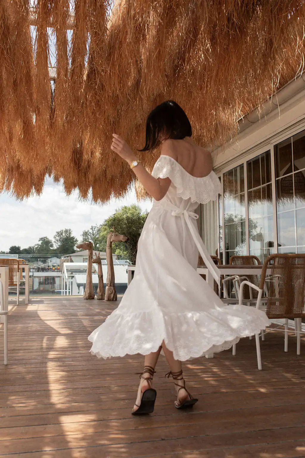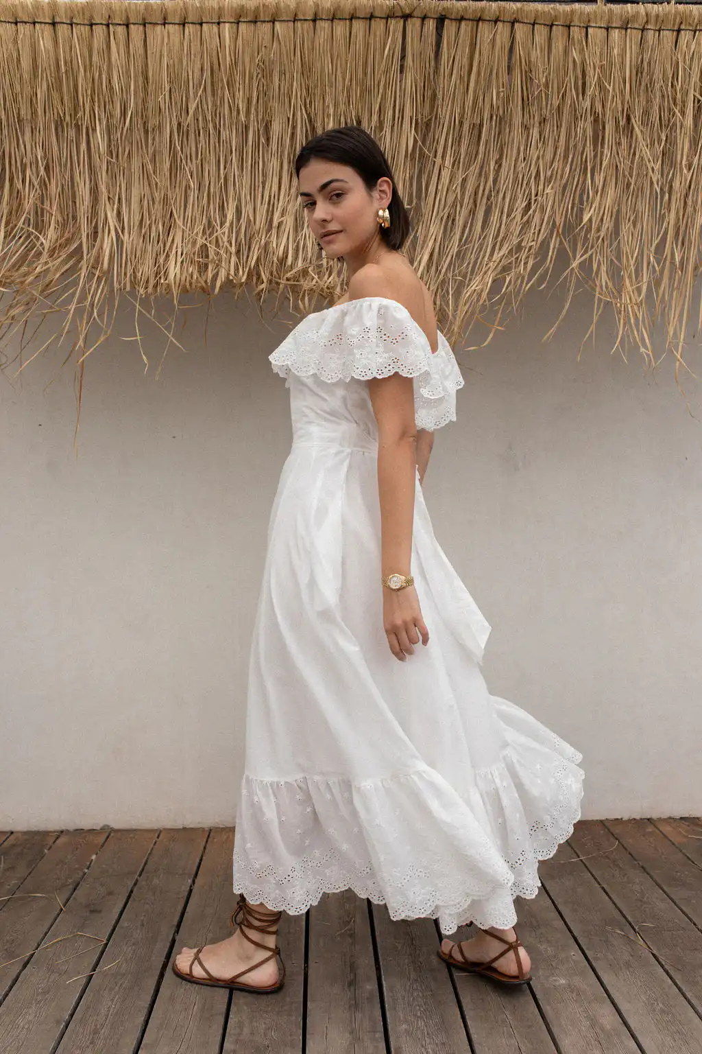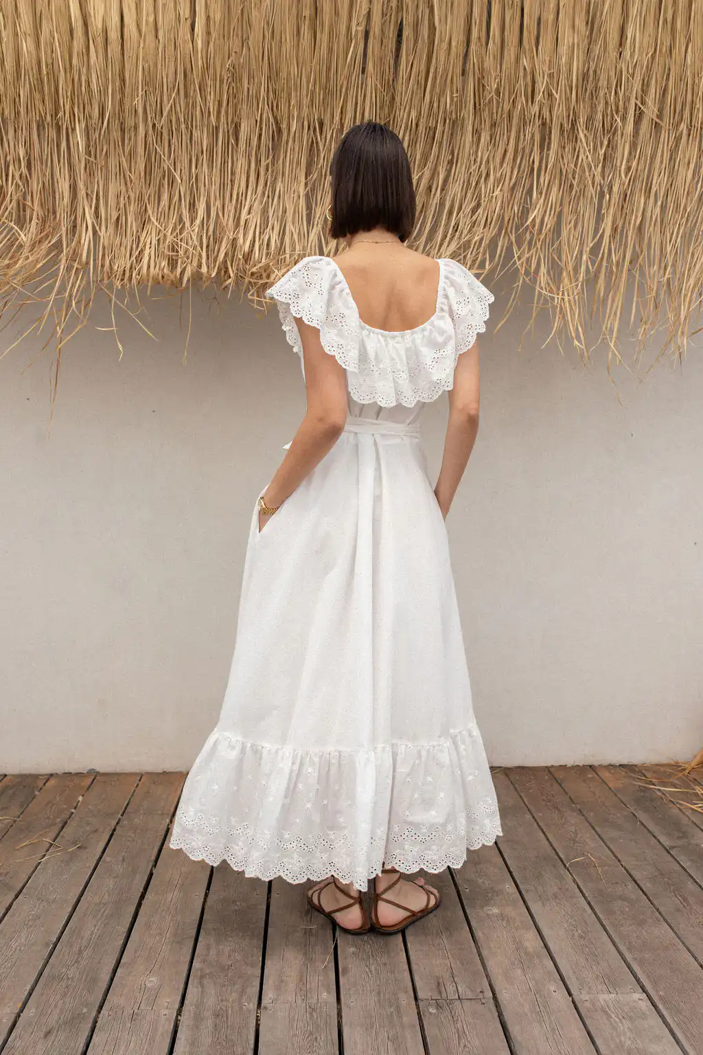 Haljina Bianca odiše romantičnom elegancijom i prirodnom lepršavošću. Napravljena od najfinijeg pamuka sa prelepim vezom, donosi osećaj lakoće i autentičnosti u svakom koraku. Dizajn omogućava da se nosi sa spuštenim ili podignutim ramenima – kako god ti tog dana više prija.