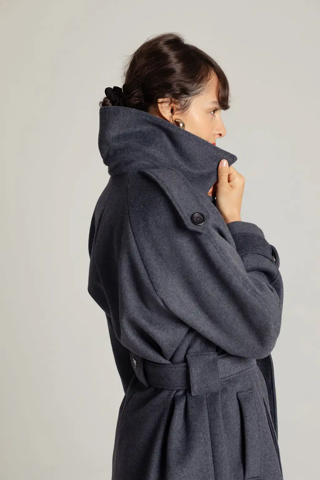 Kaput Cozy je bezvremenski komad koji spaja eleganciju i funkcionalnost u savršenoj ravnoteži. Napravljen je od najkvalitetnijeg vunenog velura (procenat vune 22%) i postavljen je sa viskoznom postavom, sa kaišem na vezivanje, džepovima sa strane i duplim kopčanjem. Izuzetno je mekan i topao, napravljen je tako da može da se nosi u kombinaciji sa džemperima i debelim duksevima. Bez obzira šta imaš ispod, u njemu ćeš uvek izgledati elegantno i lepo obučeno. Praktičan je, možeš ga nositi na razne načine i lak je za kombinovanje, a definitivno je naš izbor broj 1 kad temperature padnu. Mi ga obožavamo zbog elegantne siluete i prefinjenih detalja kao što je naš logotip na zadnjem delu pojasa.