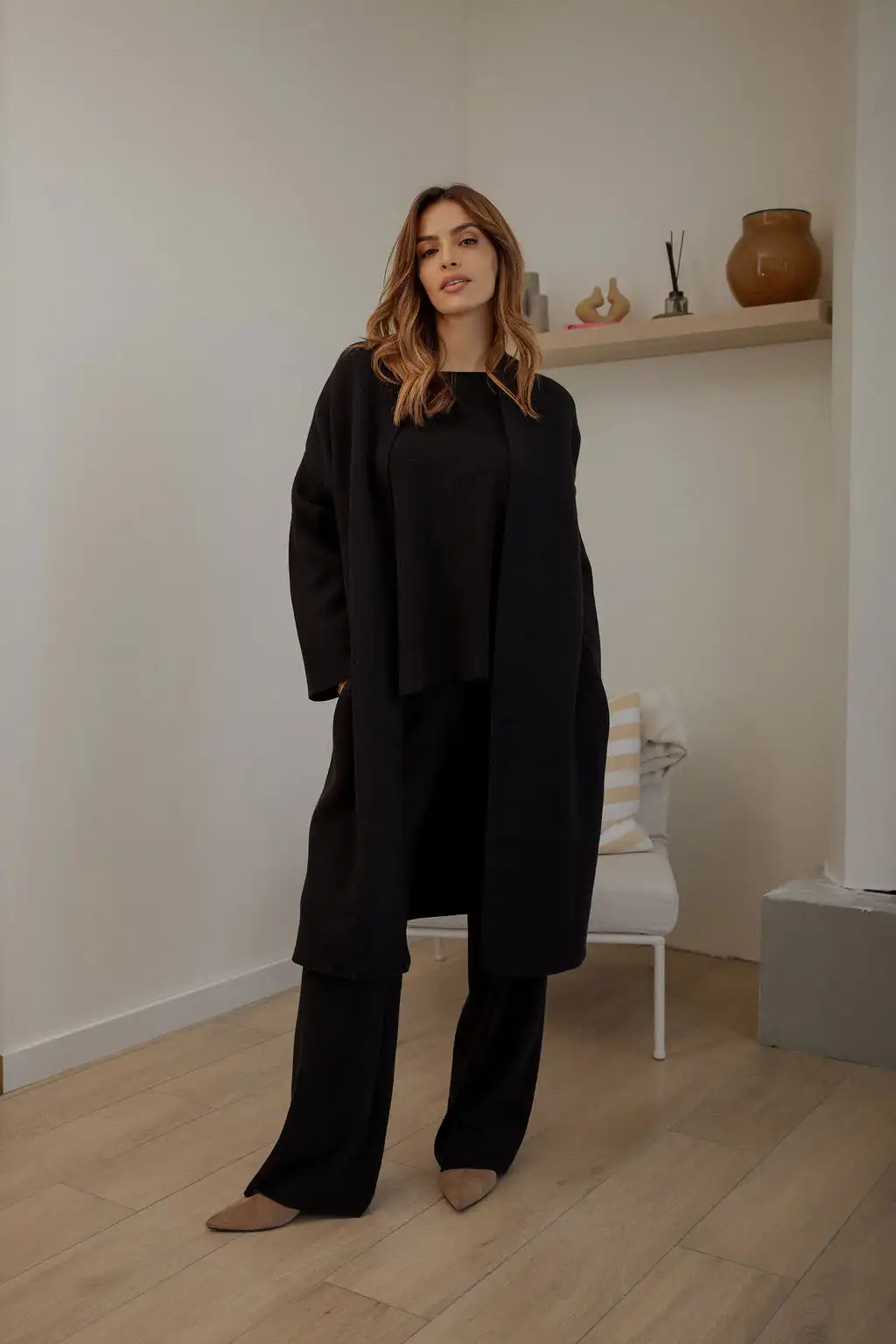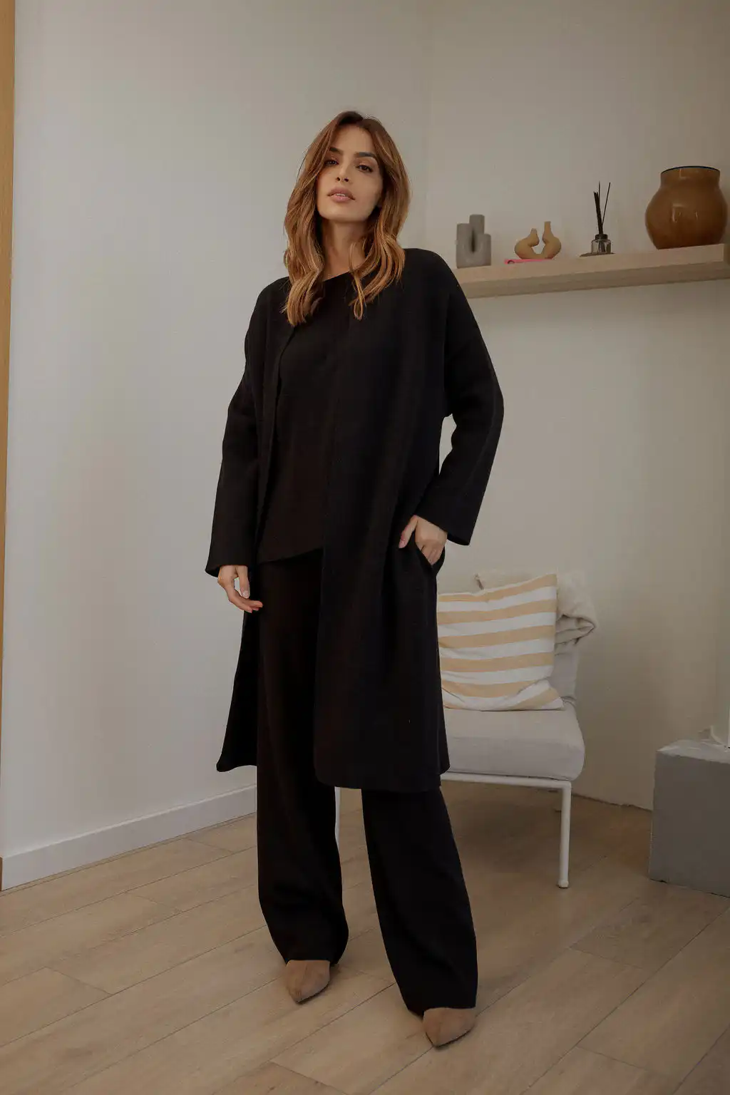 Kardigan Knitted je komad koji donosi čistu udobnost i bezvremensku jednostavnost u tvoju svakodnevnicu. Ravan, opušteni kroj čini ga idealnim za slojevito oblačenje, dok dužina kardigana vizuelno izdužuje siluetu i pruža dodatnu udobnost. Možeš ga nositi preko majice, džempera ili celog knitted kompleta, za cozy outfite kod kuće, šetnje, putovanja ili ležerne dnevne kombinacije.