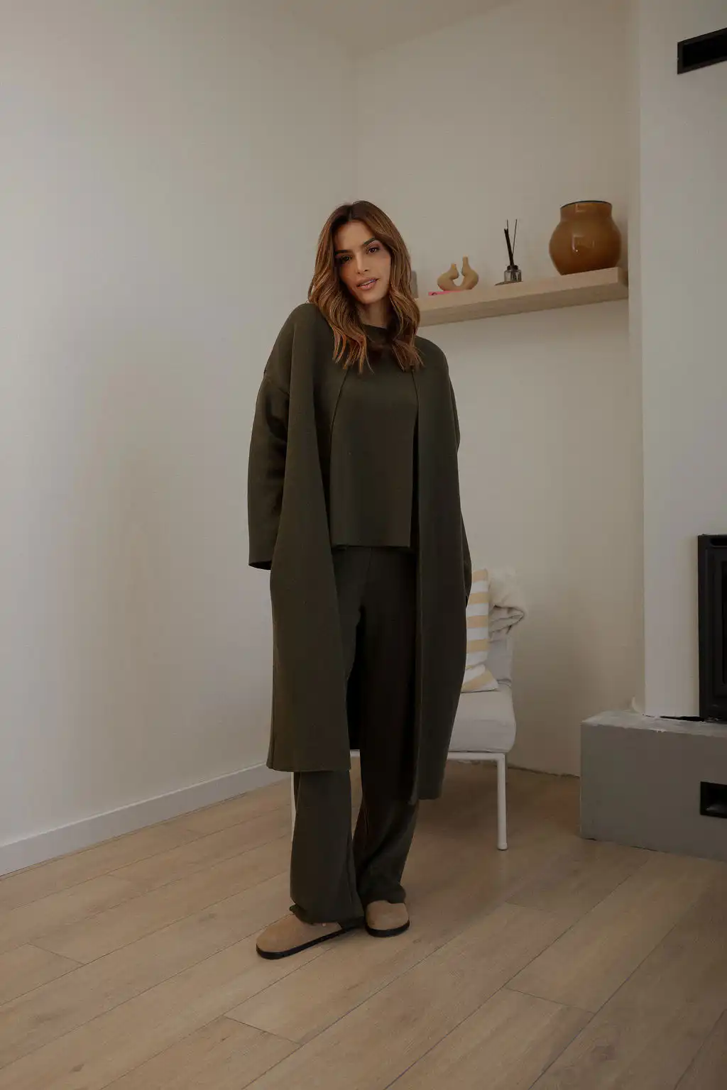 Kardigan Knitted je komad koji donosi čistu udobnost i bezvremensku jednostavnost u tvoju svakodnevnicu. Ravan, opušteni kroj čini ga idealnim za slojevito oblačenje, dok dužina kardigana vizuelno izdužuje siluetu i pruža dodatnu udobnost. Možeš ga nositi preko majice, džempera ili celog knitted kompleta, za cozy outfite kod kuće, šetnje, putovanja ili ležerne dnevne kombinacije.