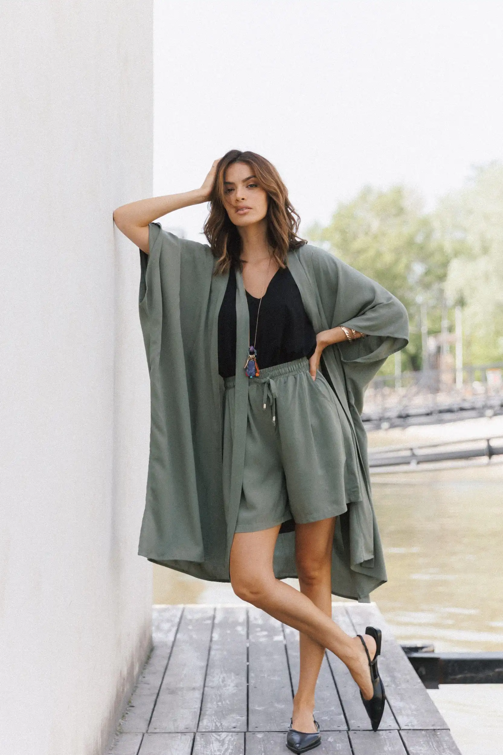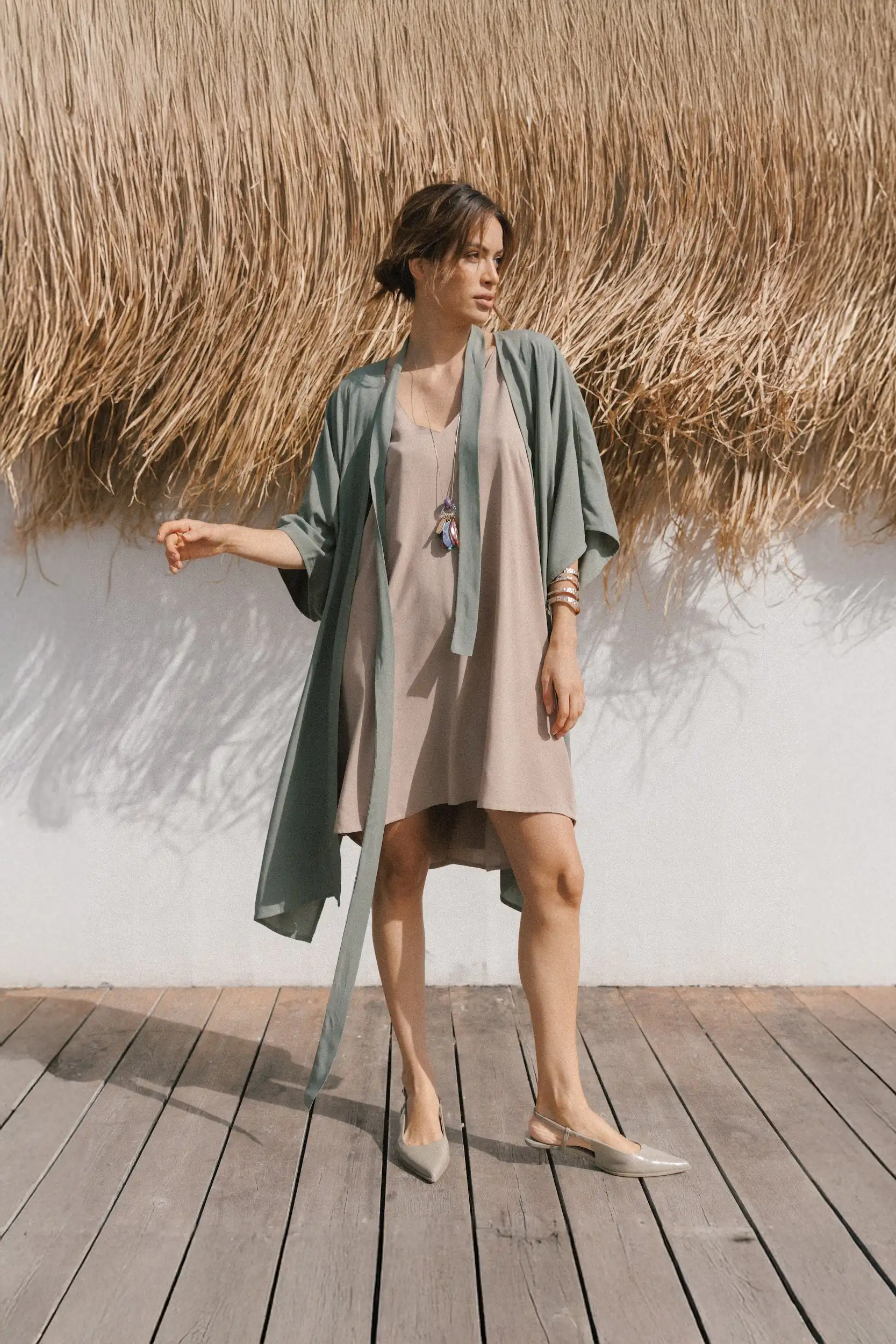 Kimono, bademantil, kućna haljina, nazovite ga kako želite, može da se nosi na plaži, uz džins, uz šorts, ili haljinu.