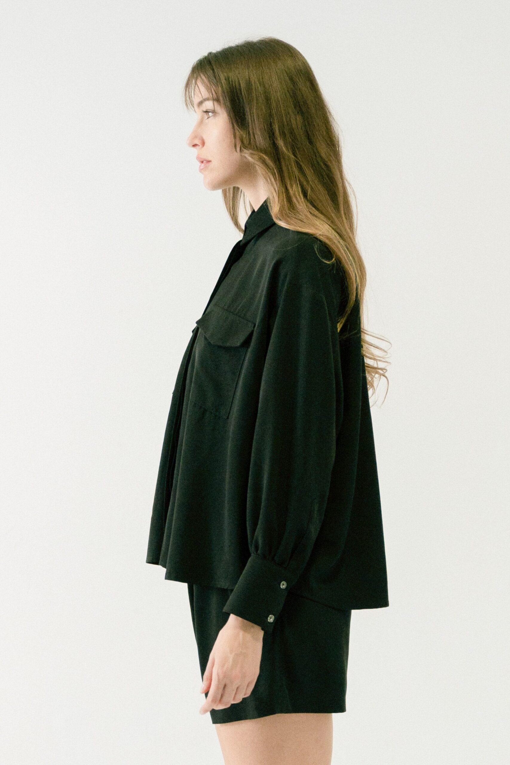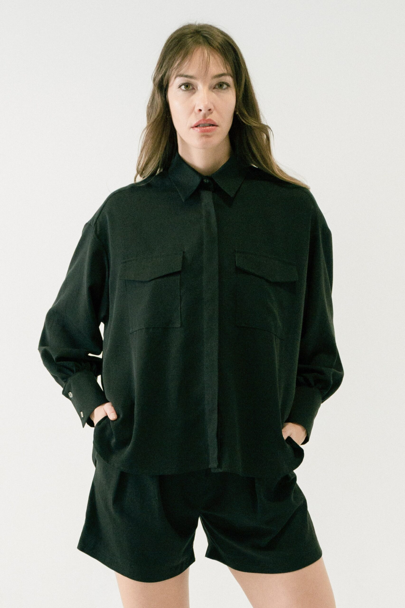 Košulja Utility izgleda kao statement, a nosi se kao basic. Mekana, lagana i oversized kroja, sa naglašenim džepovima koji joj daju taj utility vibe. Dovoljno posebna da nosi outfit sama, a opet dovoljno neutralna da ide uz sve.