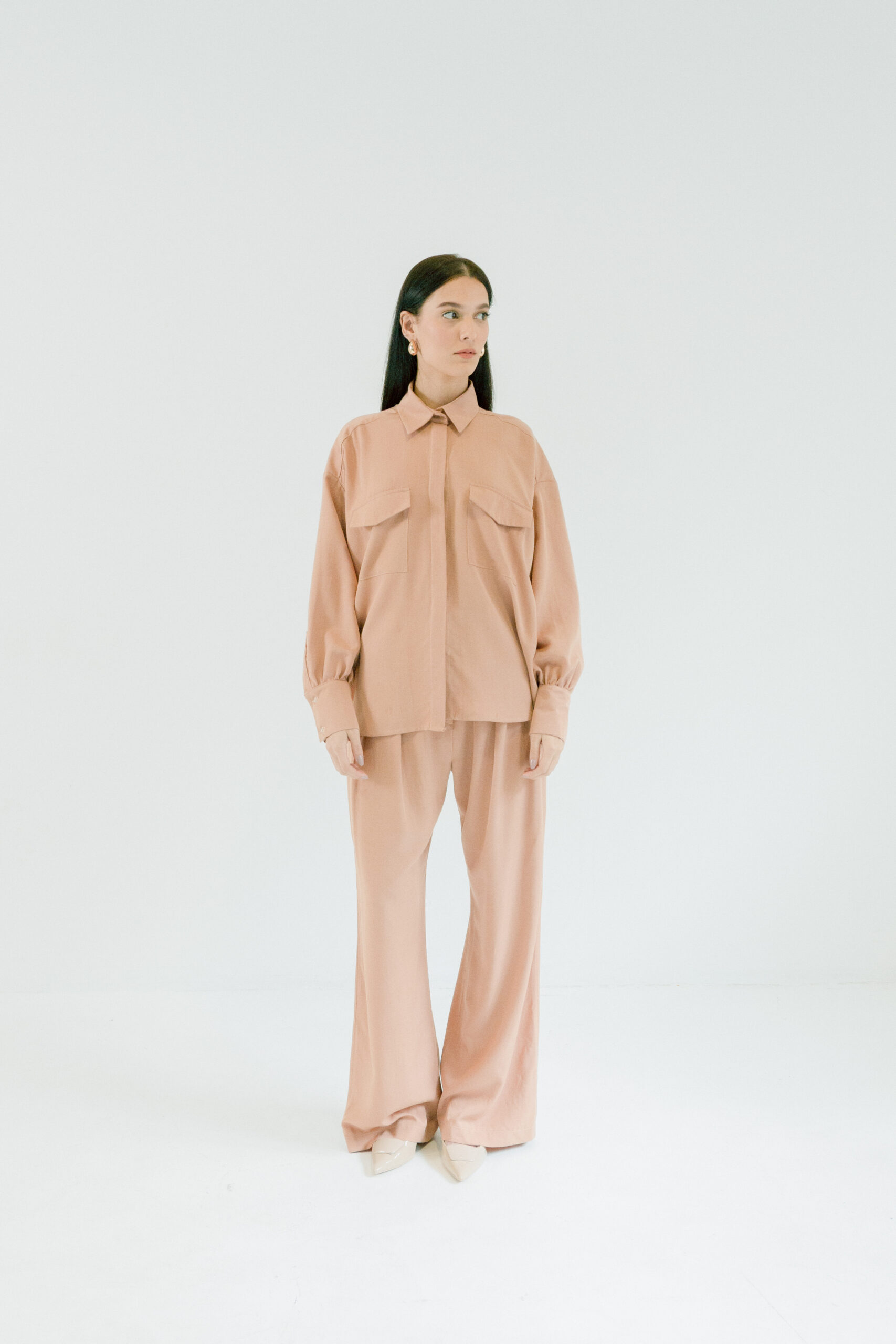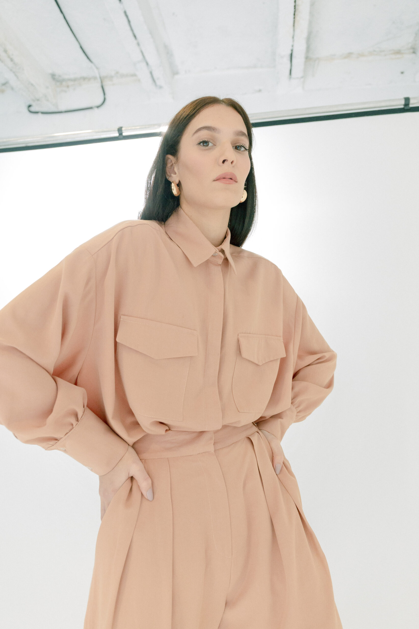 Košulja Utility izgleda kao statement, a nosi se kao basic. Mekana, lagana i oversized kroja, sa naglašenim džepovima koji joj daju taj utility vibe. Dovoljno posebna da nosi outfit sama, a opet dovoljno neutralna da ide uz sve.