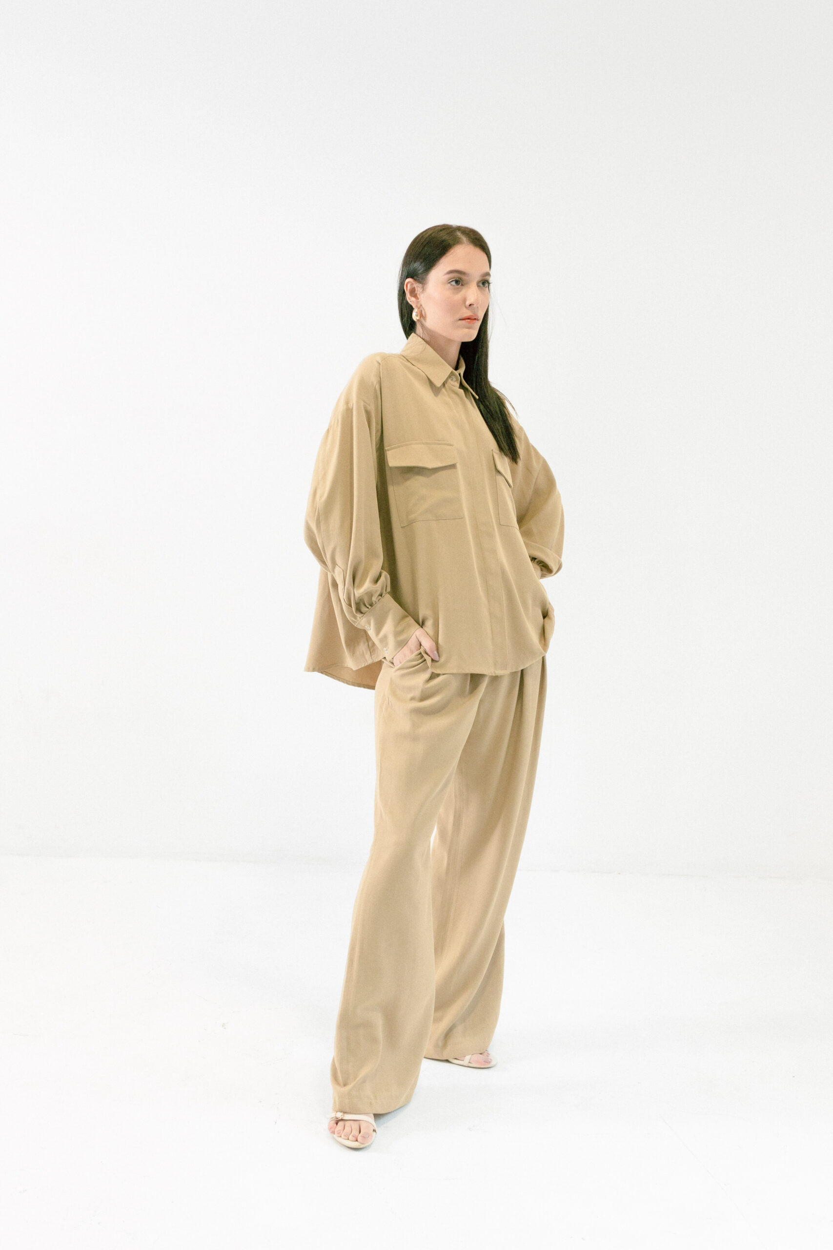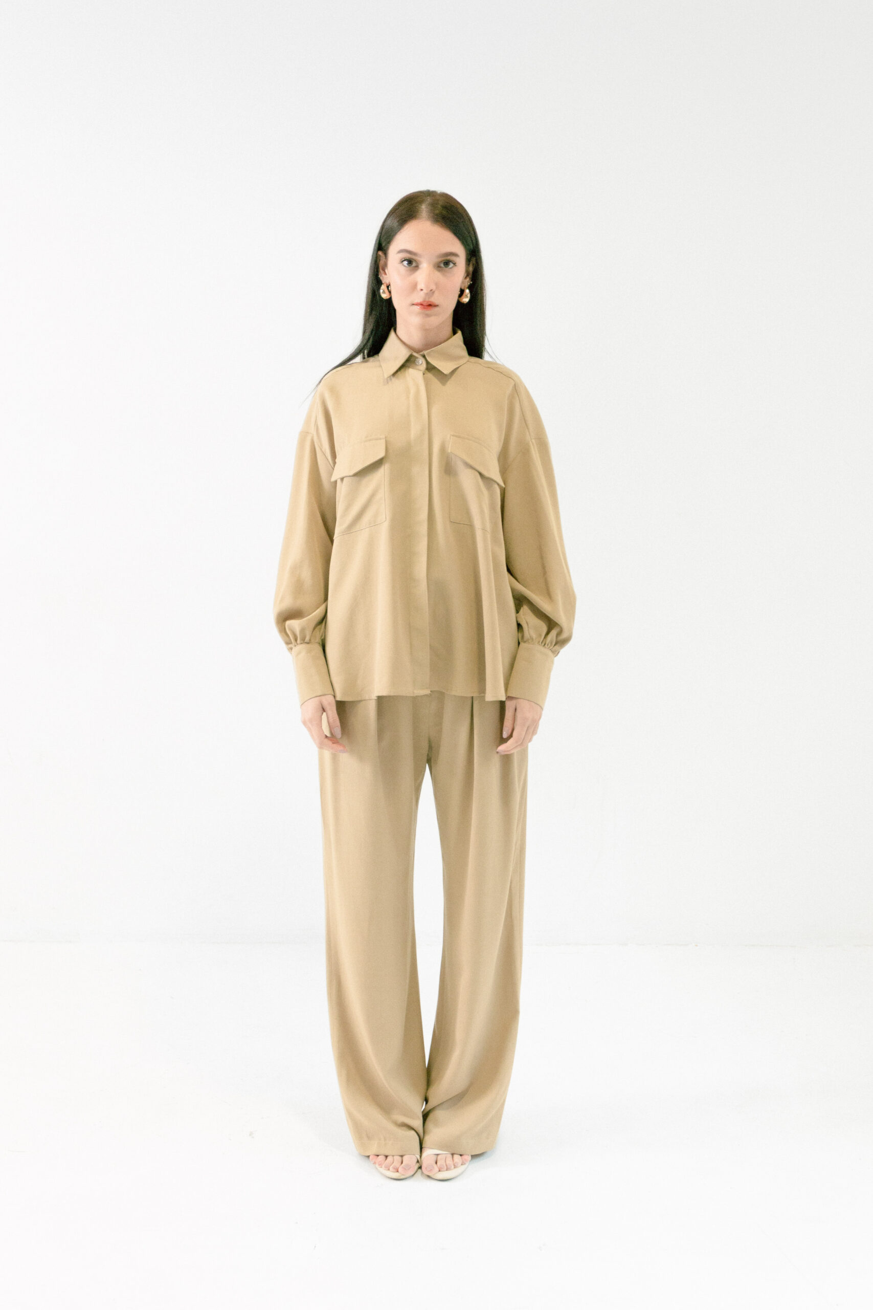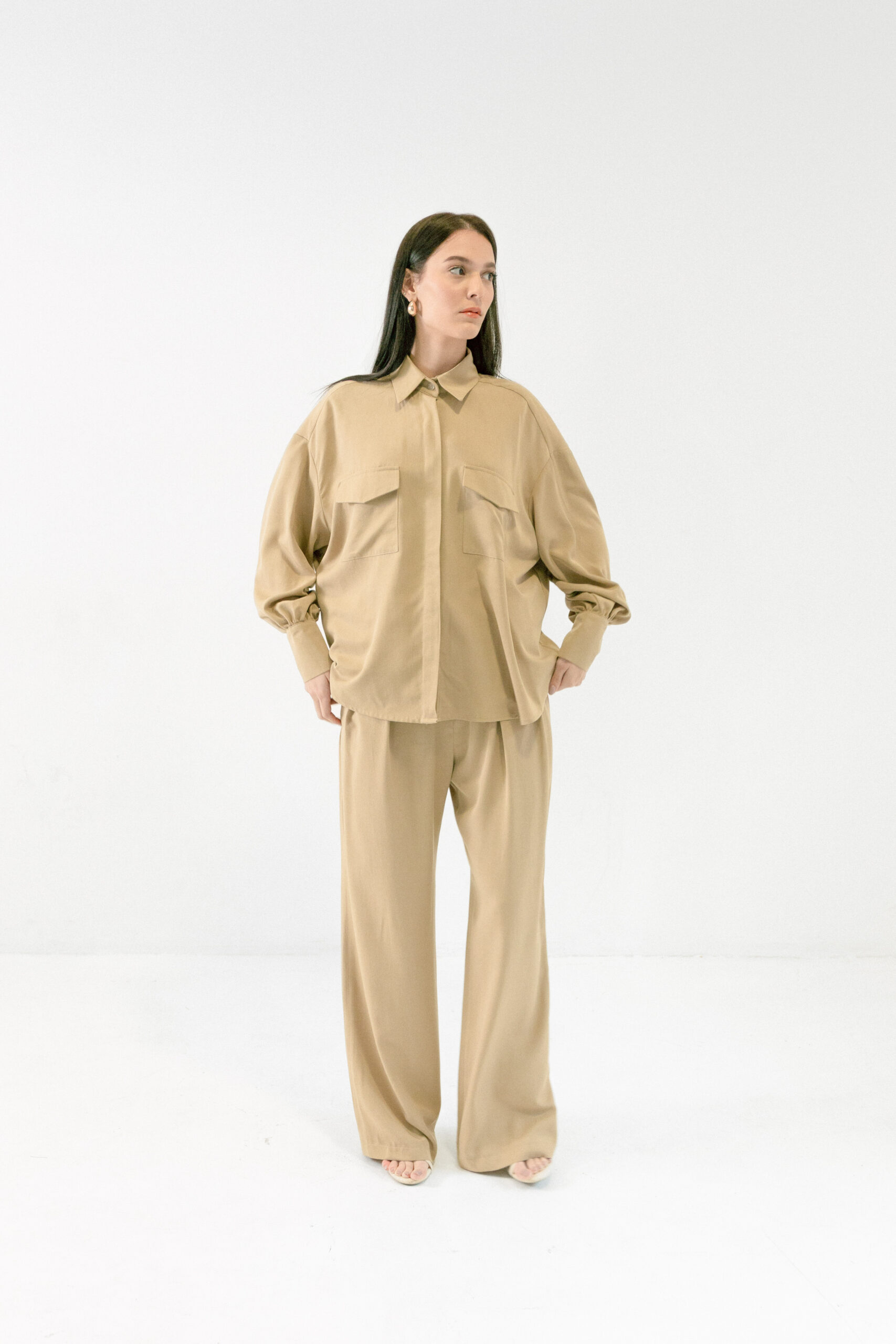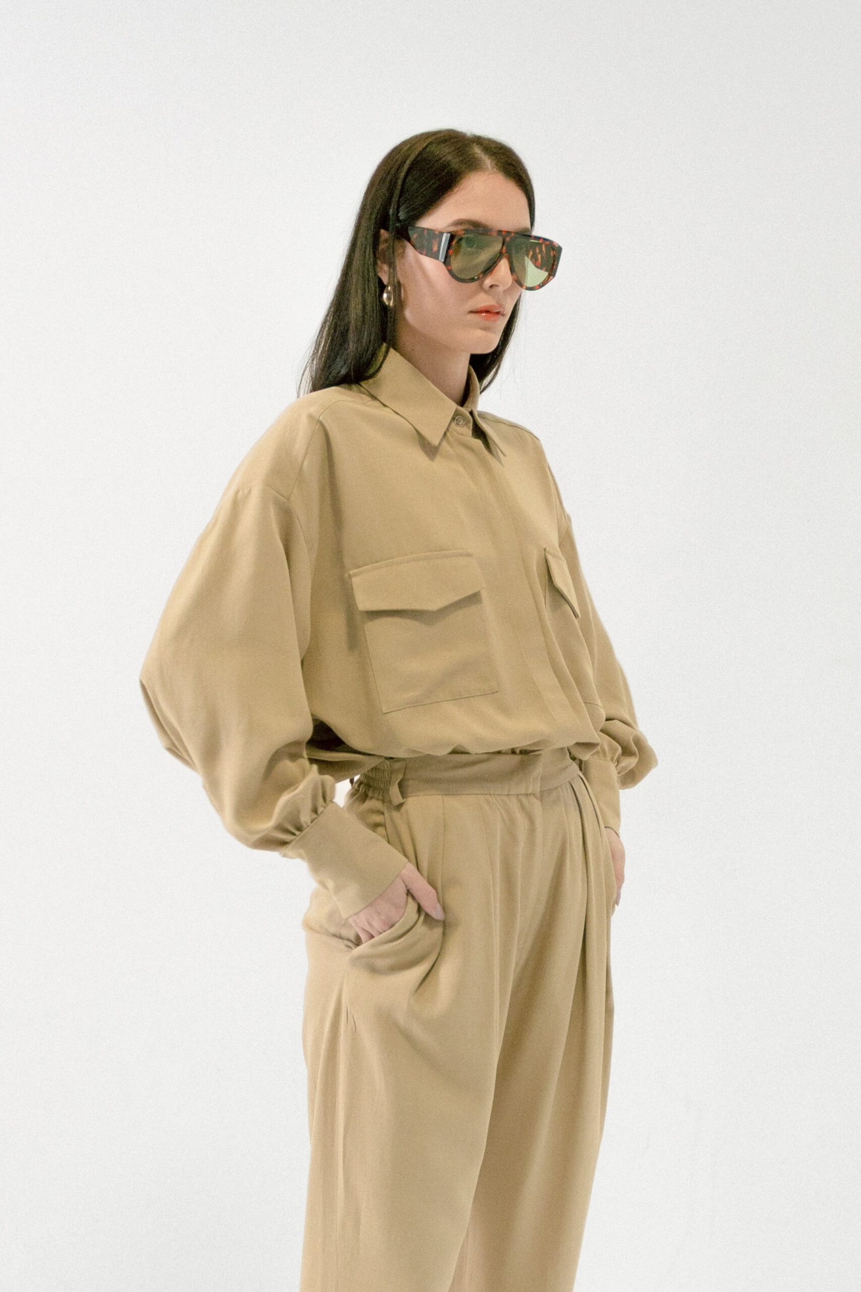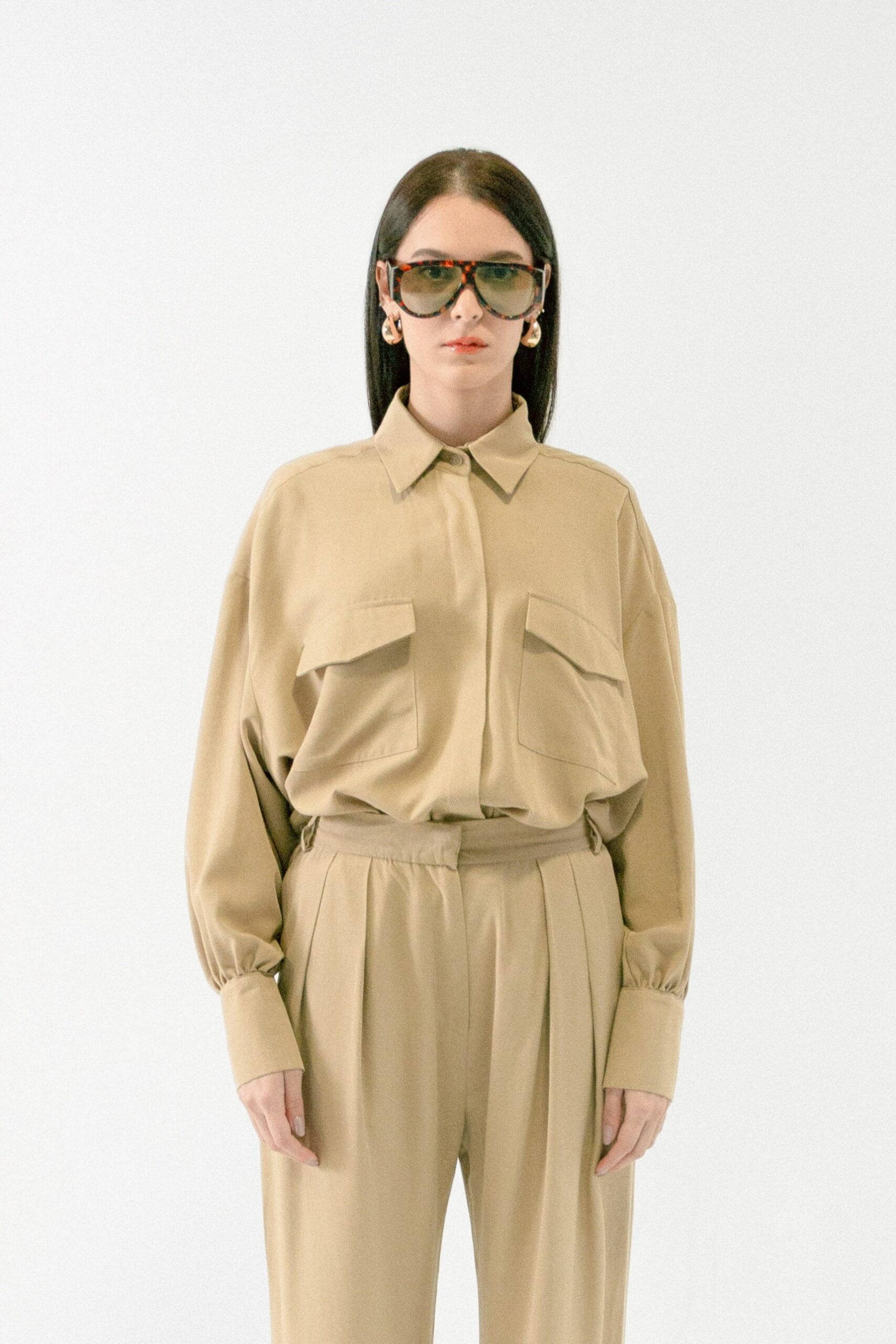 Košulja Utility izgleda kao statement, a nosi se kao basic. Mekana, lagana i oversized kroja, sa naglašenim džepovima koji joj daju taj utility vibe. Dovoljno posebna da nosi outfit sama, a opet dovoljno neutralna da ide uz sve.