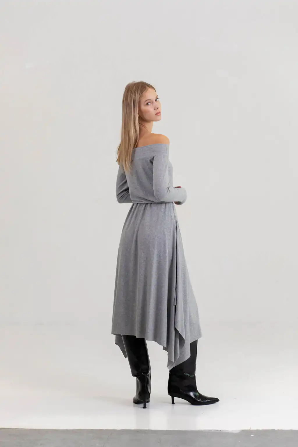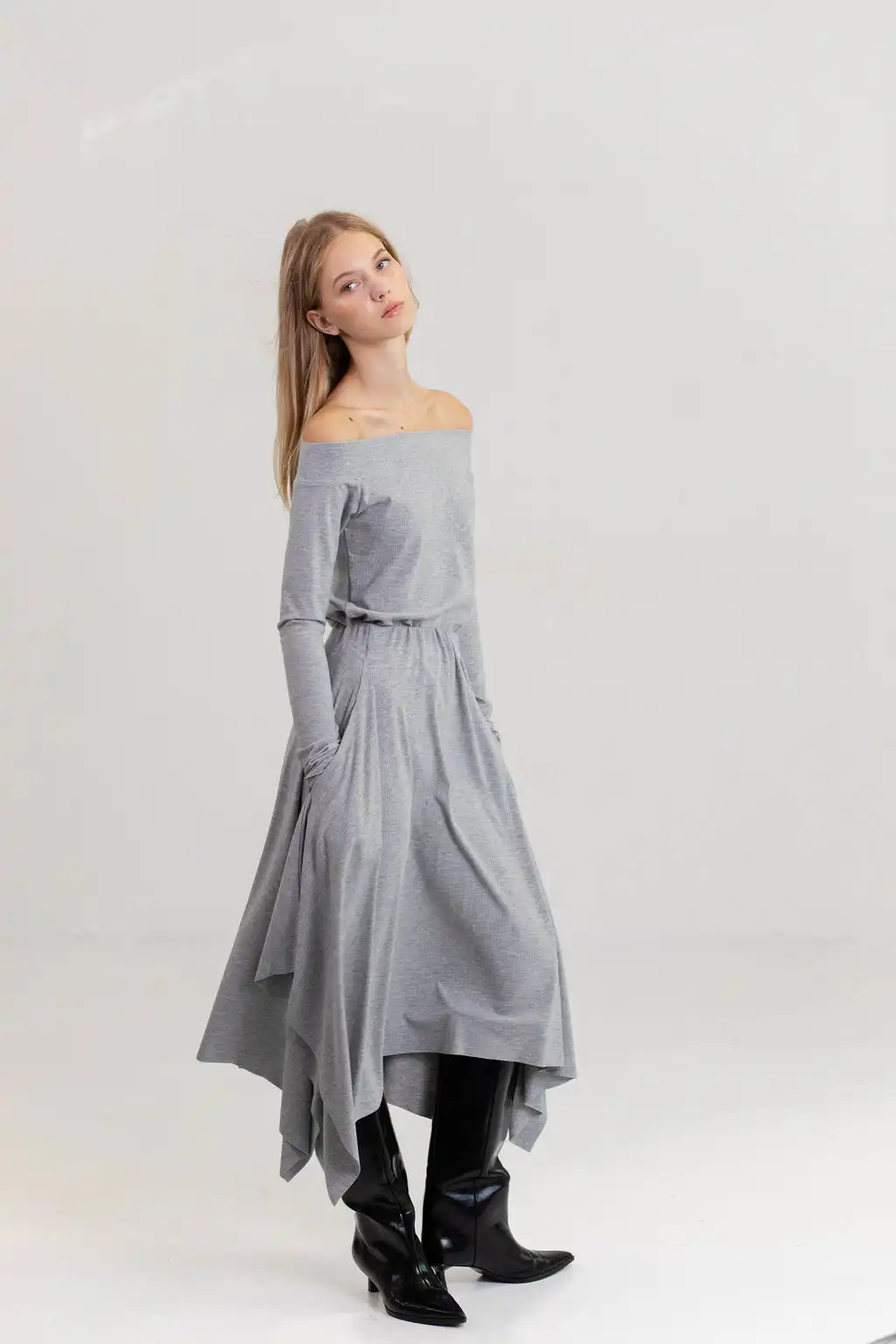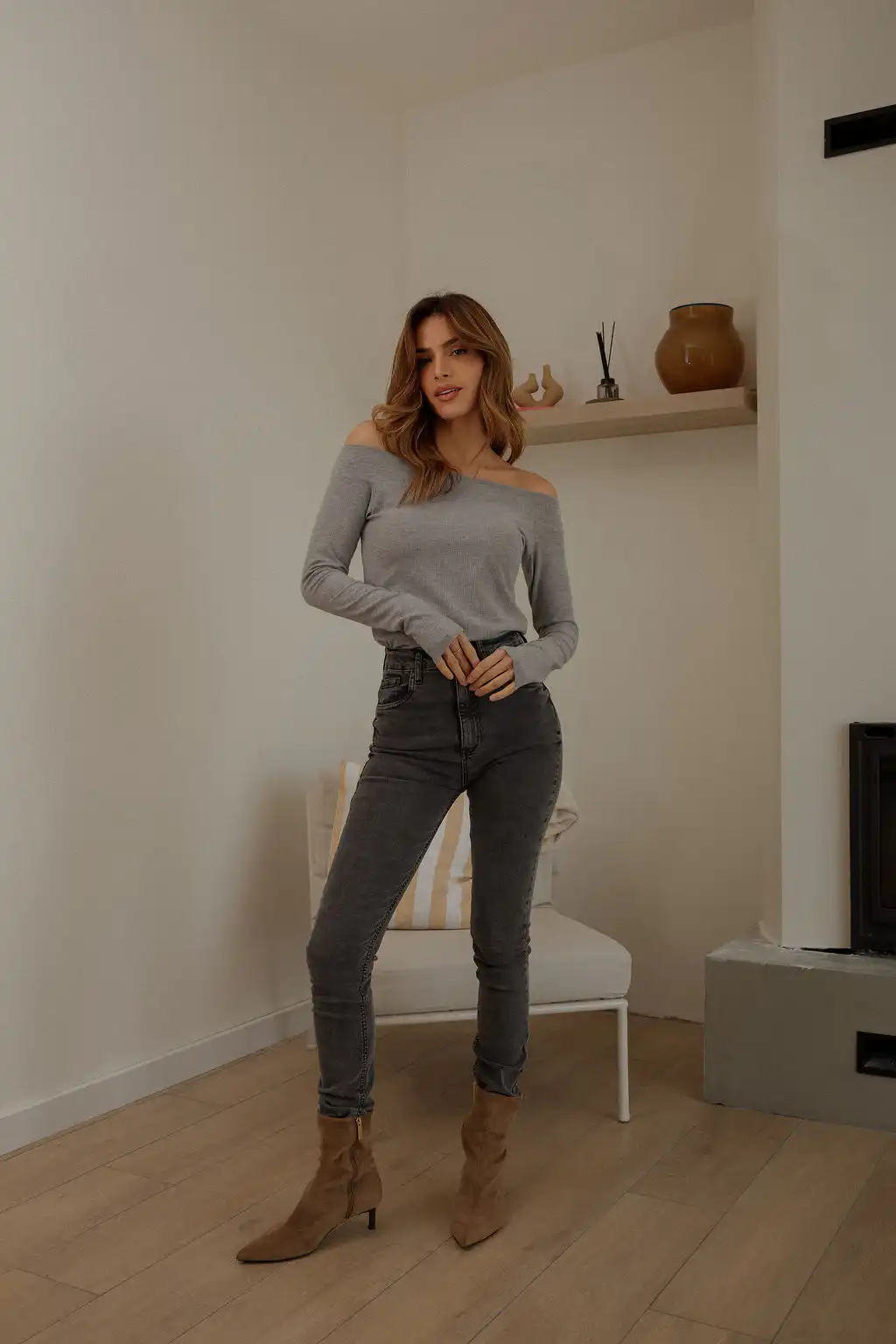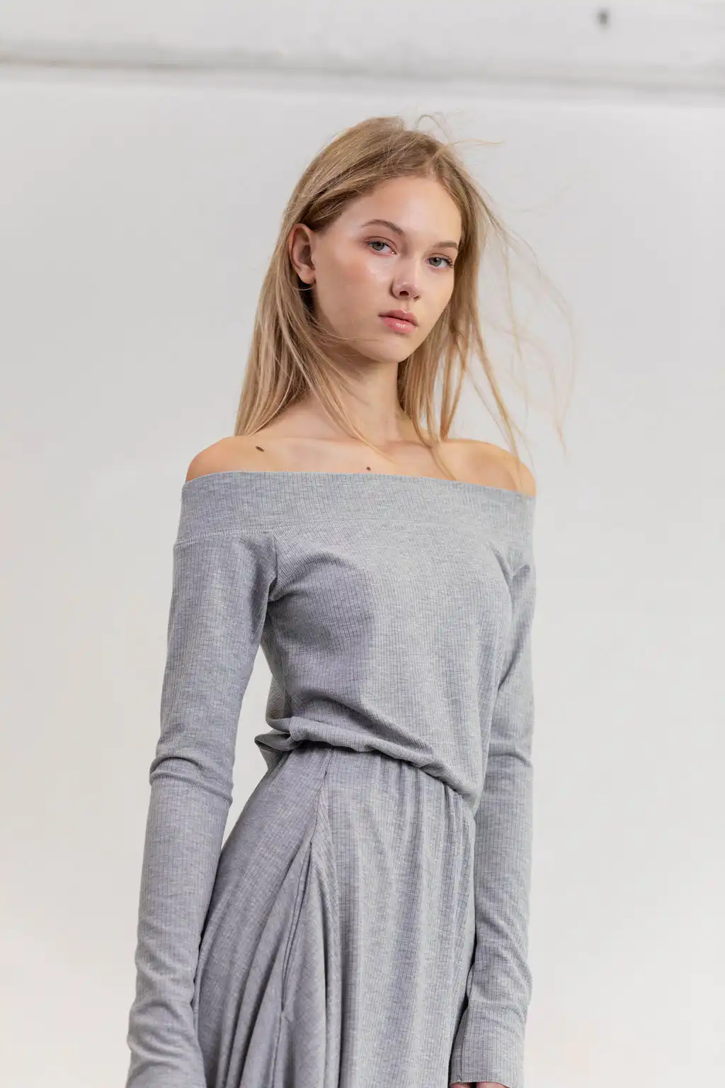 Majica Eloise off shoulder model od pletene viskoze, sa dugim rukavima i ženstvenim krojem koji spaja udobnost i sofisticiranost.