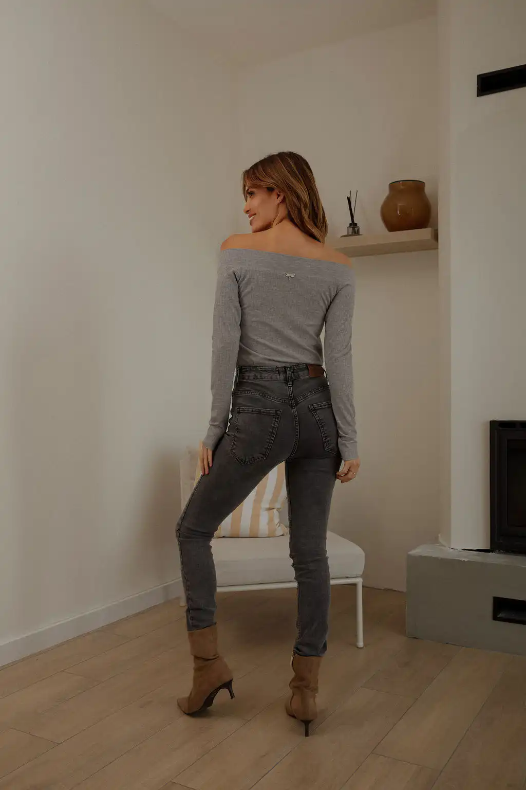 Devojka na fotografiji je visoka 173cm i nosi veličinu 36/38 – za pomoć u odabiru veličina pogledajte dimenzije proizvoda.