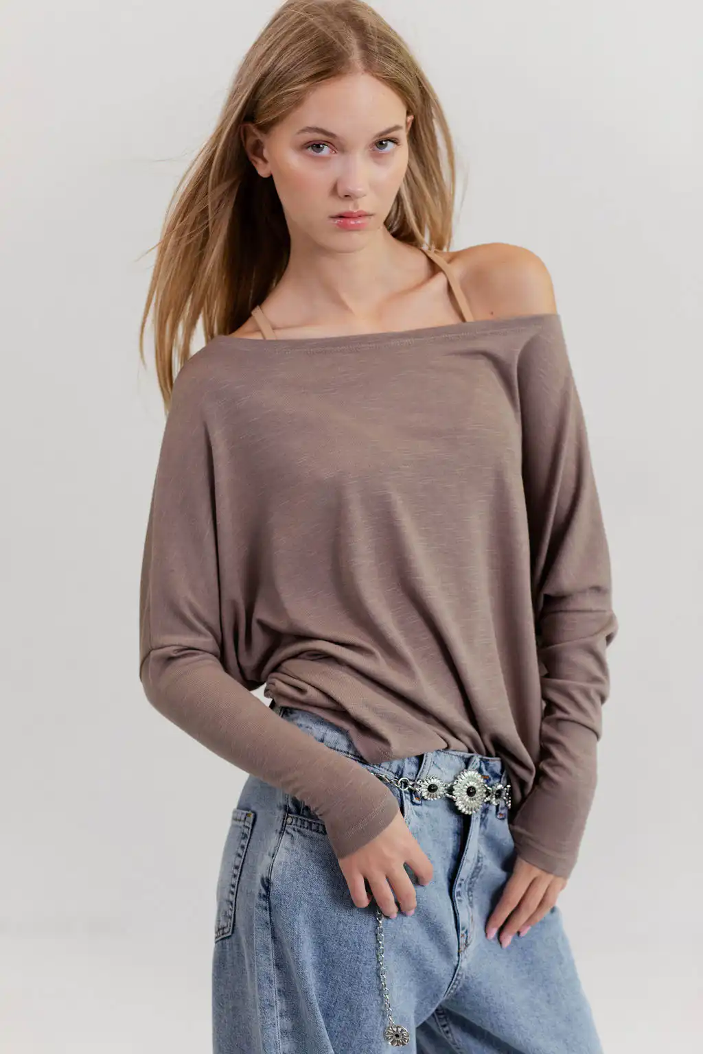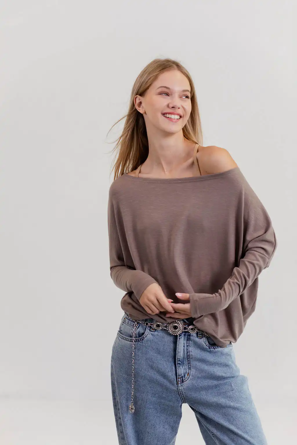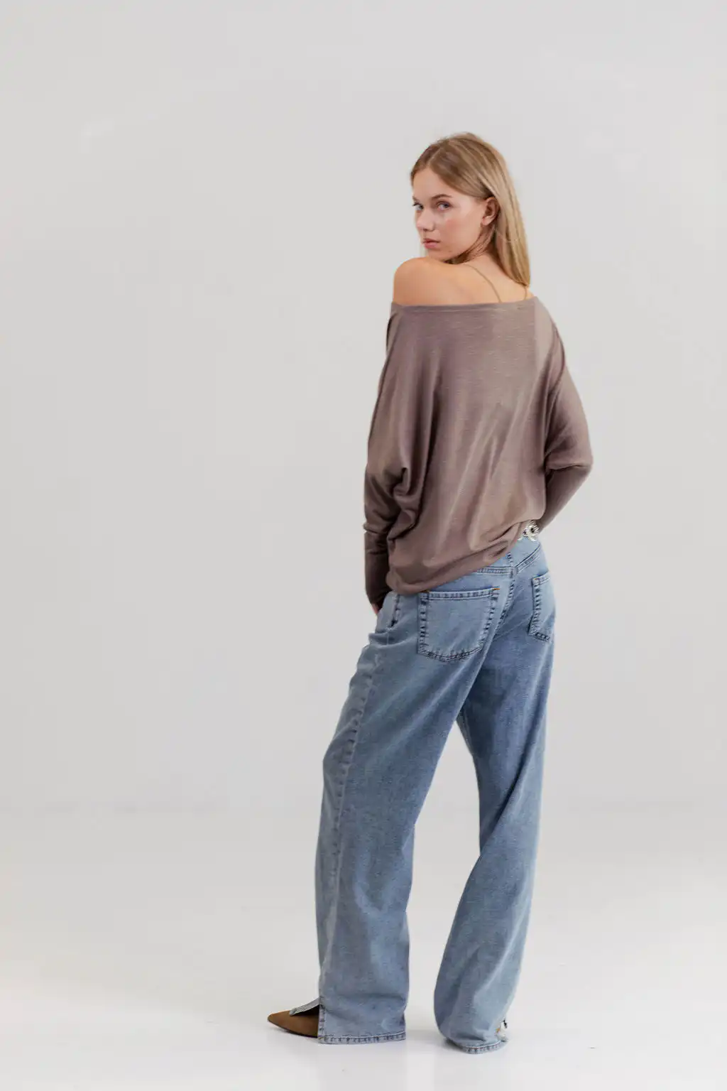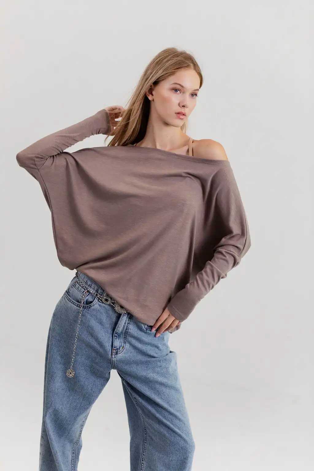 Majica Olie je komad koji osvaja na prvi pogled. Miš rukavi, ležeran pad i čamac izrez daju joj elegantmu siluetu koja se prilagođava svakom pokretu. Izrađena od pletene viskoze da bude istovremeno udobna i sofisticirana. Majica Olie je pravi „statement“ komad u garderoberu. Možete je nositi spuštenu na jedno rame za opušteni večernji look, ili je kombinovati sa farmerkama i patikama za chic dnevni stil.