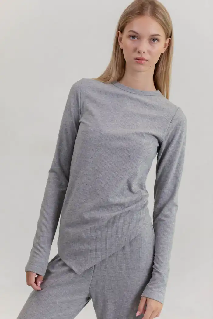 Majica Siam od pletene viskoze napred asimetrična je udobna i meka, sa dugim rukavima i modernim krojem koji se lako kombinuje u svakodnevnom stilu.