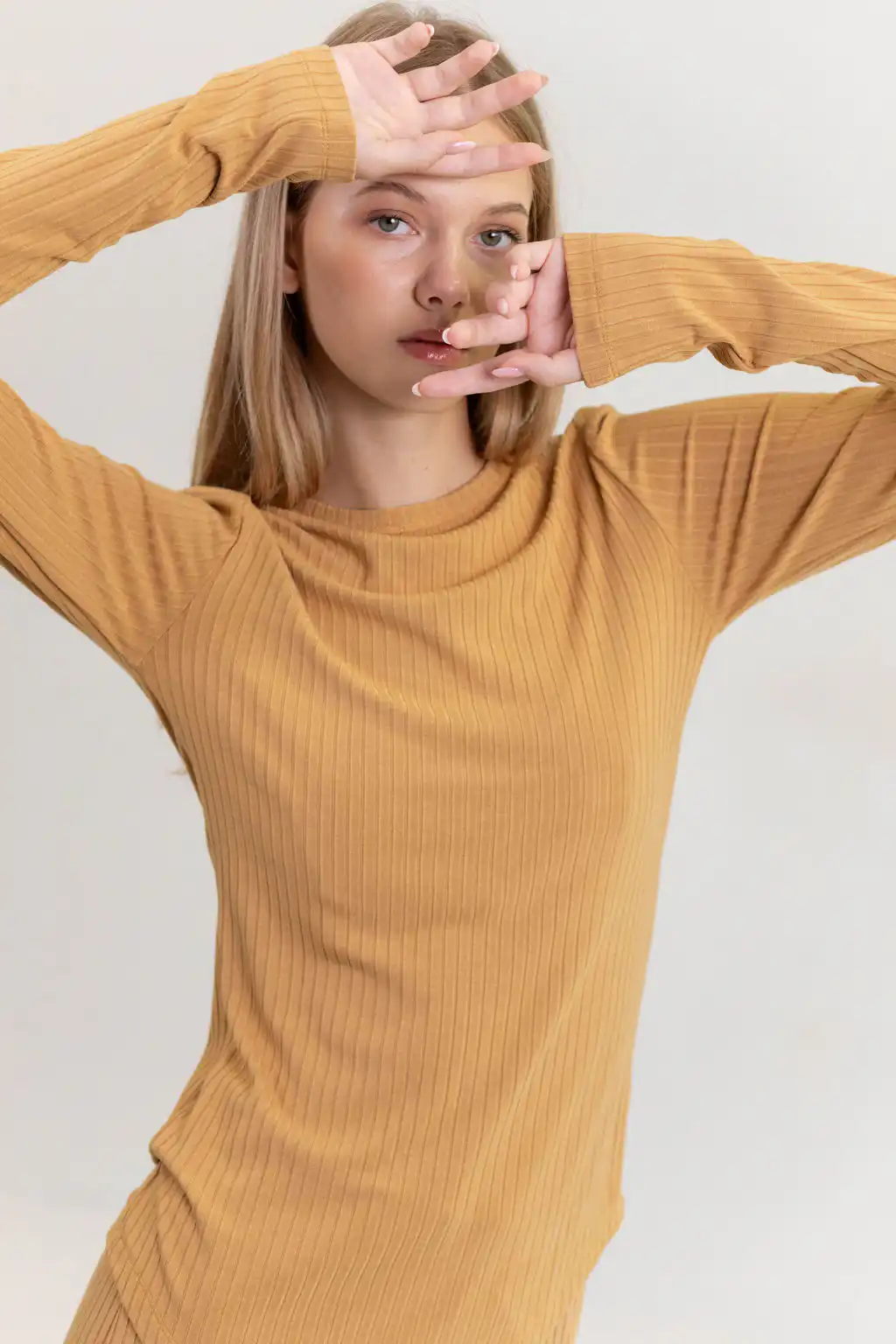 Materijal koji smo odabrali je 97% viskoza i 3% elastana, pletena tako da pruža dodatnu mekoću, fleksibilnost i prirodan pad. Sa ljubavlju proizvedena pri humanim uslovima rada, i sa velikom pažnjom posvećenom detaljima, kroju i kvalitetu proizvoda.