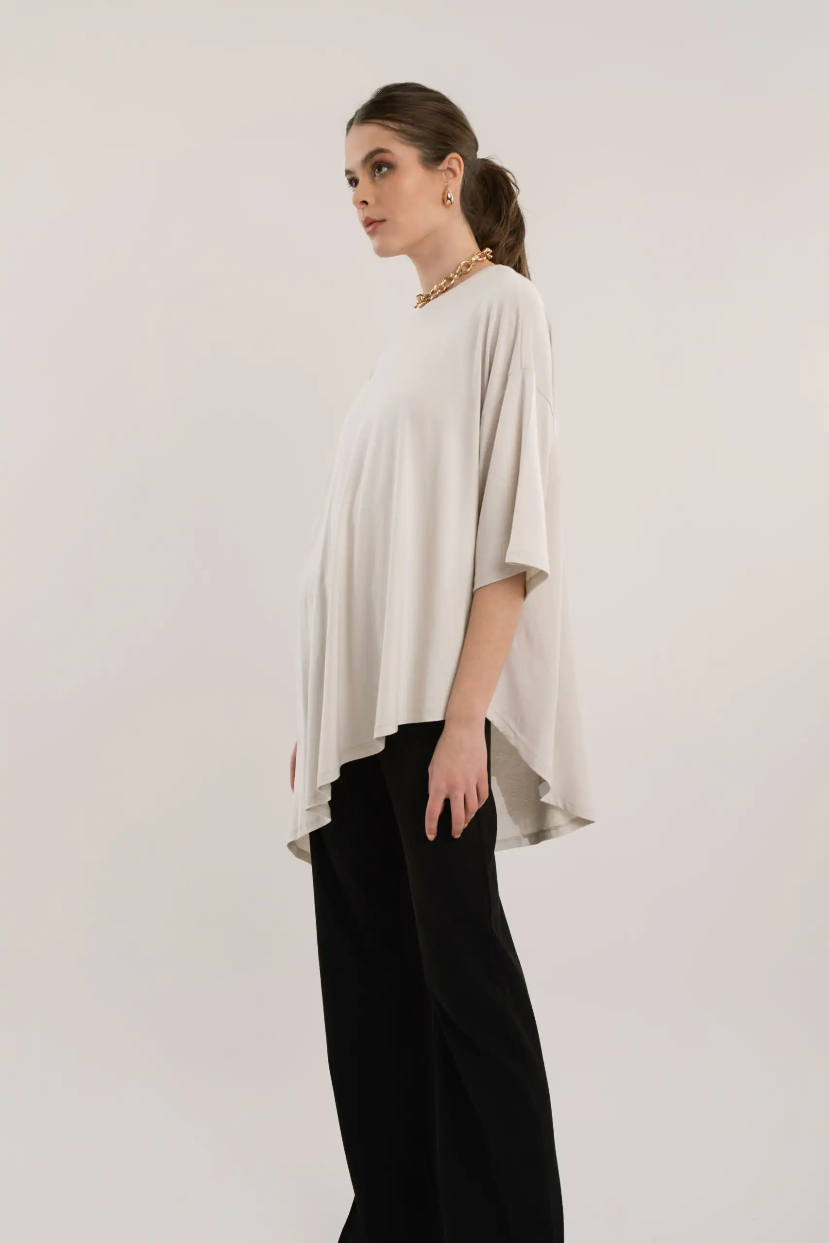Majica Ava je izrađena od mekog i prozračnog materijala, pruža iznimnu udobnost pri nošenju, dok asimetrični kroj naglašava moderan izgled.
