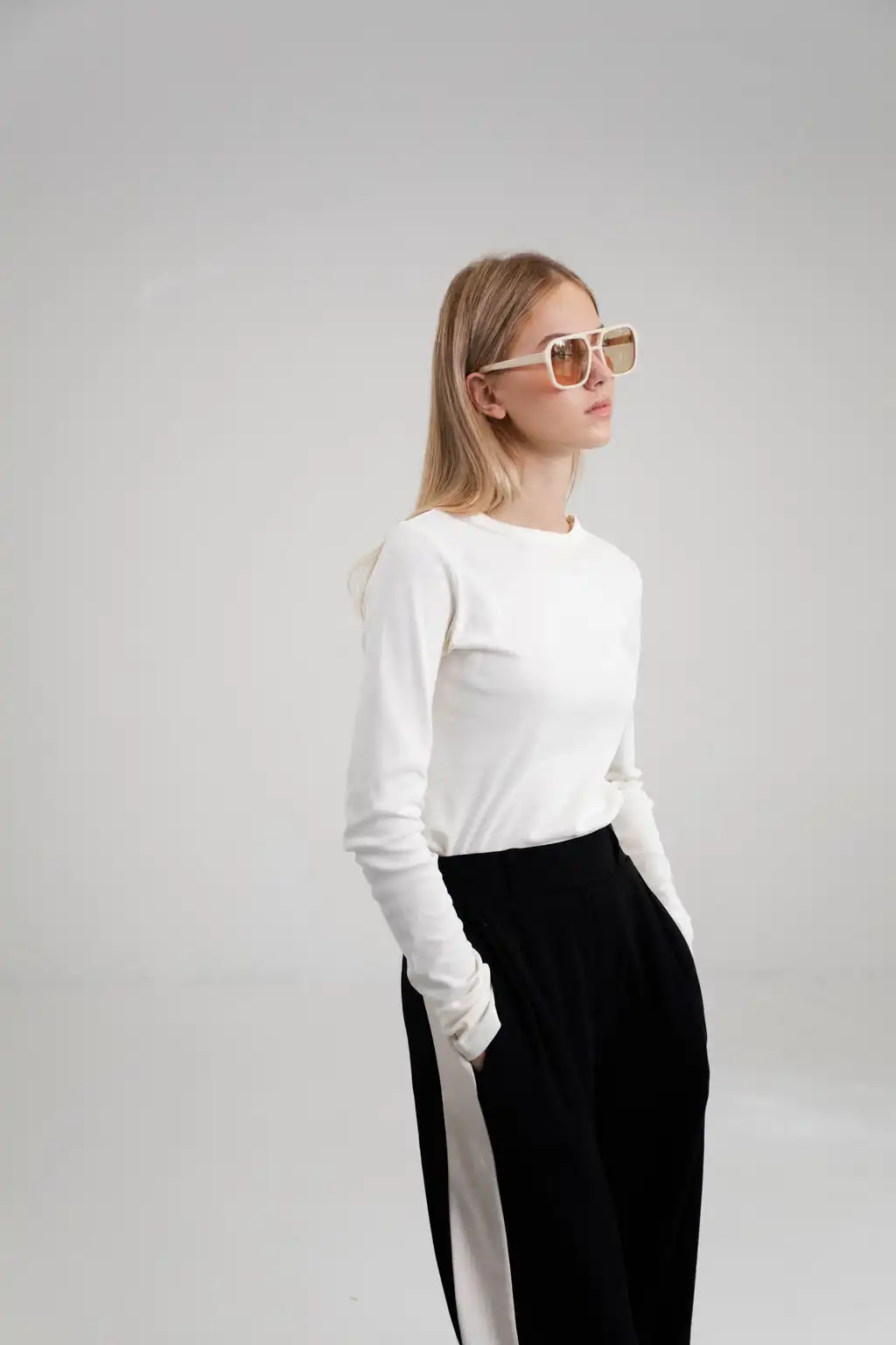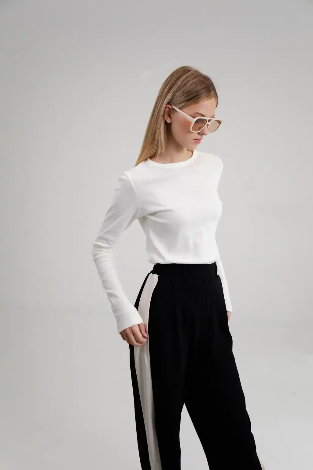 Devojka na fotografiji je visoka 173cm i nosi veličinu 36/38 – za pomoć u odabiru veličina pogledajte dimenzije proizvoda.