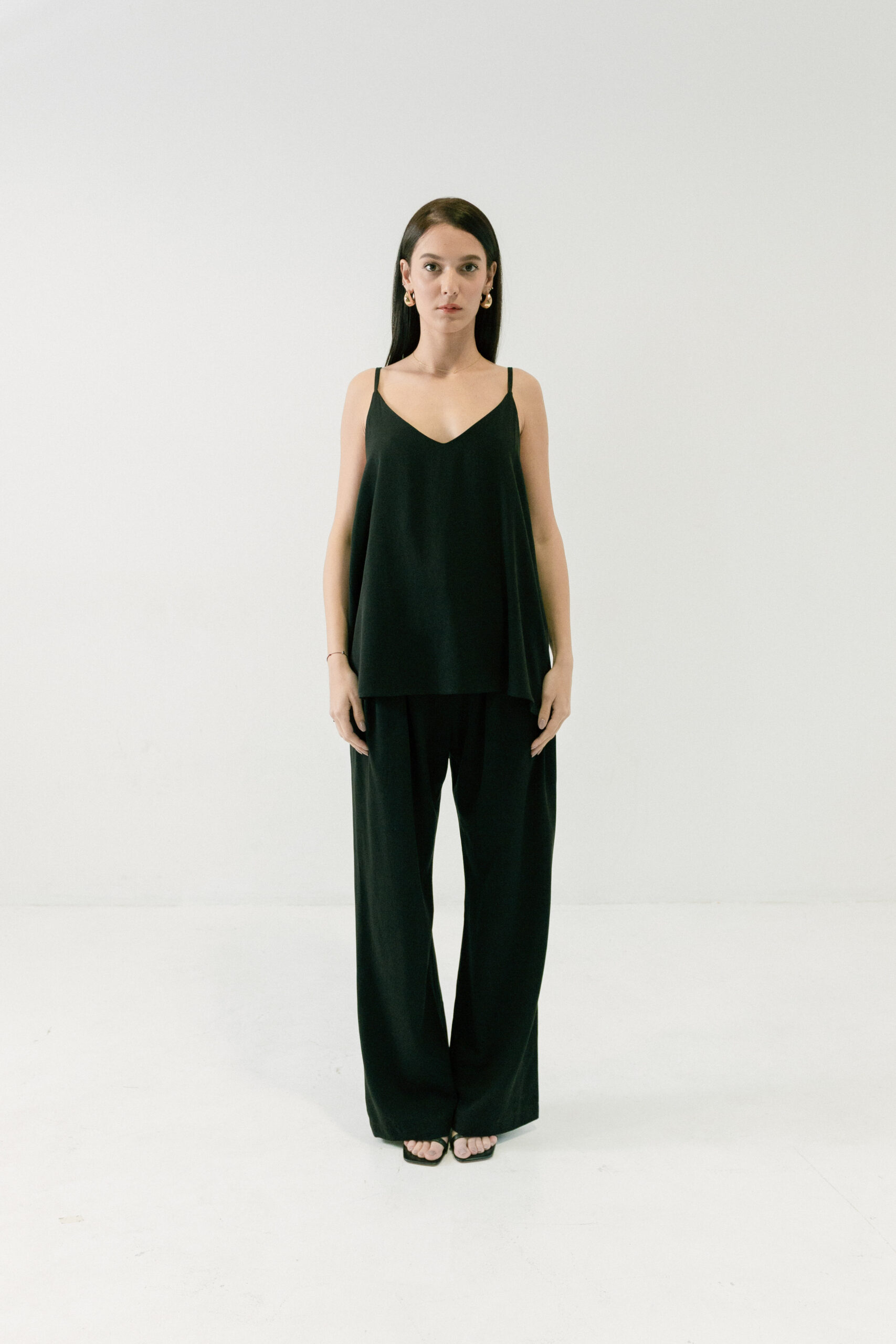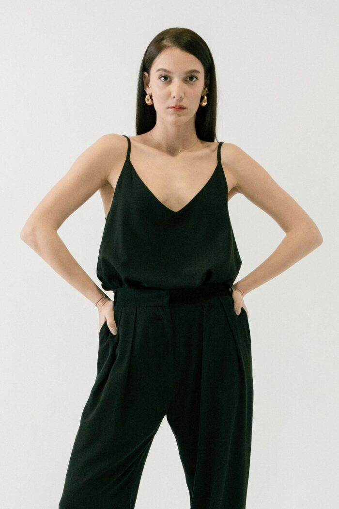 Majica Laganini na bretele od 50% Lyocella (Tencel®) i 50% Modala sa V-izrezom i tankim bretelama. Laka, meka i elegantna – savršena za svaki dan i svaku kombinaciju.