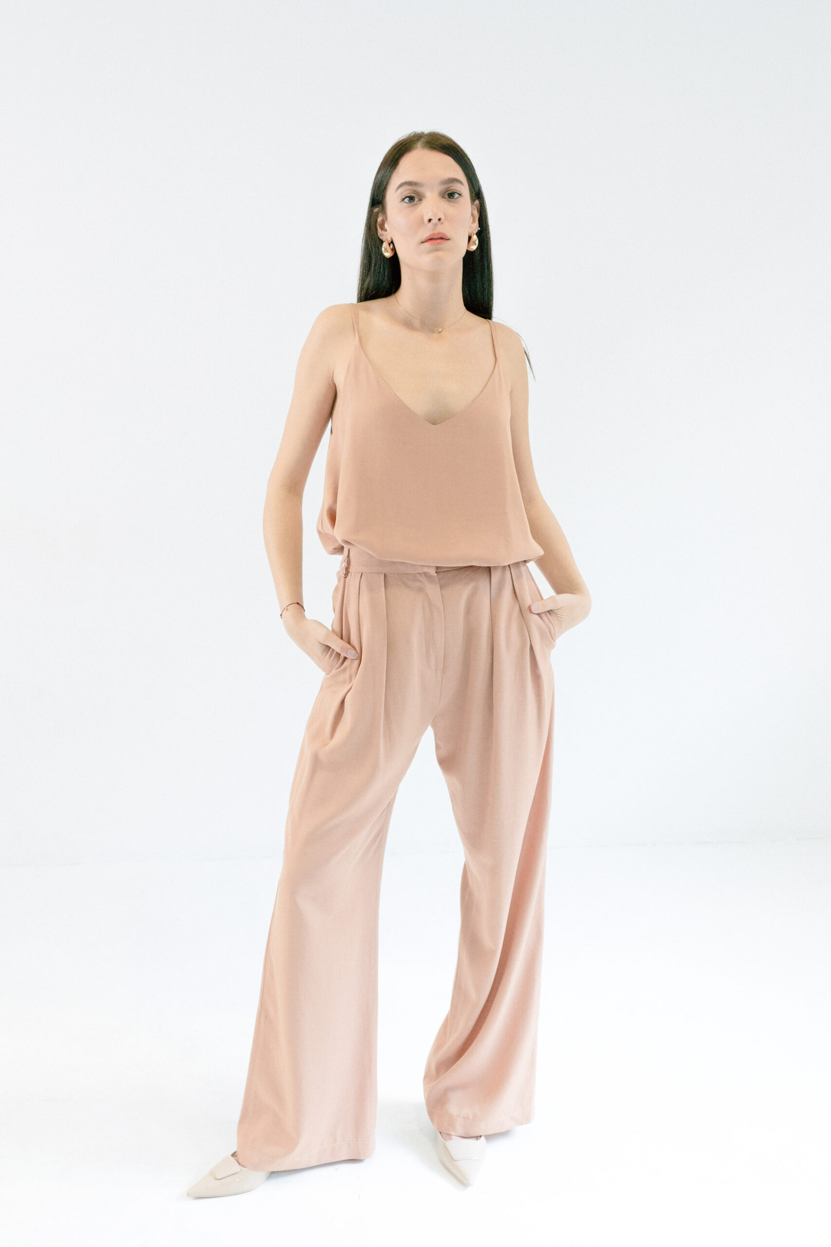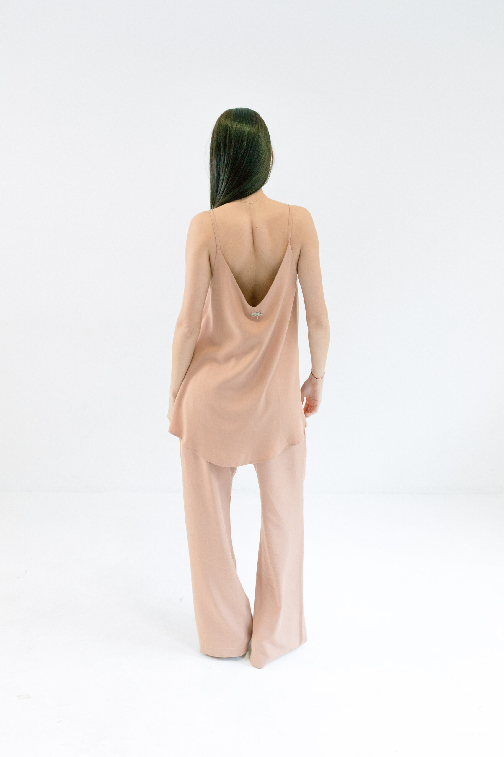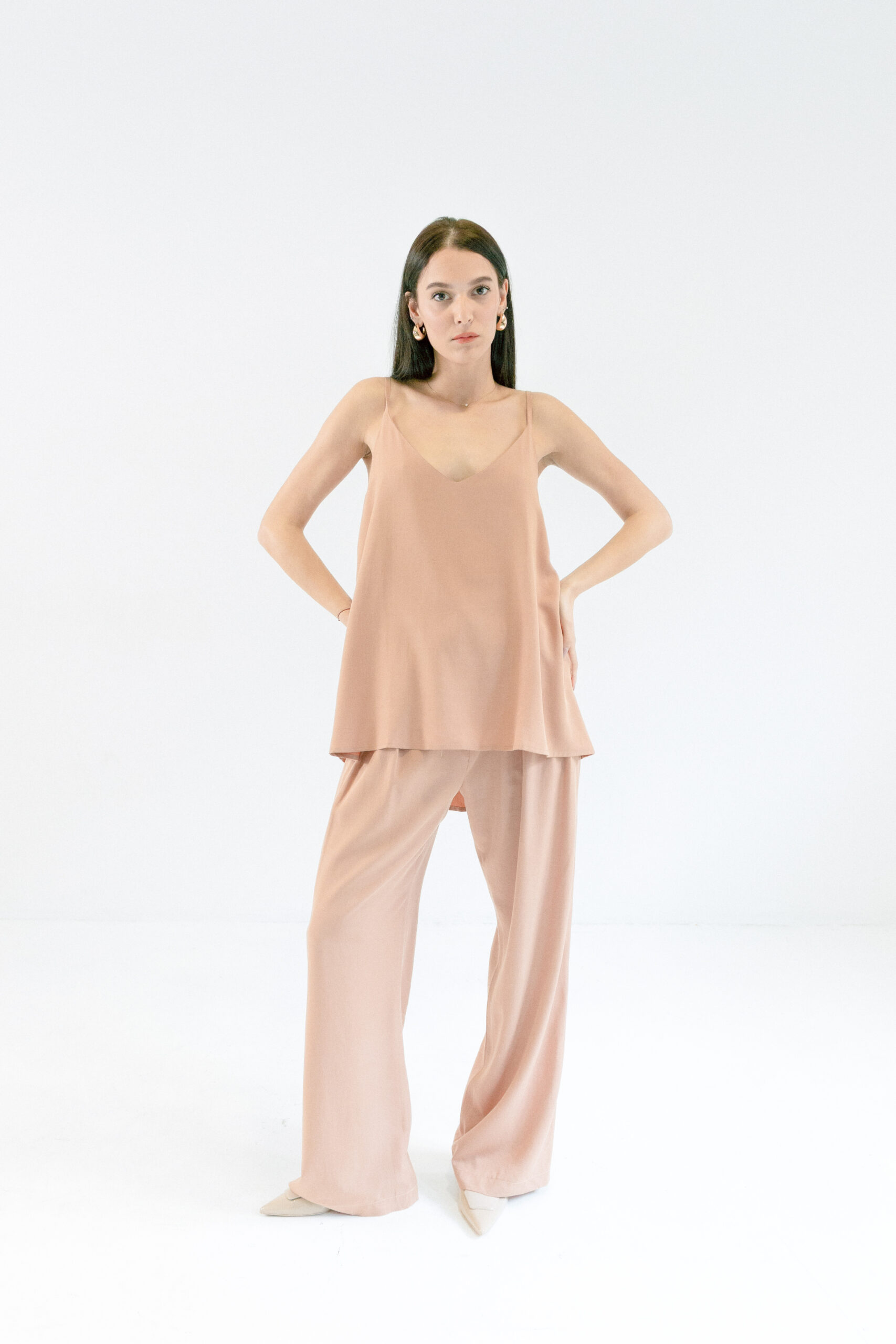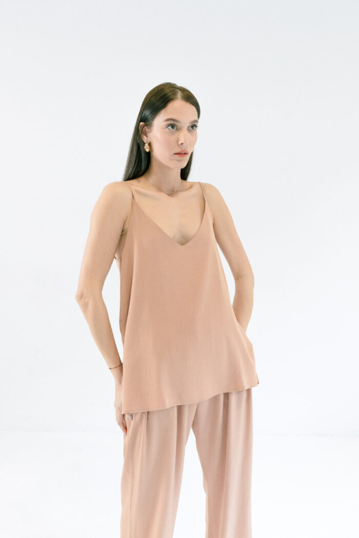 Majica Laganini na bretele od 50% Lyocella (Tencel®) i 50% Modala sa V-izrezom i tankim bretelama. Laka, meka i elegantna – savršena za svaki dan i svaku kombinaciju.