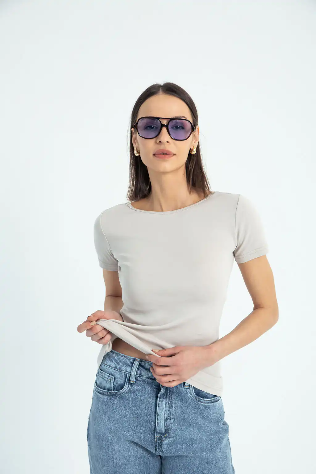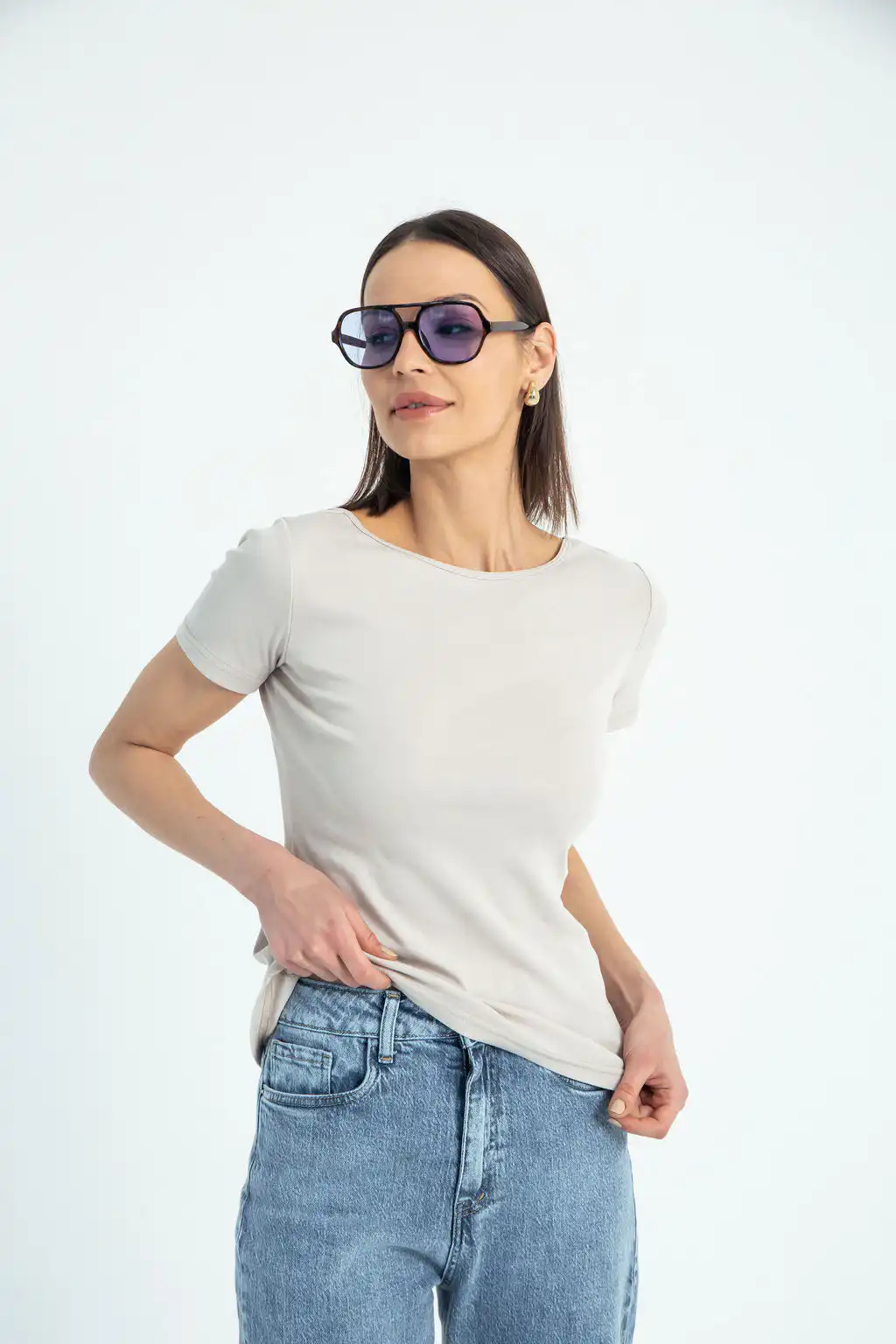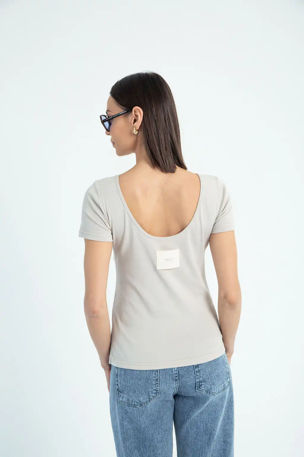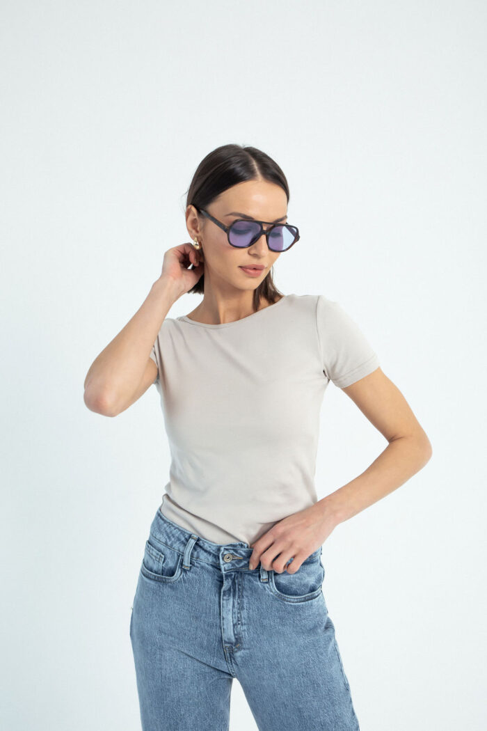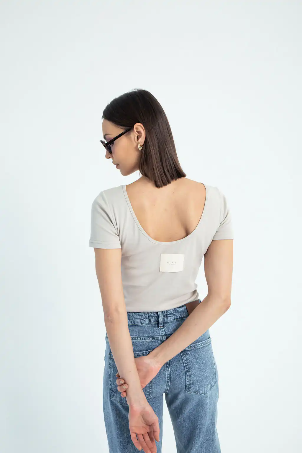 Majica Neo je nova, kratka verzija naše prepoznatljive majice Noa. Isti kroj koji volite, sada prilagođen toplijim danima. Izrađena od 100% organskog pamuka, zadržava usku siluetu i ženstveni, blago zaobljeni izrez nazad koji lepo prati liniju tela.