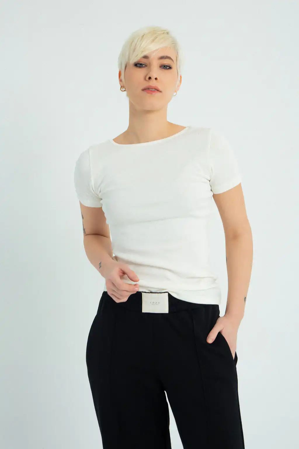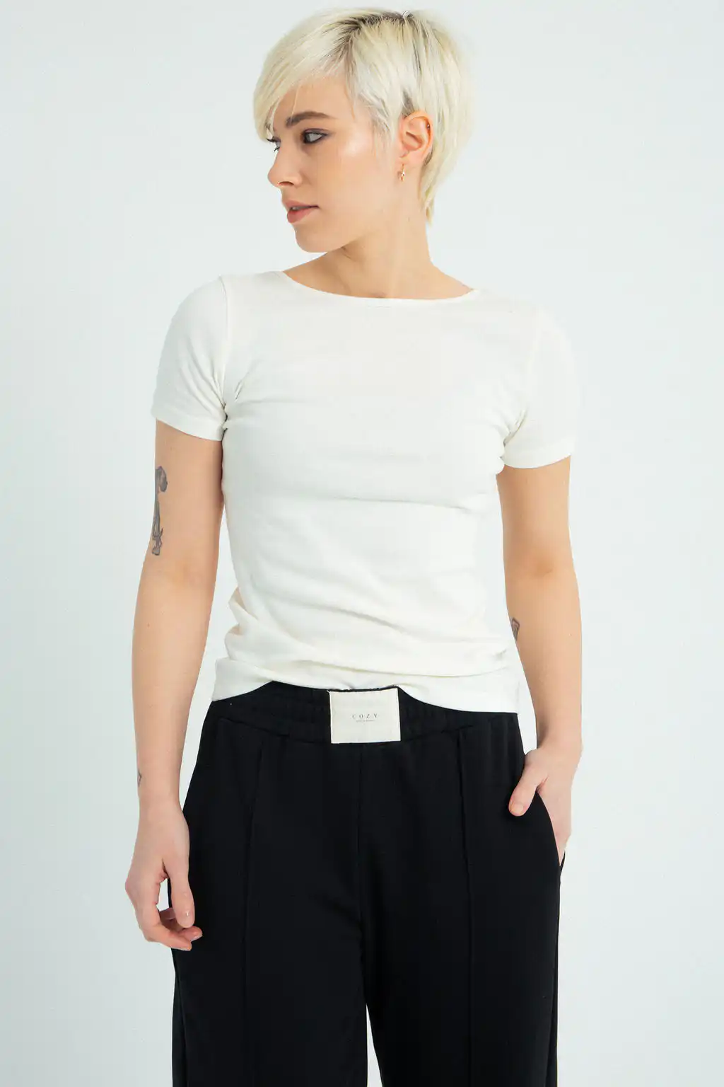 Majica Neo je nova, kratka verzija naše prepoznatljive majice Noa. Isti kroj koji volite, sada prilagođen toplijim danima. Izrađena od 100% organskog pamuka, zadržava usku siluetu i ženstveni, blago zaobljeni izrez nazad koji lepo prati liniju tela. Minimalistički dizajn i diskretna COZY etiketa na leđima daju joj prepoznatljiv potpis brenda, dok mekani, prijatan materijal obezbeđuje udobnost tokom celog dana. Majica Neo je savršena kao samostalan komad uz pantalone, šorts–suknju ili farmerke, ali i kao lagani basic ispod sakoa ili jakne. Bezvremenska, praktična i lako uklopiva – letnja verzija modela koji već volite.
