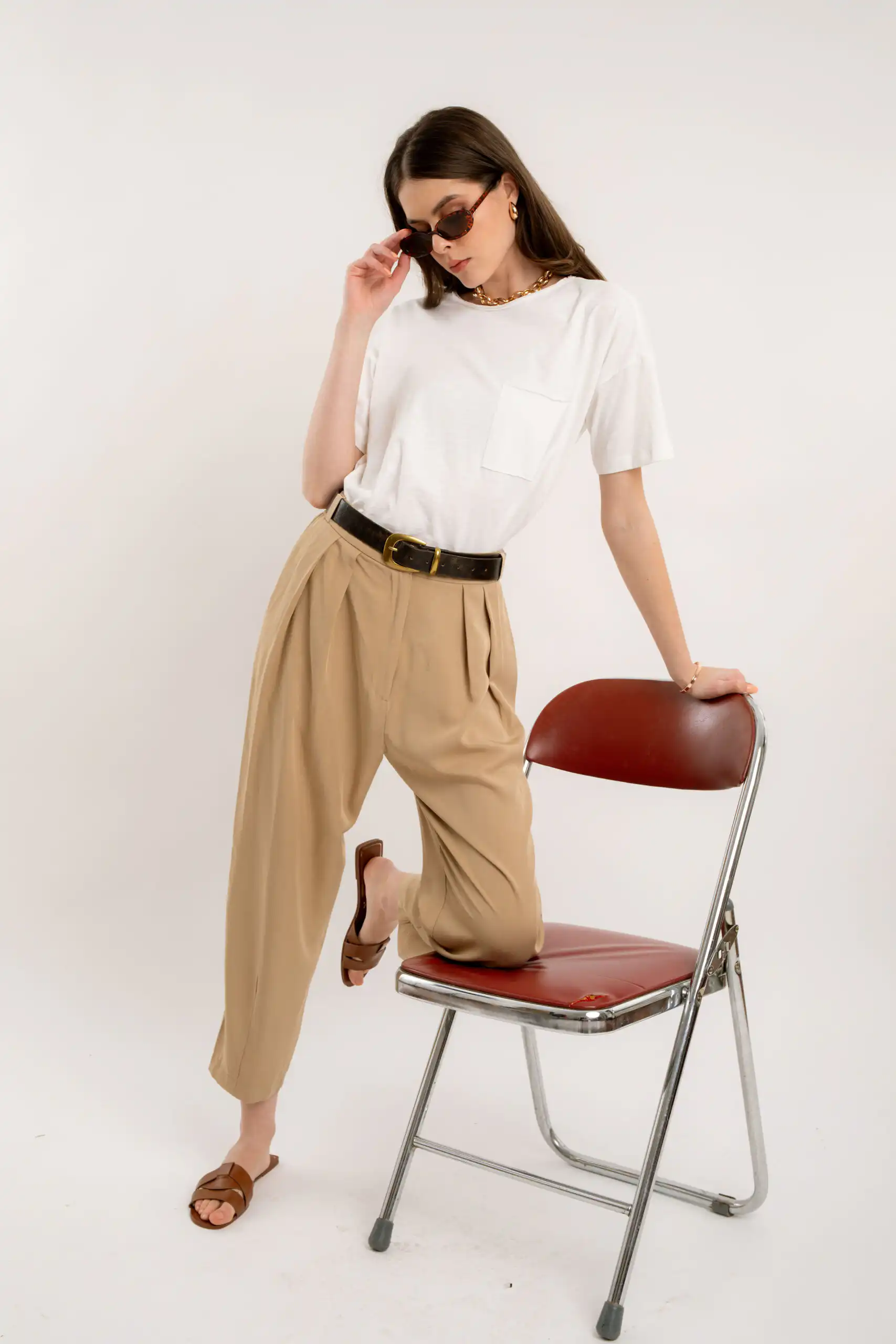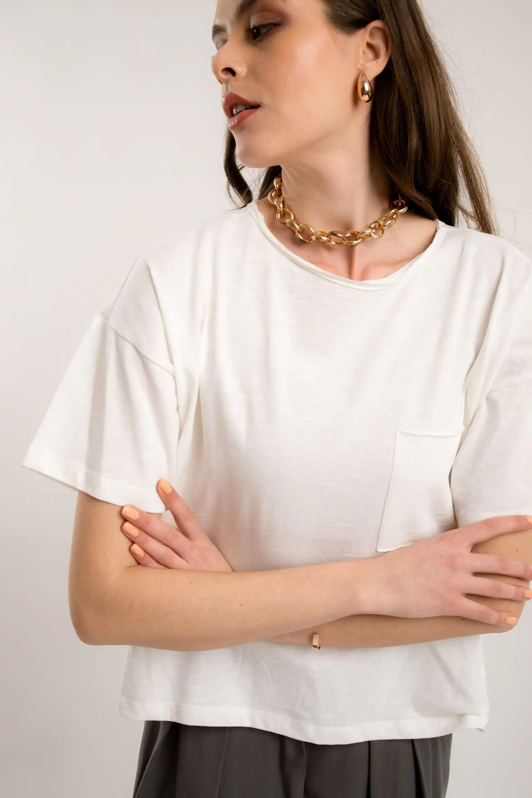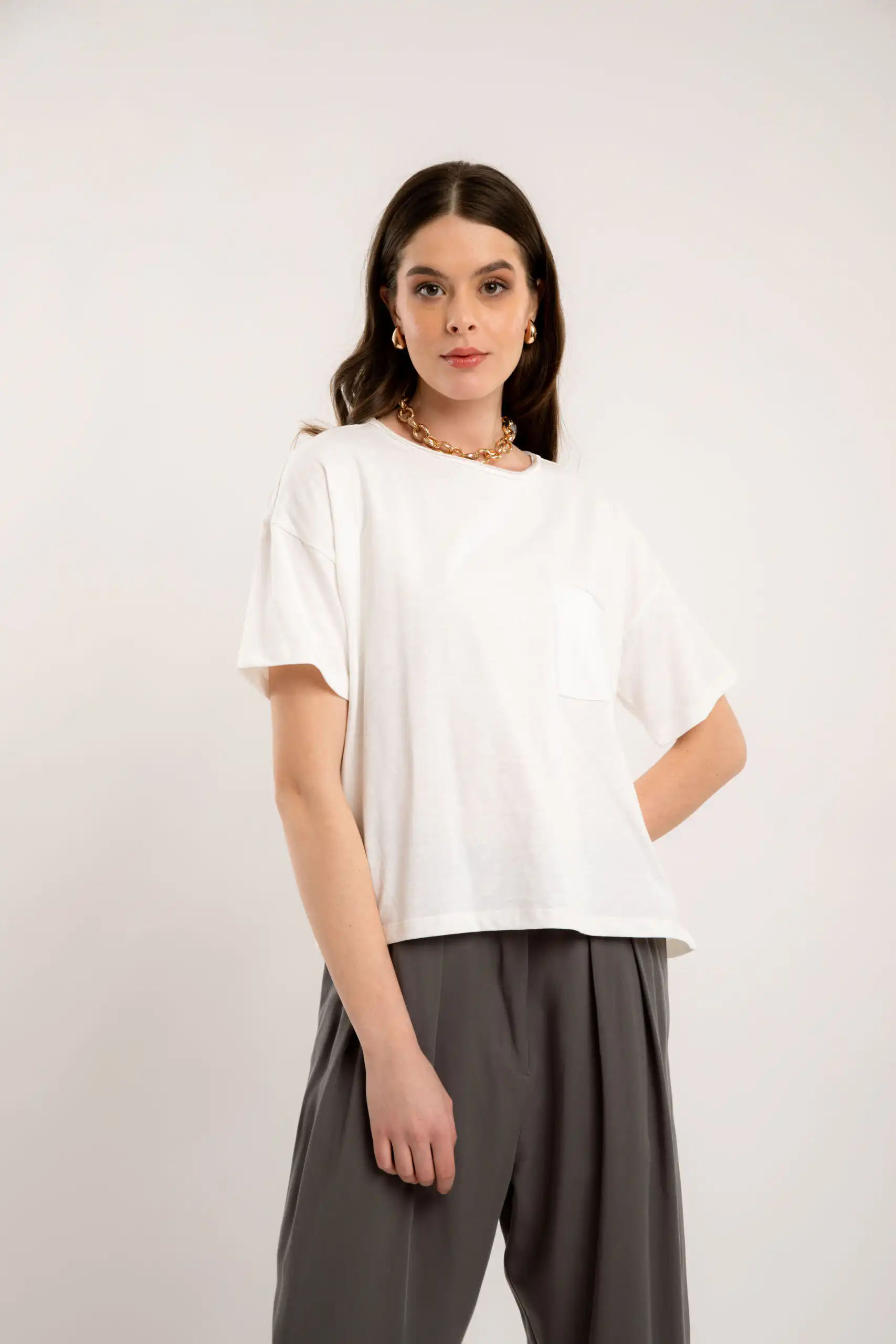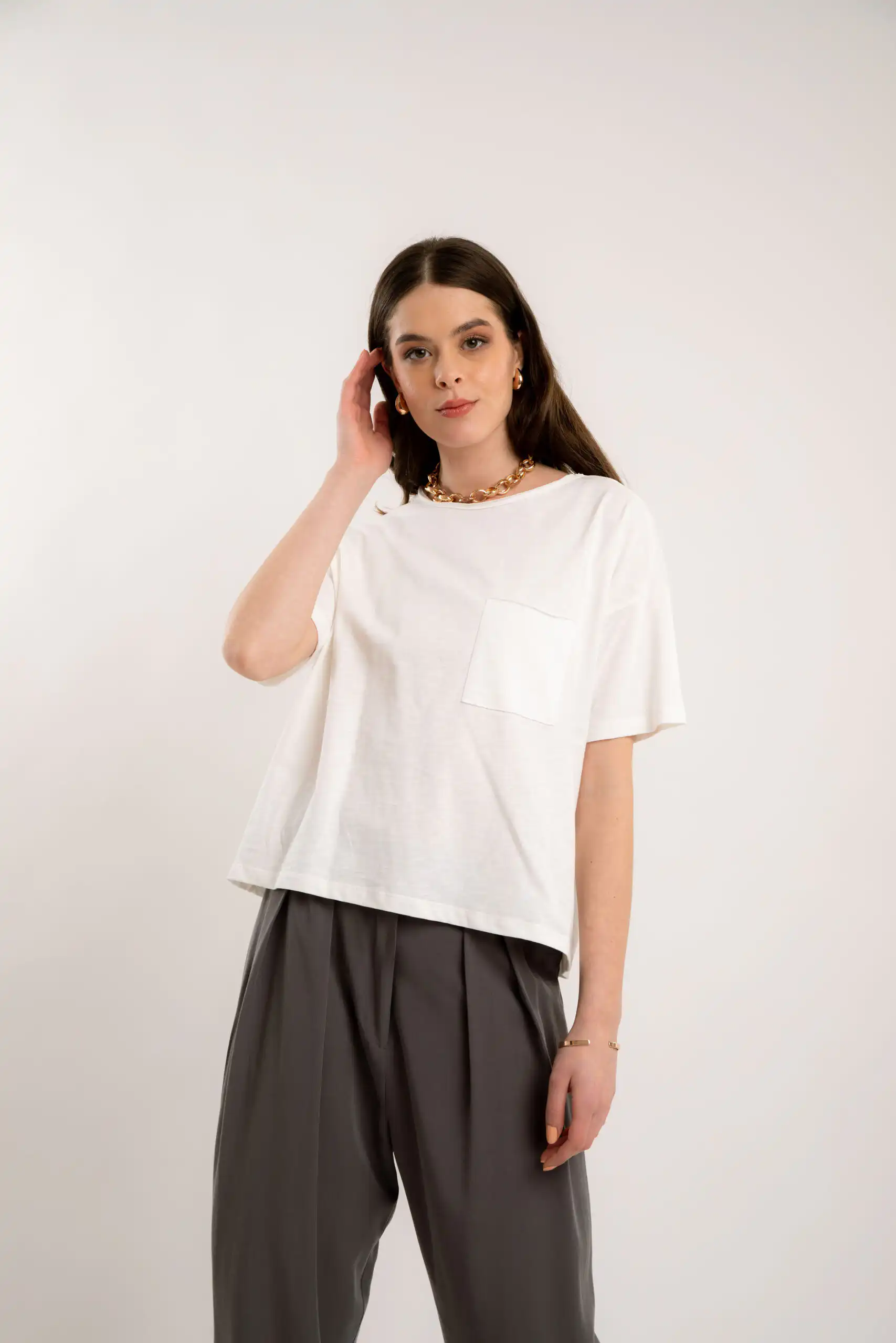 Majica kratkih rukava od 100% pamuka šireg kroja, sa džeparac džepom.