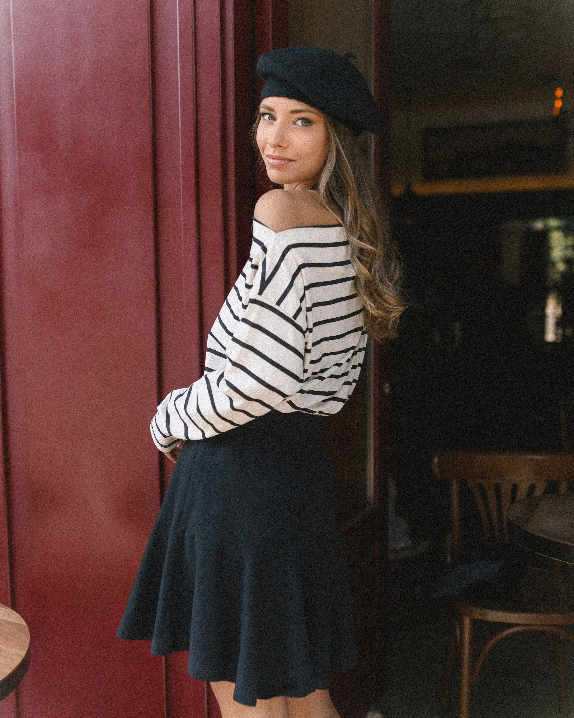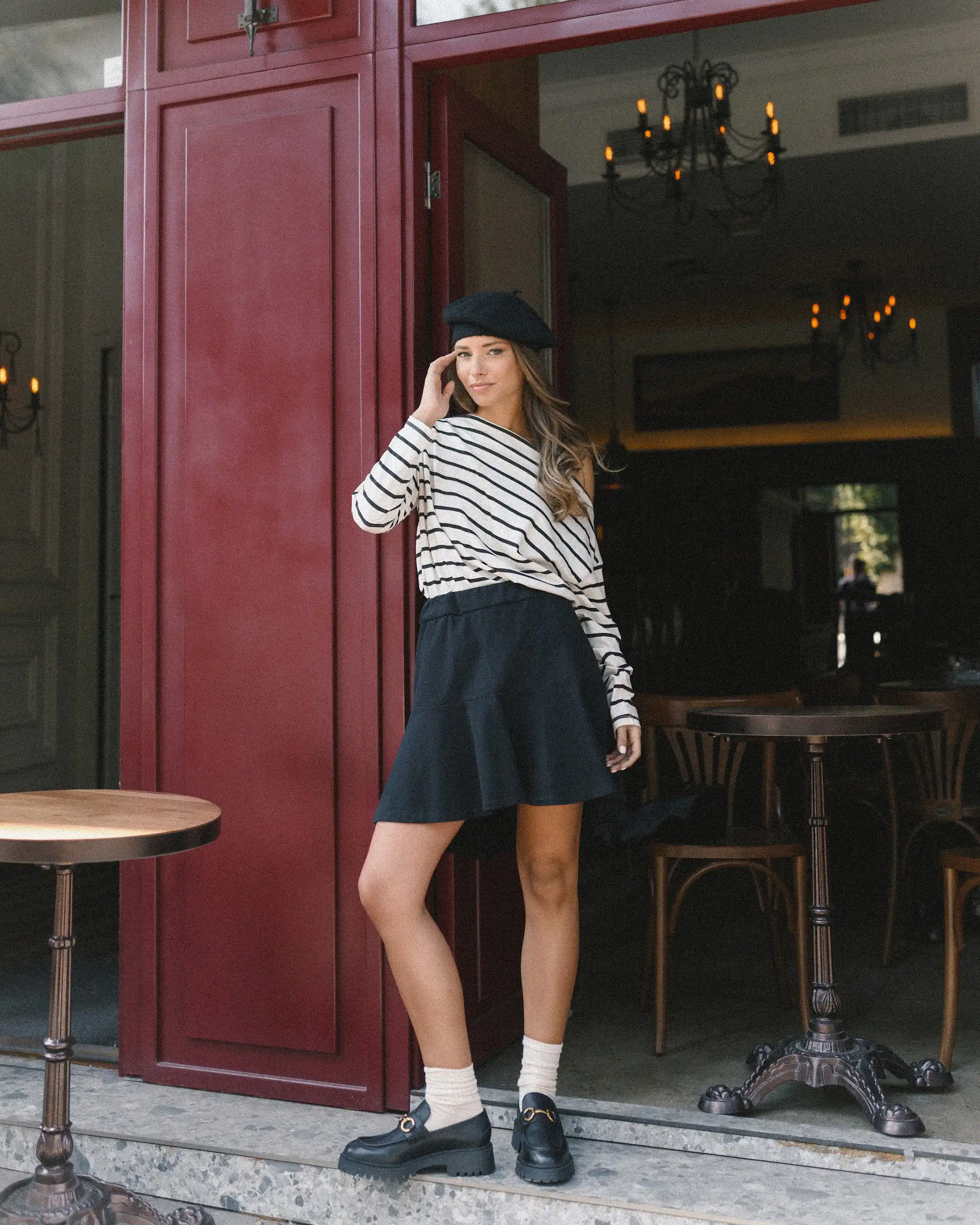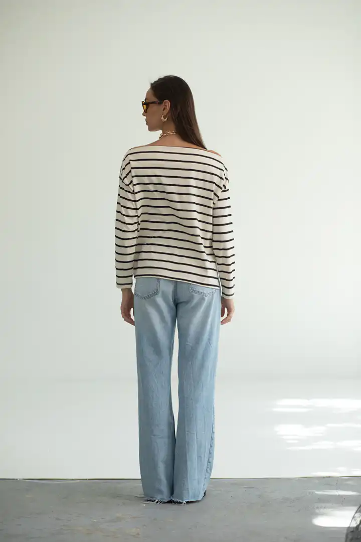 Prugasta majica sa čamac izrezom spaja udobnost i sofisticiranost u jednom klasičnom komadu. Inspirisana bezvremenskim pariškim stilom, ova majica je stvorena za trenutke kada želite da izgledate elegantno, a da se i dalje osećate potpuno opušteno. Ova majica je savršen izbor kako za ležerne dnevne kombinacije, tako i za večernje šetnje gradom. Možete je upariti sa farmerkama za nonšalantan izgled, ili sa elegantnim pantalonama i nakitom za sofisticiraniji stil.