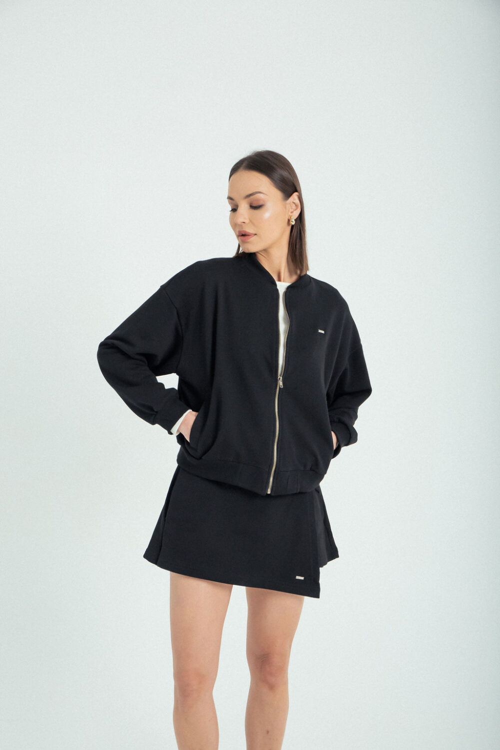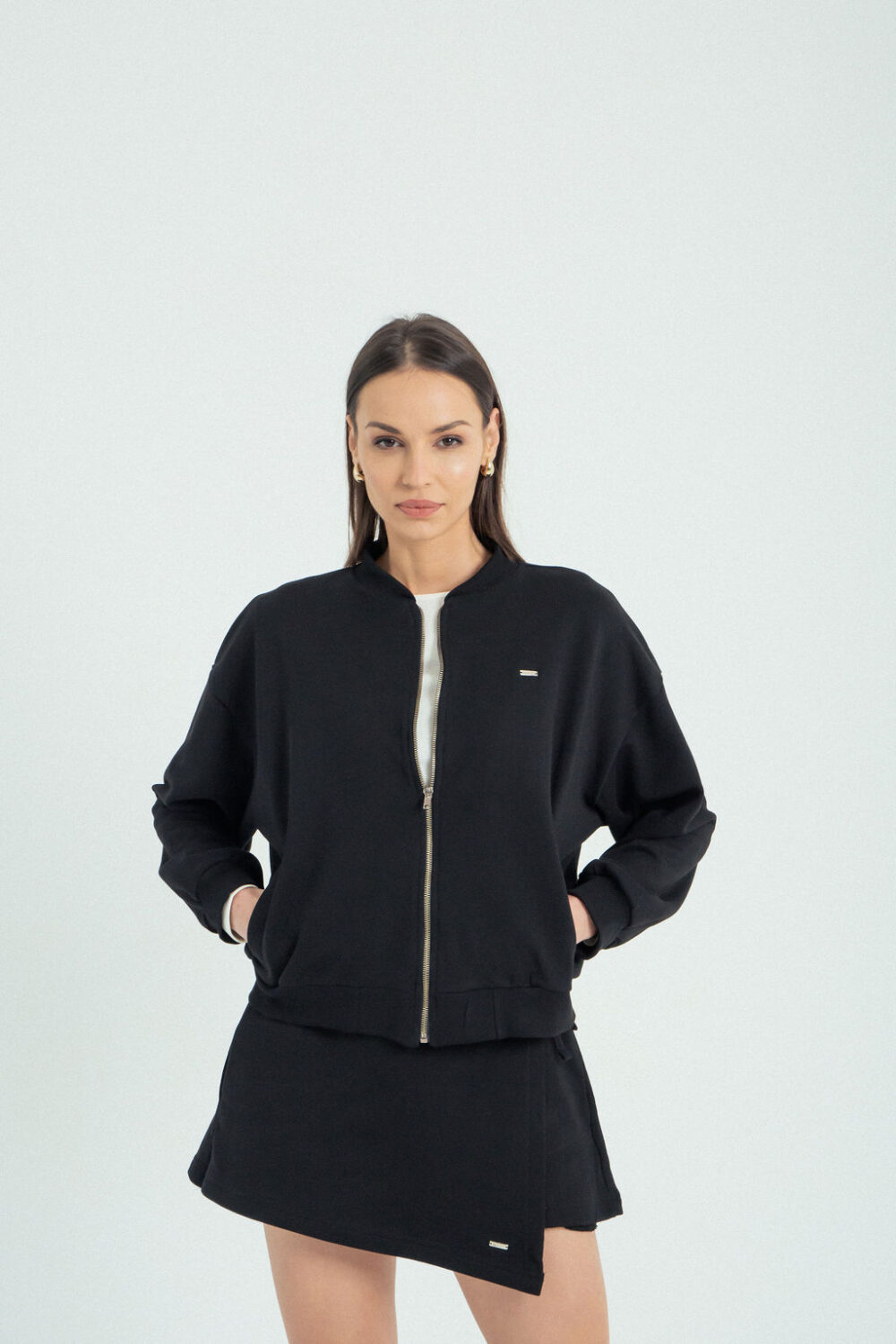 Duks jakna Bomber je klasičan komad koji spaja udobnost i sofisticiran stil. Sa svojim opuštenim krojem i klasičnom crnom bojom, lako se prilagođava različitim kombinacijama, od ležernih dnevnih outfita do elegantnijih, večernjih varijanti.