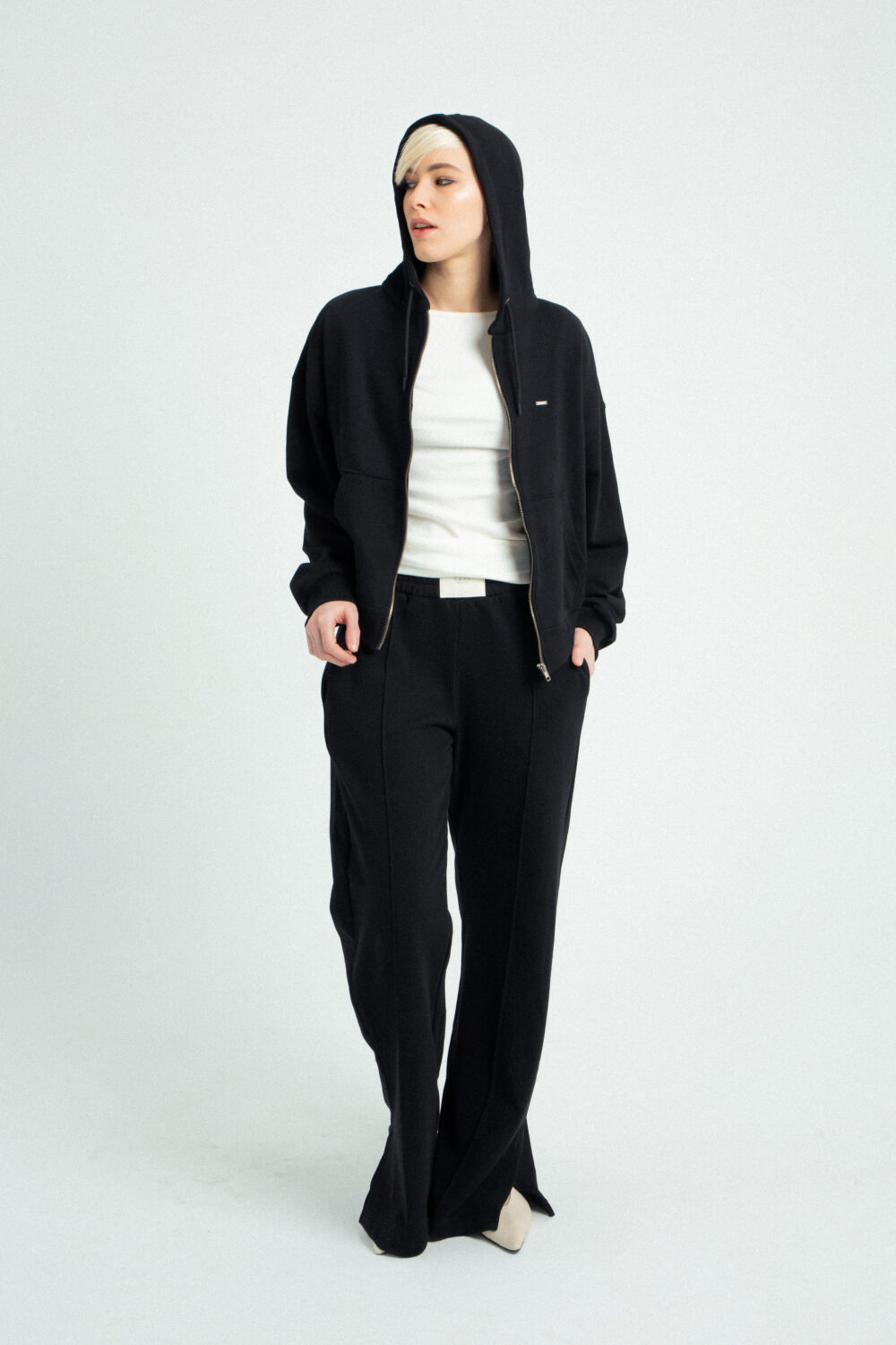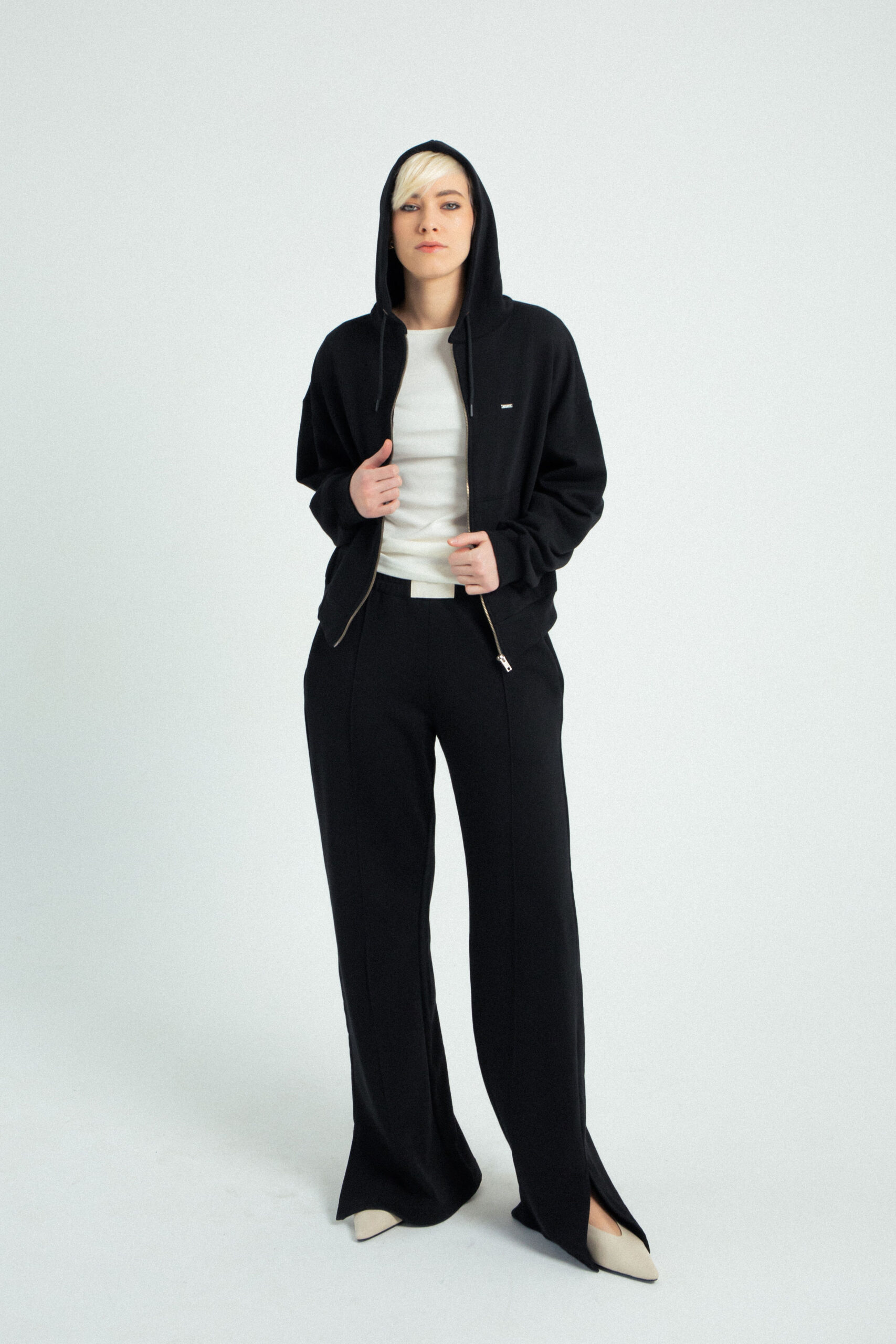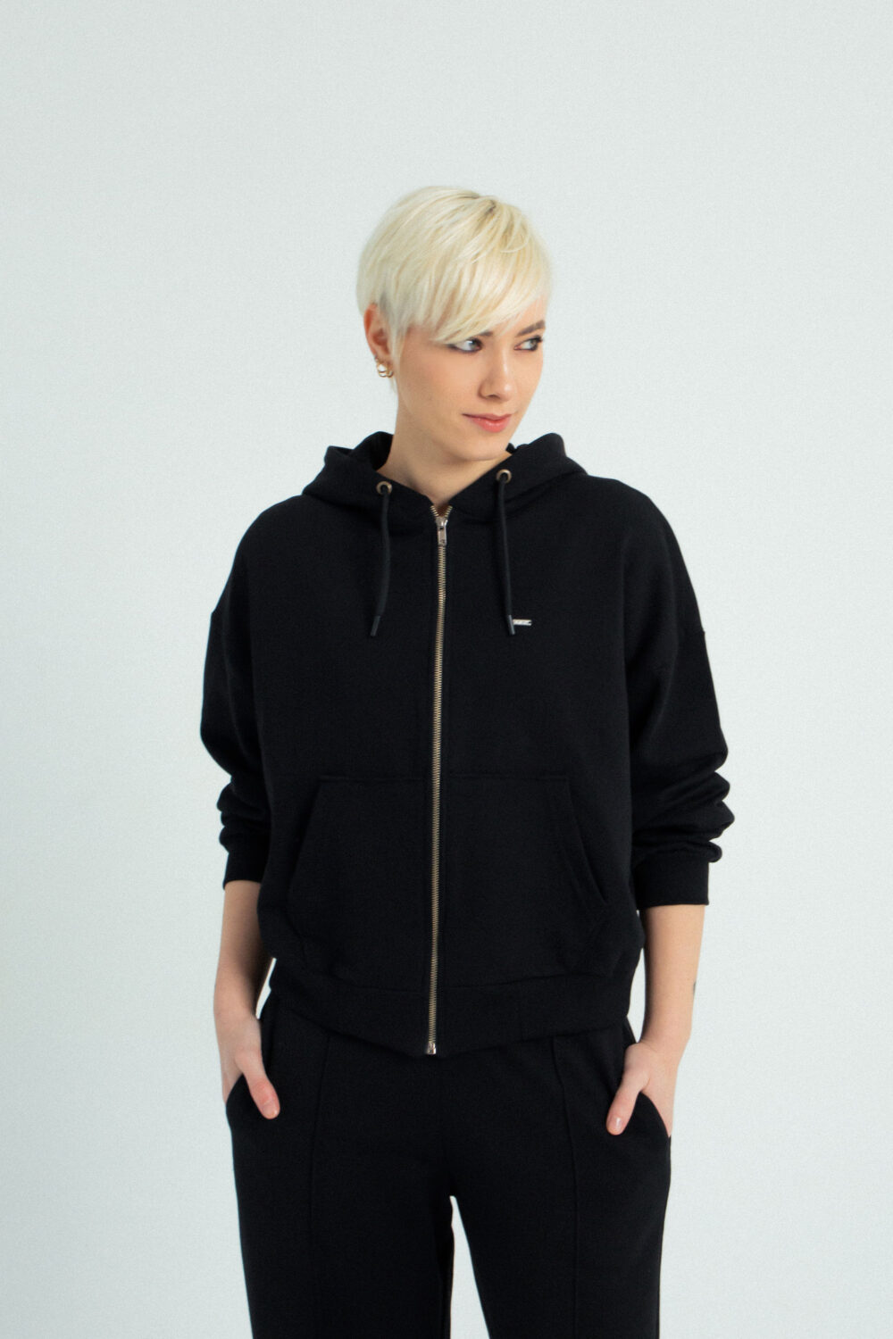Duks jakna Boyfriend – zip hoodie oversized kroja, ali koji i dalje lepo prati liniju tela, spuštenih ramena i blago širih rukava koji oblačiš jednom i više ga ne skidaš. :) Metalni rajsferšlus, kapuljača i praktični džepovi dodaju urbani karakter i funkcionalnost, dok minimalistički dizajn omogućava lako kombinovanje, od helanki i trenerki do farmerki ili suknje za kontrastni, edgy look. Bezvremenski, udoban i jednostavan komad koji se nosi bez razmišljanja i uvek.