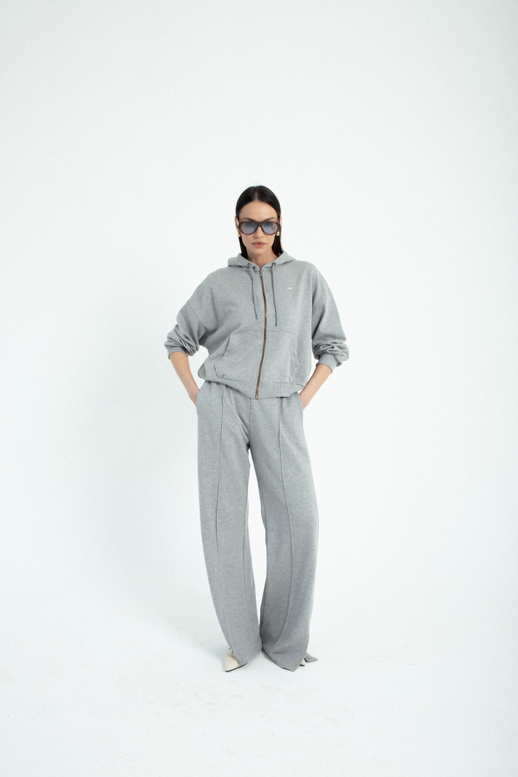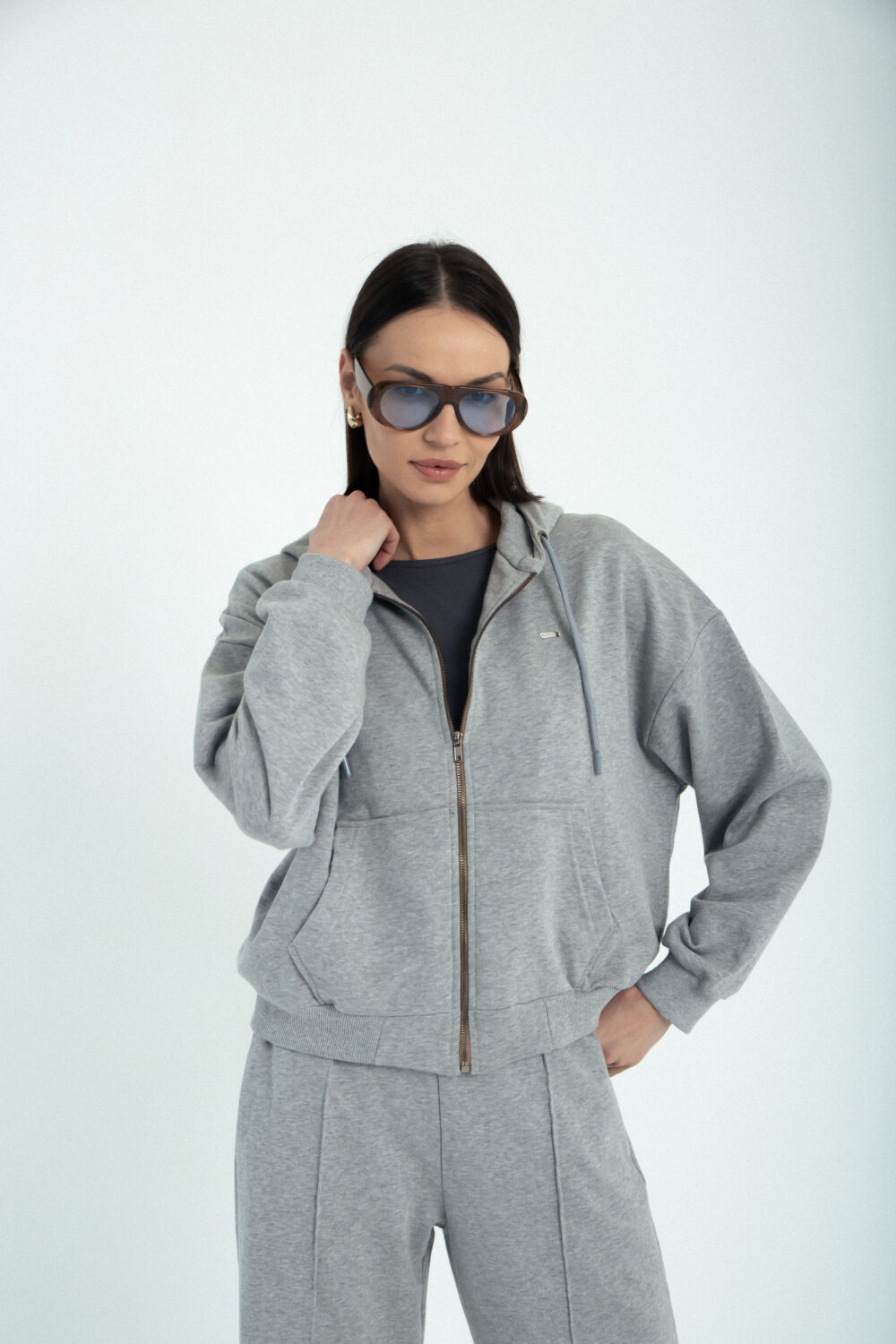 Duks jakna Boyfriend – zip hoodie oversized kroja, ali koji i dalje lepo prati liniju tela, spuštenih ramena i blago širih rukava koji oblačiš jednom i više ga ne skidaš. :) Metalni rajsferšlus, kapuljača i praktični džepovi dodaju urbani karakter i funkcionalnost, dok minimalistički dizajn omogućava lako kombinovanje, od helanki i trenerki do farmerki ili suknje za kontrastni, edgy look. Bezvremenski, udoban i jednostavan komad koji se nosi bez razmišljanja i uvek.