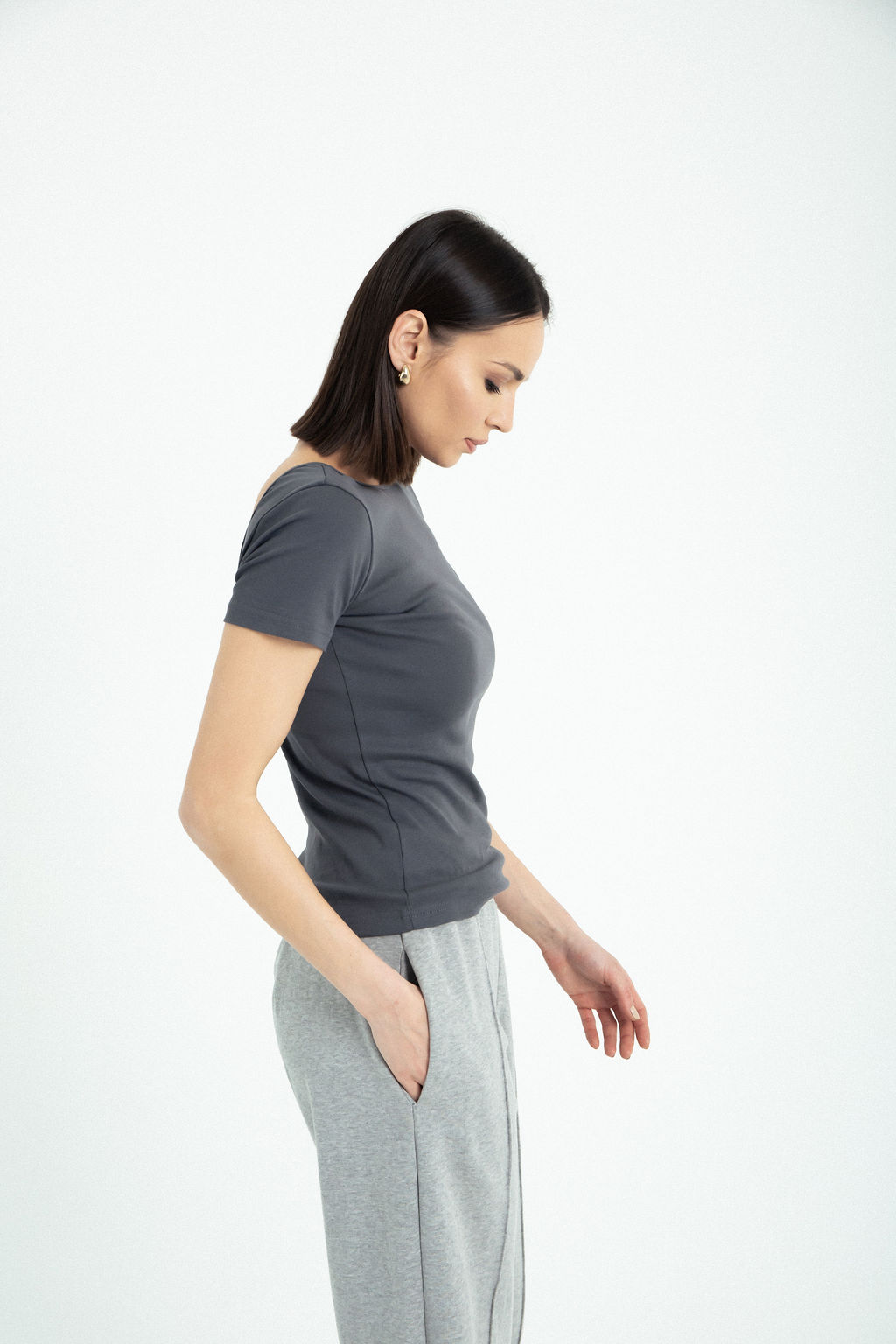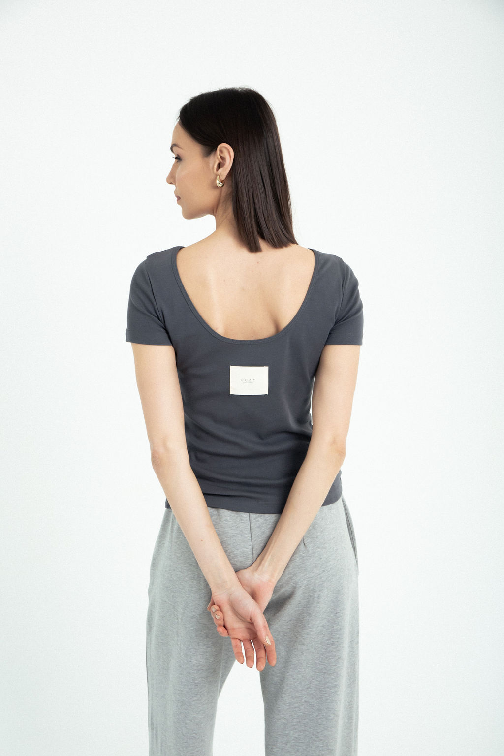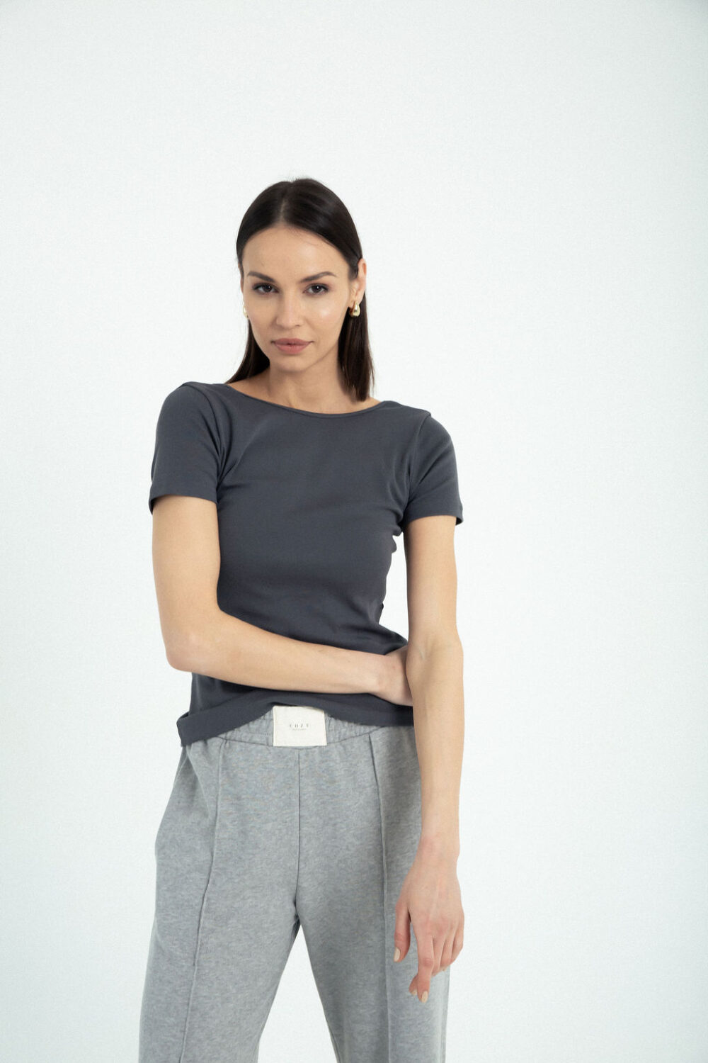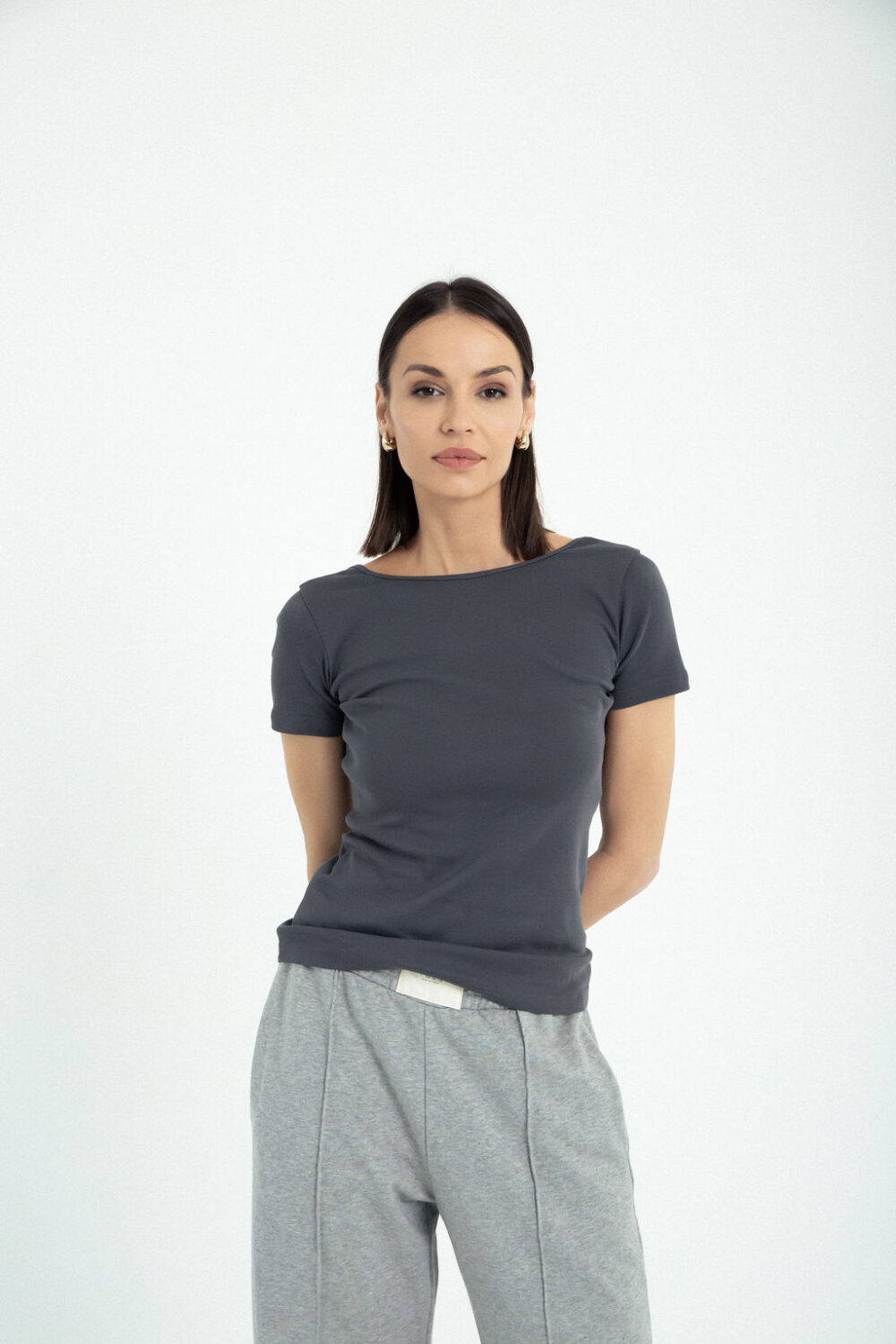 Majica Neo je nova, kratka verzija naše prepoznatljive majice Noa. Isti kroj koji volite, sada prilagođen toplijim danima. Izrađena od 100% organskog pamuka, zadržava usku siluetu i ženstveni, blago zaobljeni izrez nazad koji lepo prati liniju tela.