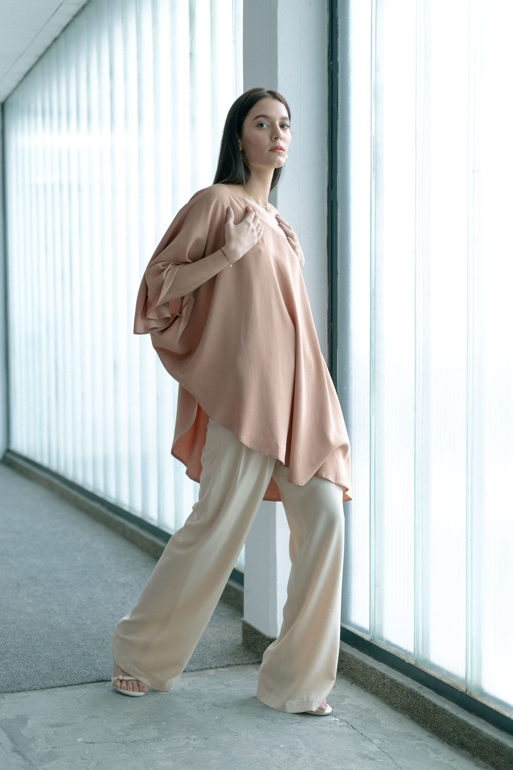 Devojka na fotografiji je visoka 175cm i nosi veličinu 36/38 – za pomoć u odabiru veličina pogledajte dimenzije proizvoda.