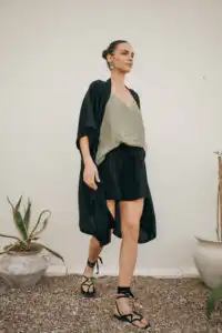 Započnite svoj dan u udobnosti i stilu sa Laganini šorcem u boji masline i majicom na bretele u istoj nijansi. Ova kombinacija je savršena za istraživanje grada ili uživanje u prirodi. Dodajte crni kimono za dodatnu zaštitu od sunca i završite izgled sa laganim sandalama i šeširom. Ovaj outfit pruža idealan balans između udobnosti i funkcionalnosti, omogućavajući vam da se krećete s lakoćom tokom celog dana.