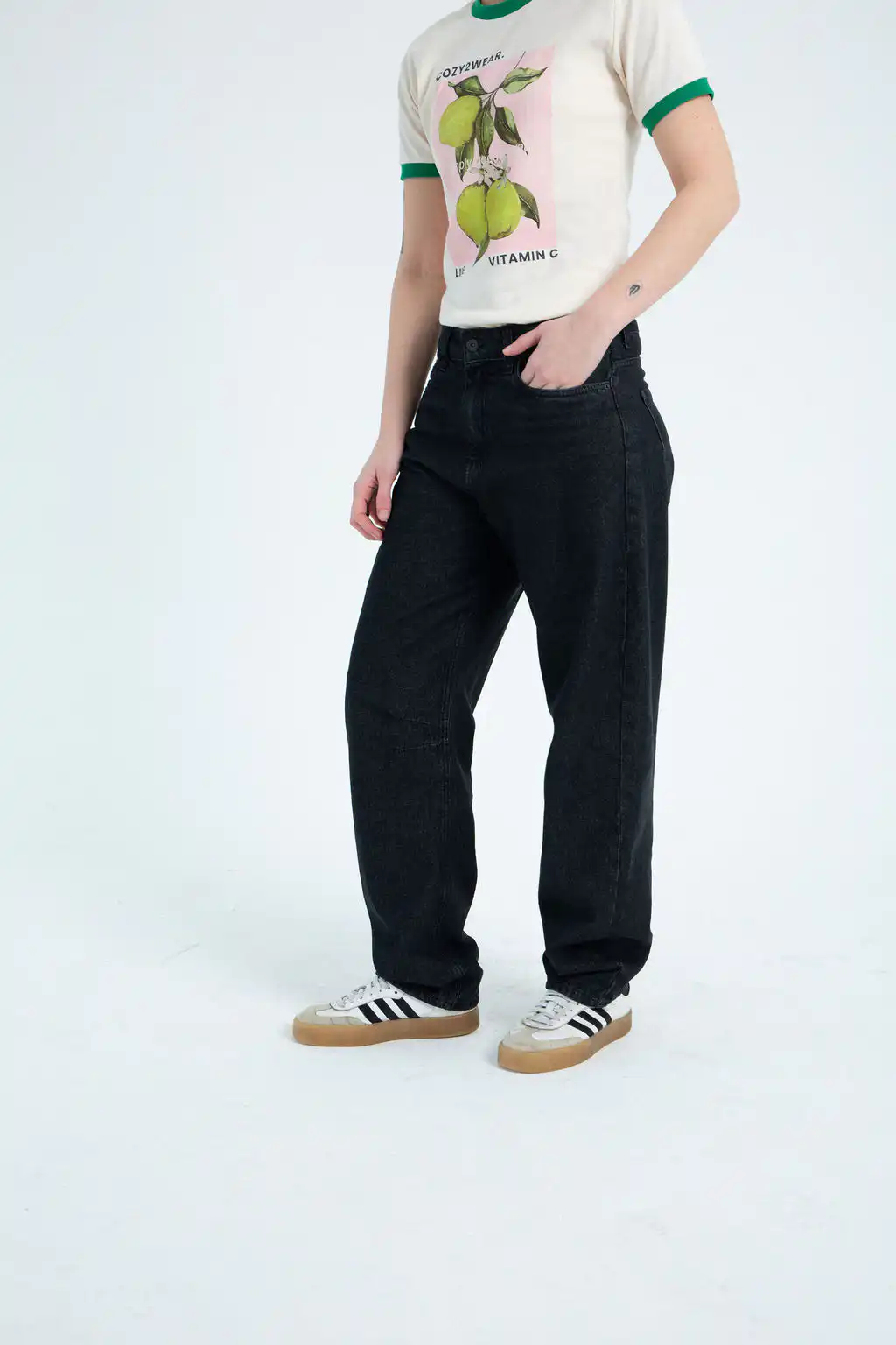Farmerke Barrel Fit sa spuštenim strukom i zaobljenim nogavicama blago suženim ka dnu. Moderan, opušten model od 100% pamuka koji daje poseban karakter svakom outfitu.