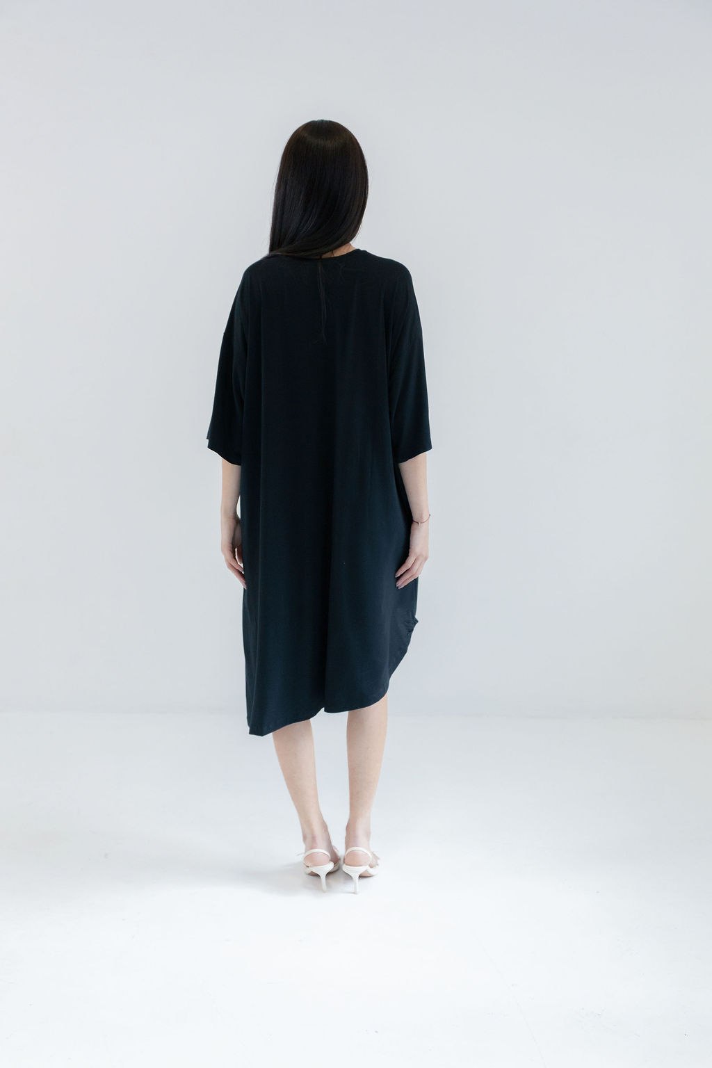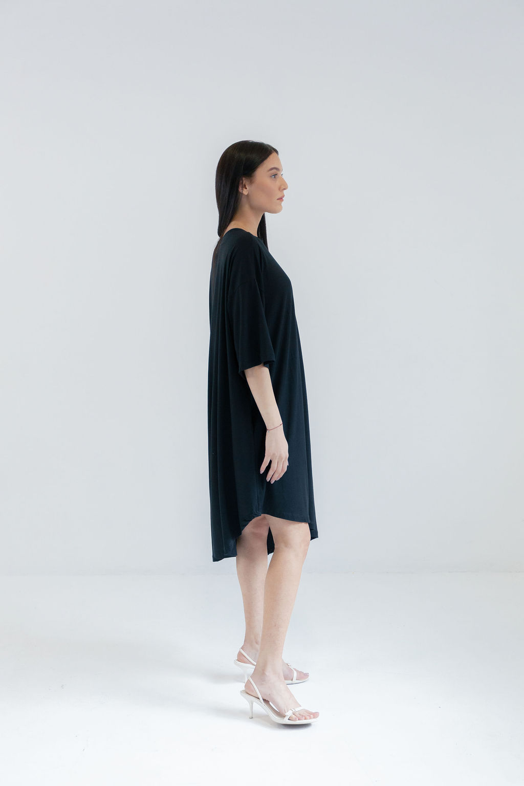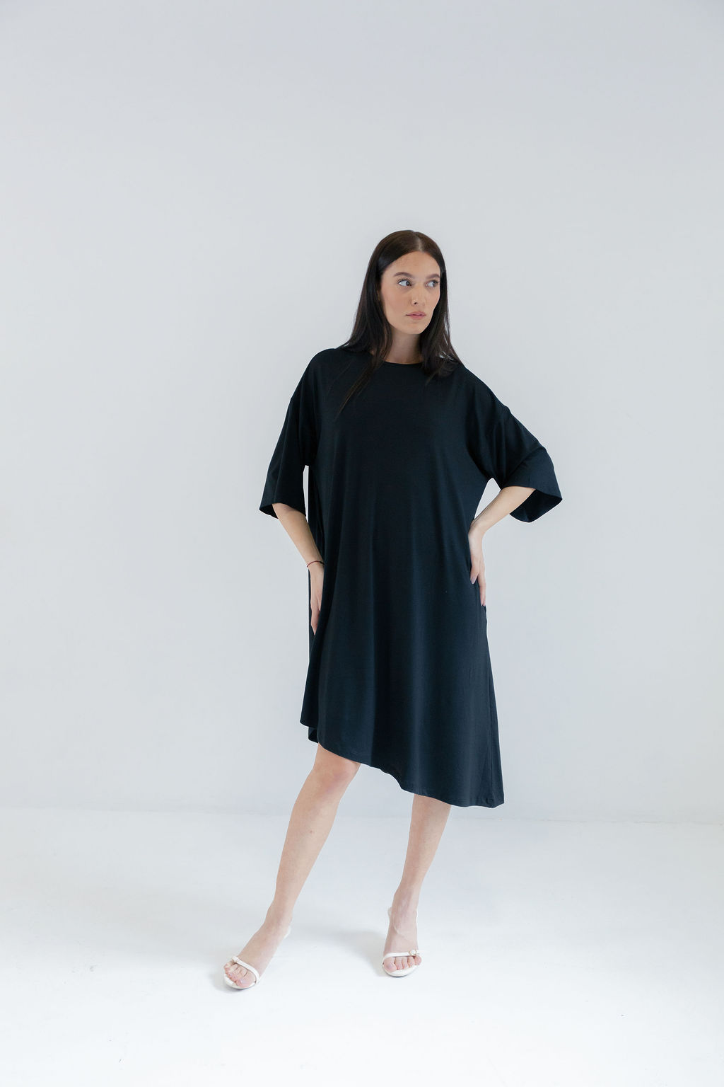 Haljina Ava zadržava prepoznatljiv opušteni kroj majice Ava i asimetričnu formu koja joj daje moderan, nenametljiv karakter. Džepovi donose dozu praktičnosti i čine je idealnim izborom za svakodnevno nošenje. Lagana i prijatna, nežno prati pokret tela bez osećaja stezanja, pa se lako nosi kroz ceo dan – uz patike, sandale ili u slojevitim kombinacijama, uvek izgledajući podjednako dobro.