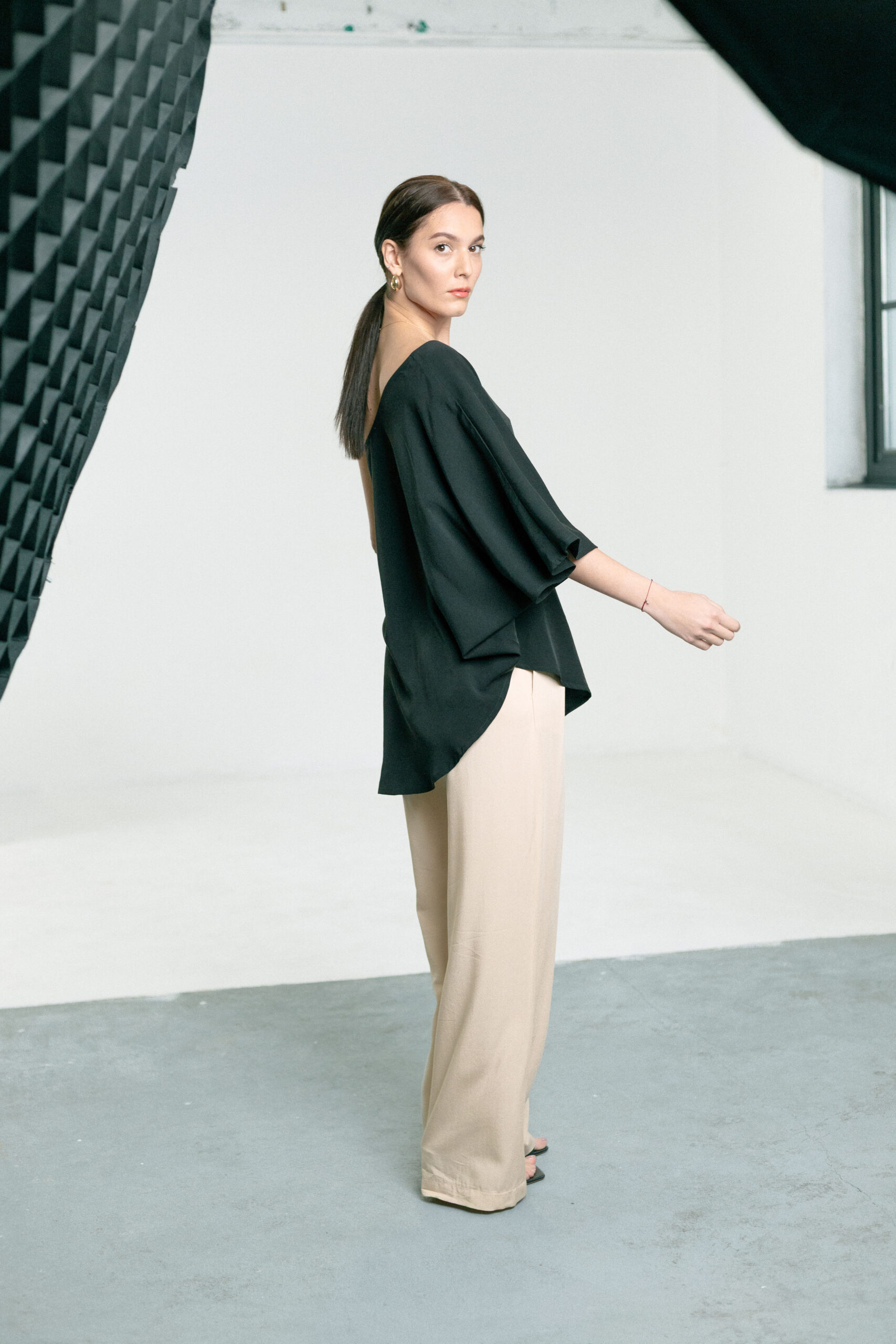 Majica Aura na jedno rame, široka je, lepršava i izrađena od 50% Lyocella (Tencel®) i 50% Modala. Asimetričnog je kroja, idealna za tople dane. Stvorena za žene koje vole jednostavnost s karakterom, koje se najbolje osećaju kad im je udobno — i kad to udobno izgleda sjajno.