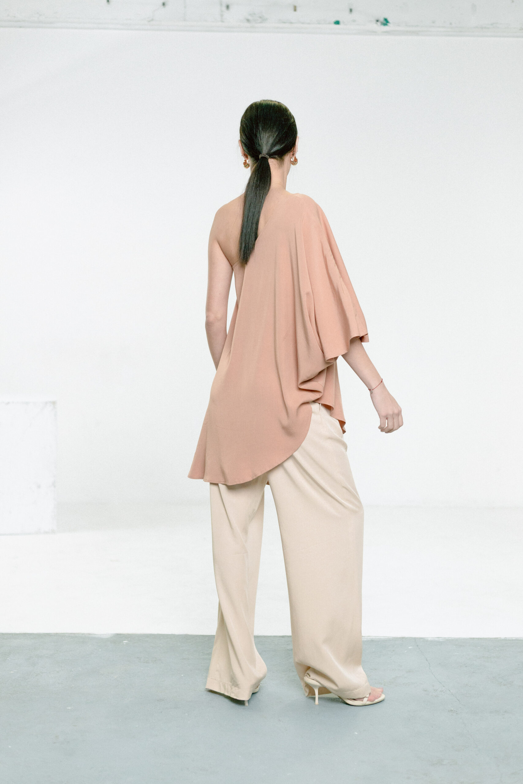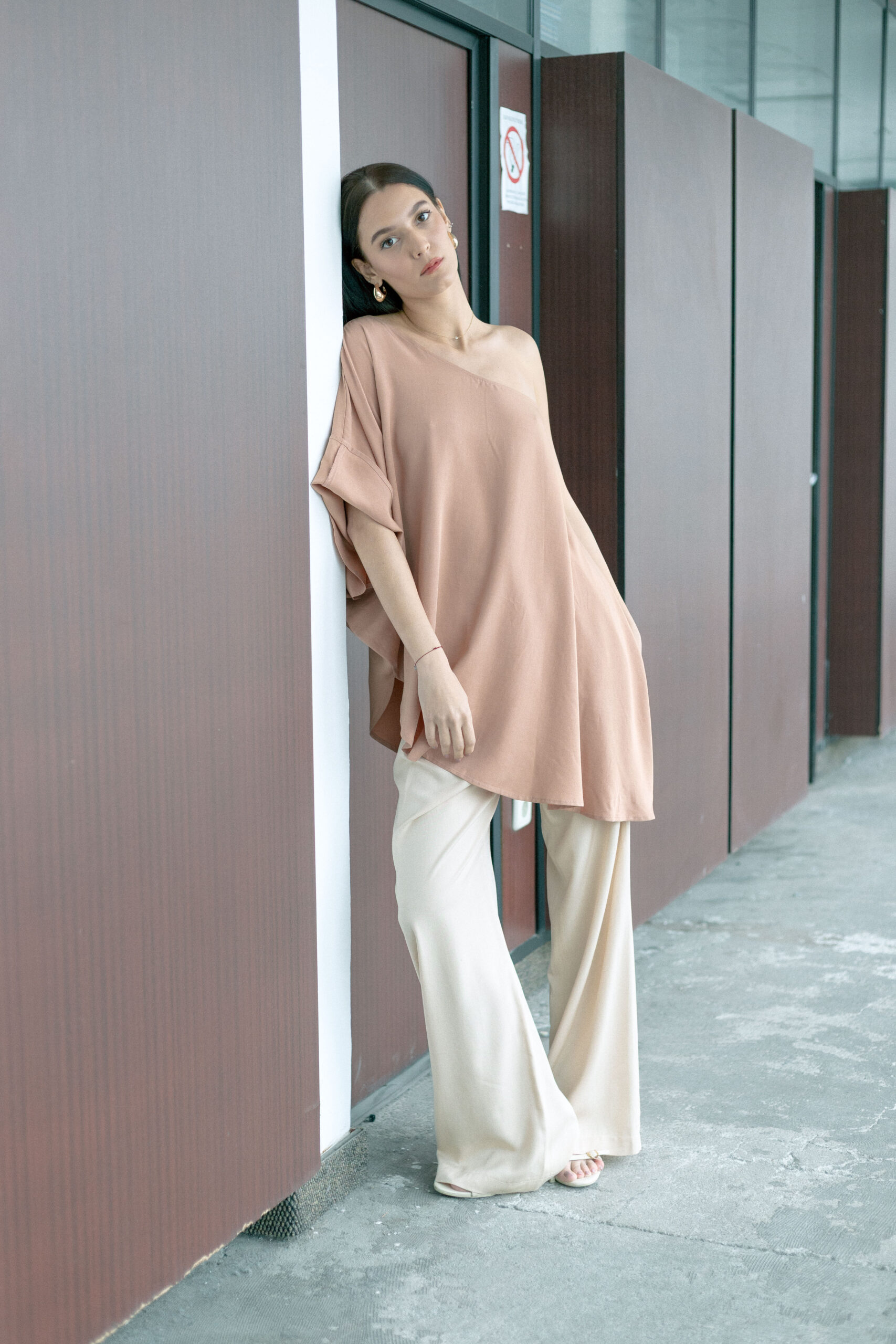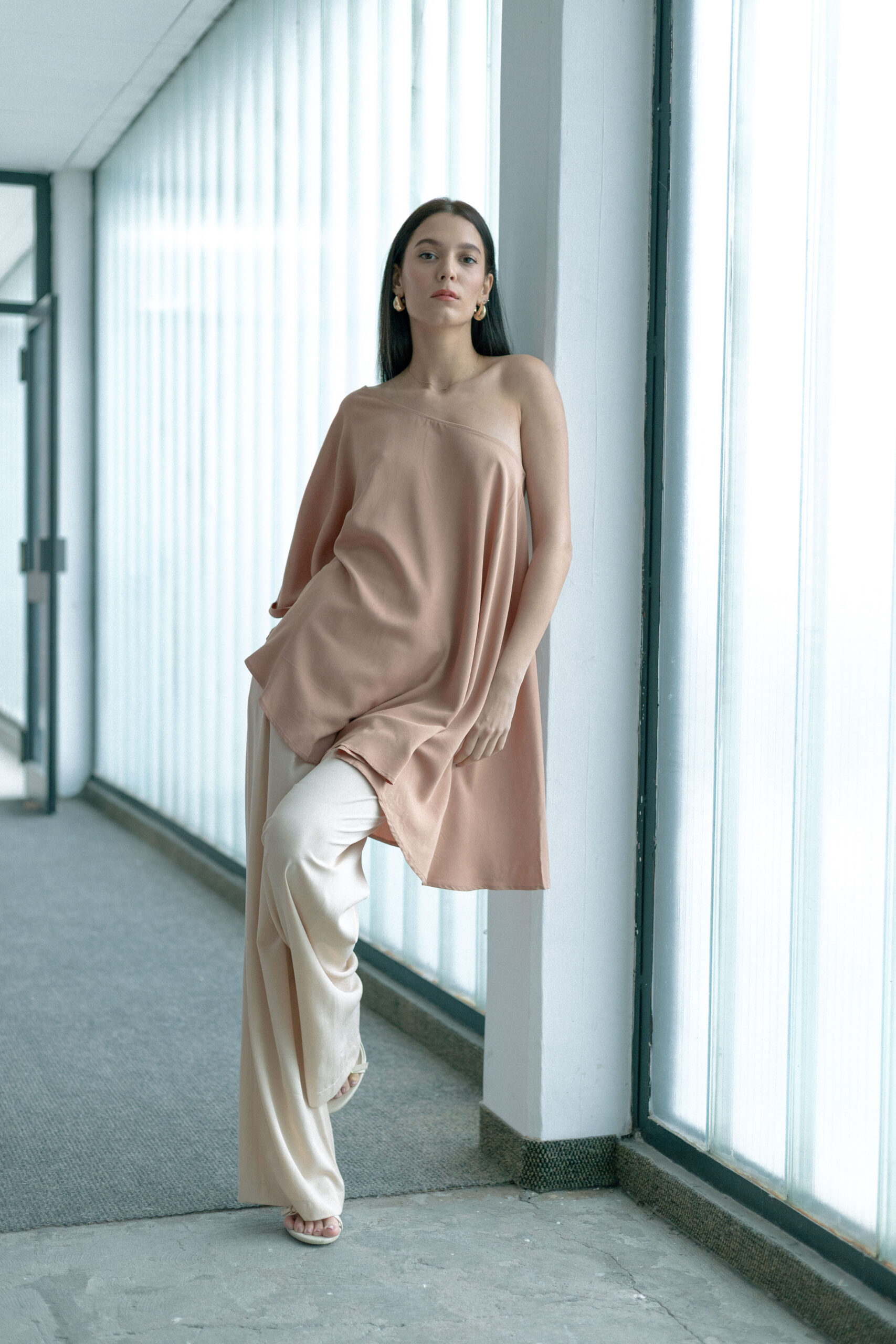 Majica Aura na jedno rame, široka je, lepršava i izrađena od 50% Lyocella (Tencel®) i 50% Modala. Asimetričnog je kroja, idealna za tople dane. Stvorena za žene koje vole jednostavnost s karakterom, koje se najbolje osećaju kad im je udobno — i kad to udobno izgleda sjajno.
