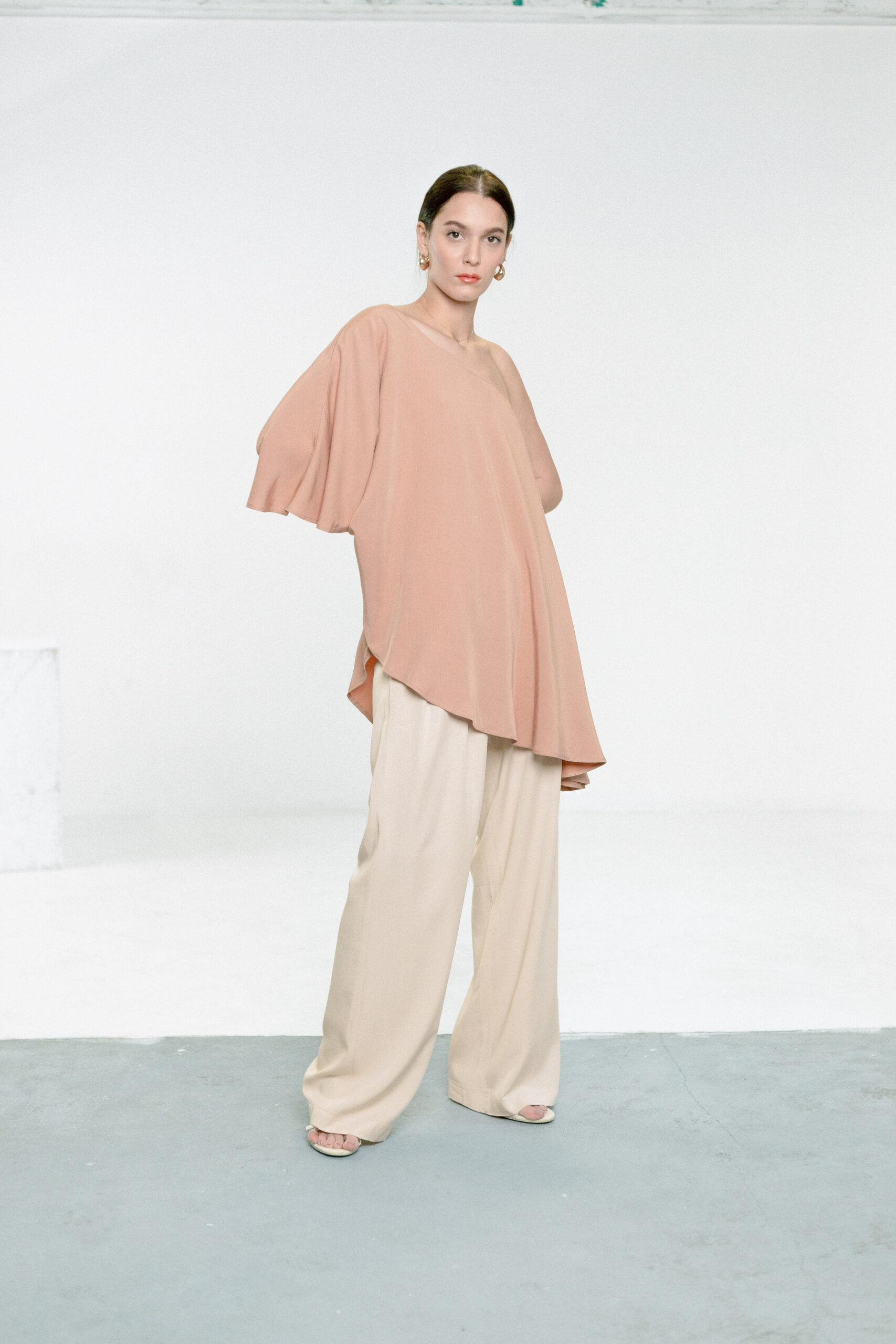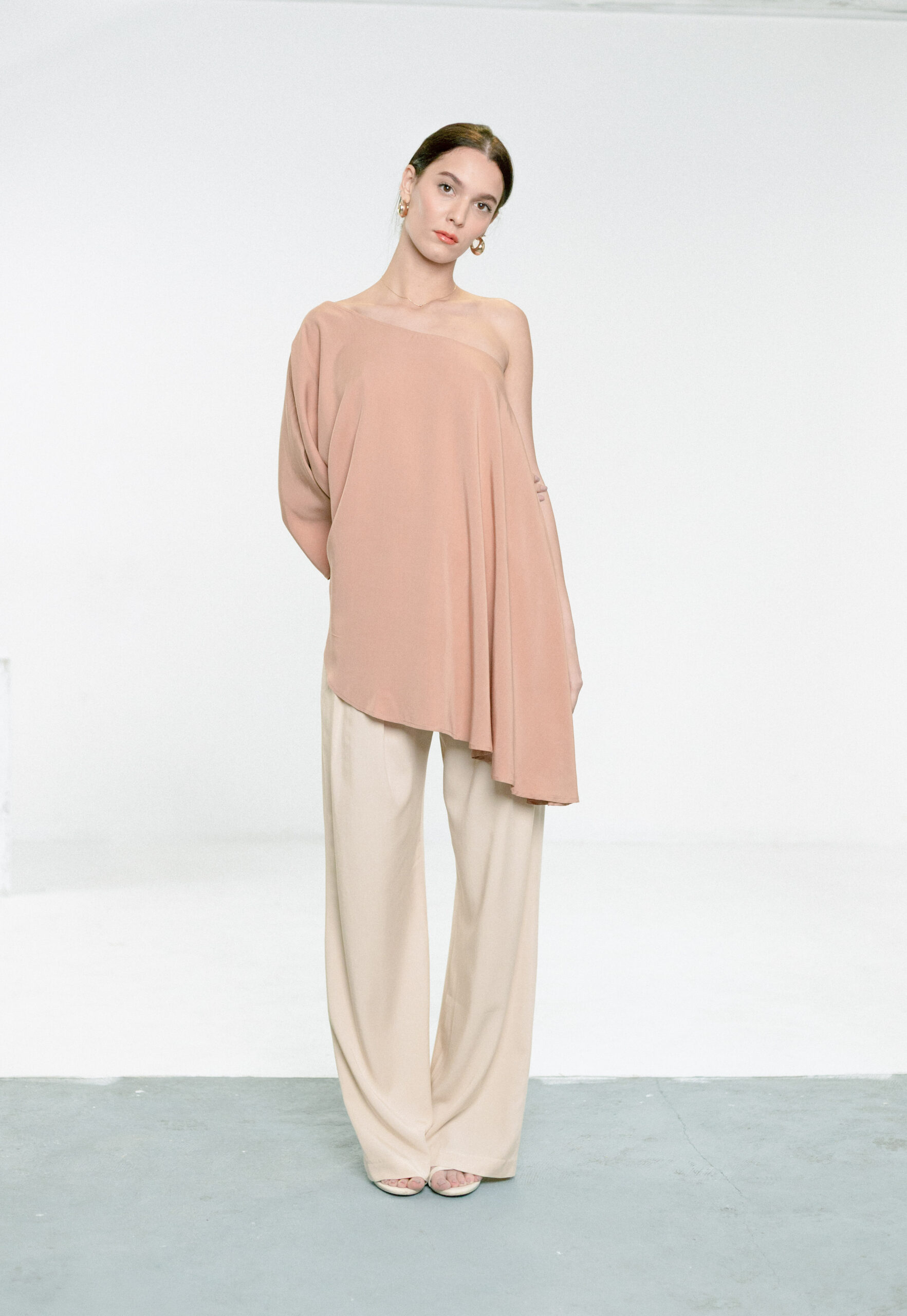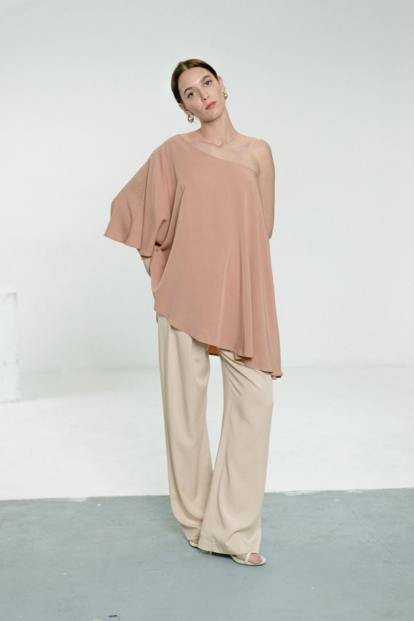 Majica Aura na jedno rame, široka je, lepršava i izrađena od 50% Lyocella (Tencel®) i 50% Modala. Asimetričnog je kroja, idealna za tople dane. Stvorena za žene koje vole jednostavnost s karakterom, koje se najbolje osećaju kad im je udobno — i kad to udobno izgleda sjajno.