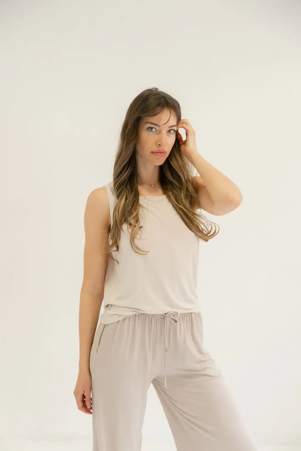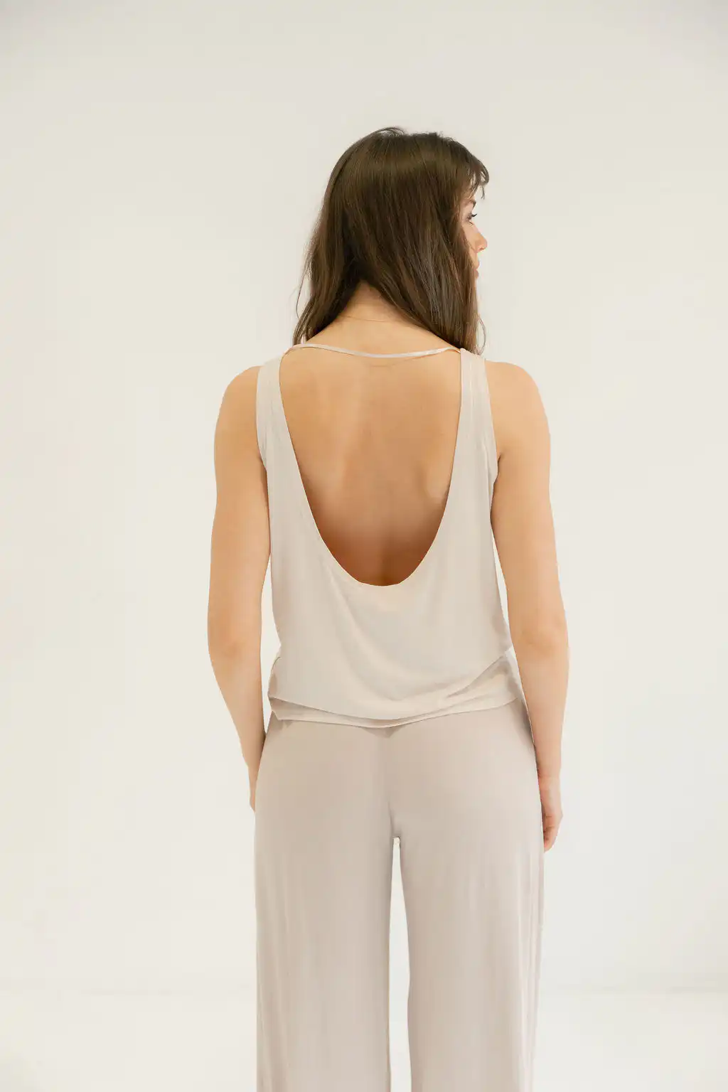 Majica Tank Top na bretele sa otvorenim leđima spaja sveden izgled i suptilnu ženstvenost. Jednostavna napred, a efektna pozadi, lako se prilagođava različitim prilikama – od opuštenih dnevnih do kombinacija uz sako za poslovni stil. U kombinaciji sa Viscose pantalonama daje utisak kompleta, poput laganog, modernog kombinezona koji izgleda sređeno bez mnogo truda.