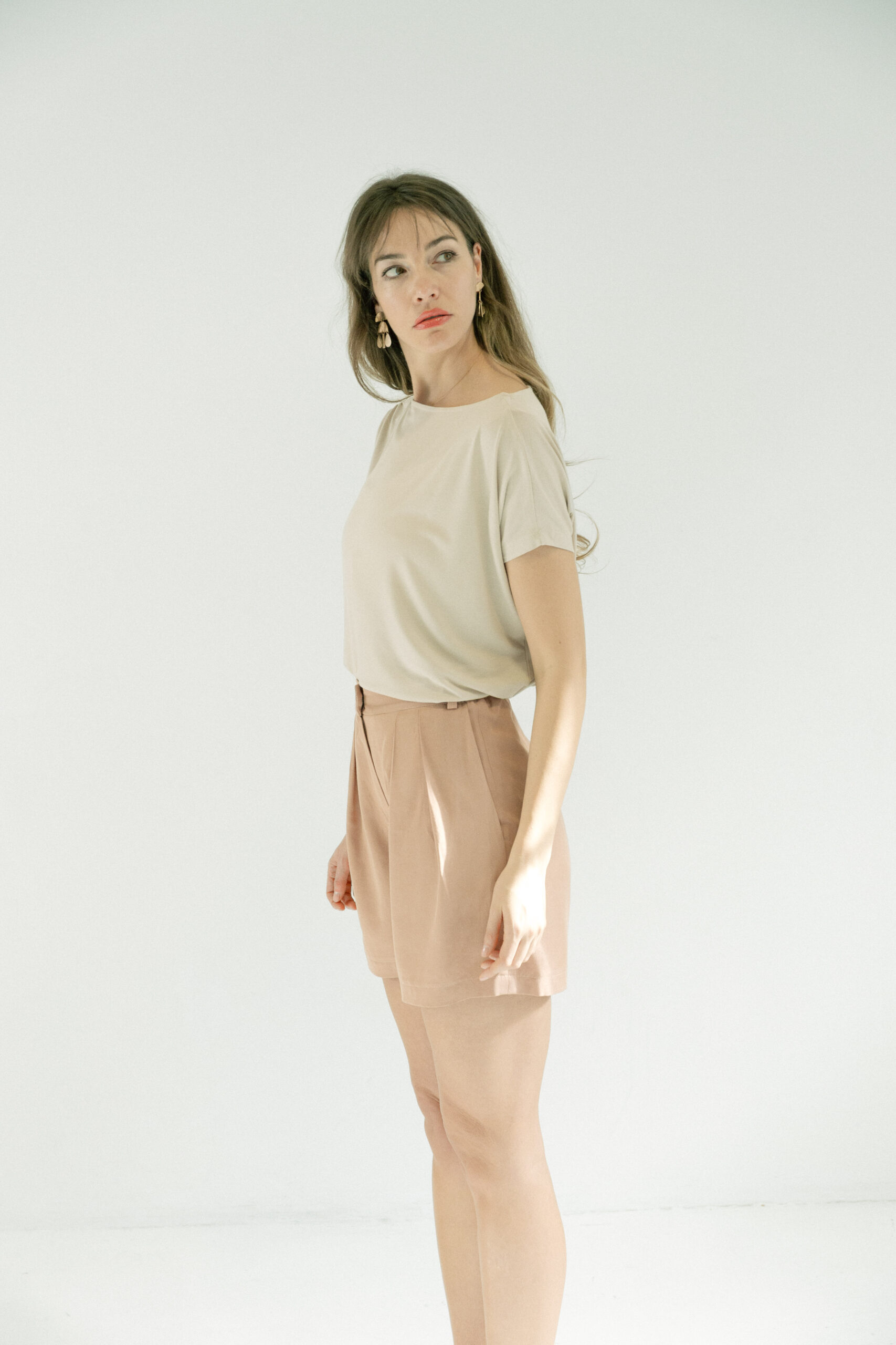 Šorts Hamptons od 50% Lyocella (Tencel®) i 50% Modala, kroj sa visokim strukom i diskretnim faltama, nastaje kao skraćena verzija naših prepoznatljivih Hamptons pantalona, ostavlja osećaj lakoće i prefinjenosti.