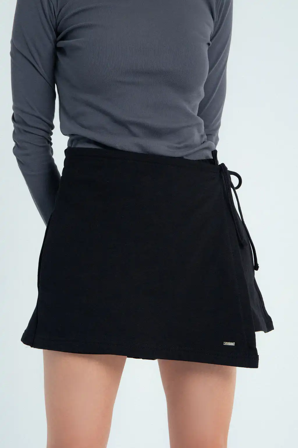 Šorts-suknja preklop je komad koji spaja ženstvenu siluetu i potpunu slobodu pokreta. Sa prednje strane izgleda kao mini suknja, dok skriveni šorts pruža sigurnost i udobnost tokom celog dana. Visoki struk sa elastičnim pojasom i vezivanjem sa strane naglašava liniju struka, dok blago A kroj daje lepršav, moderan izgled. Minimalistički dizajn čini je savršenom za kombinovanje uz oversized duks, jednostavnu majicu ili košulju za urban, chic vibe. Bezvremenski, praktičan i efektan komad koji nosiš kada želiš da izgledaš sređeno, a da se osećaš potpuno opušteno.