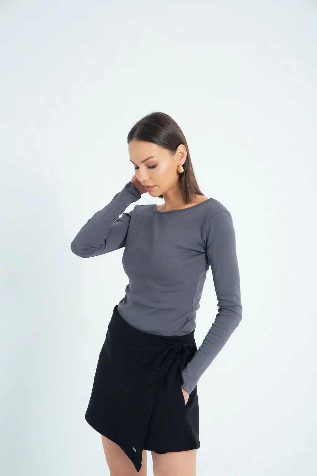 Šorts-suknja preklop ravnog kroja i visokog struka. Šorts za potpunu sigurnost i udobnost. Minimalistički, udoban i moderan komad koji se lako uklapa u svaki urbani outfit.