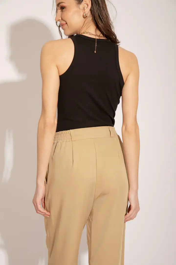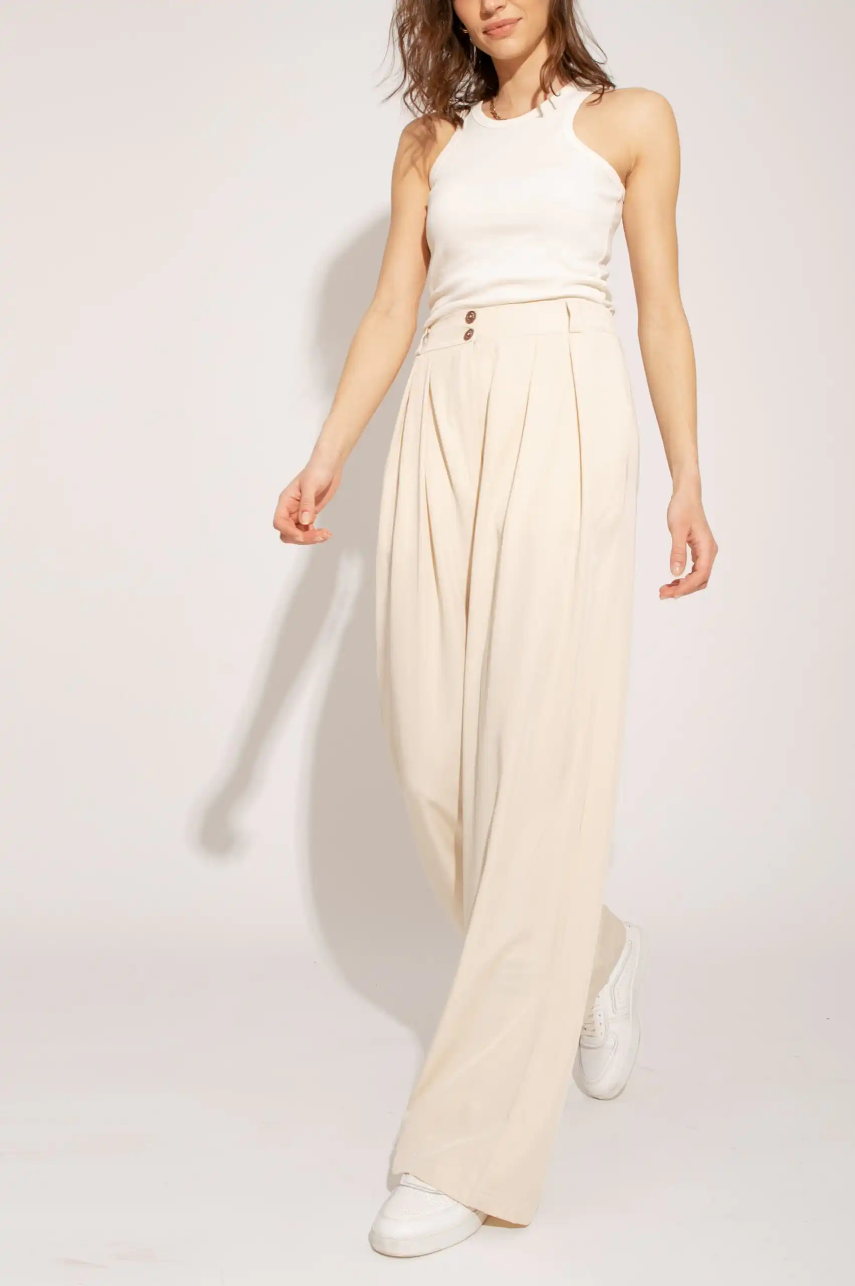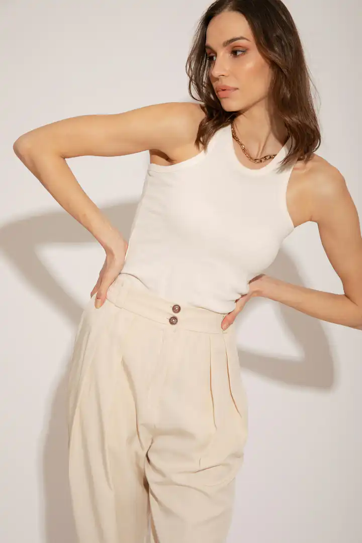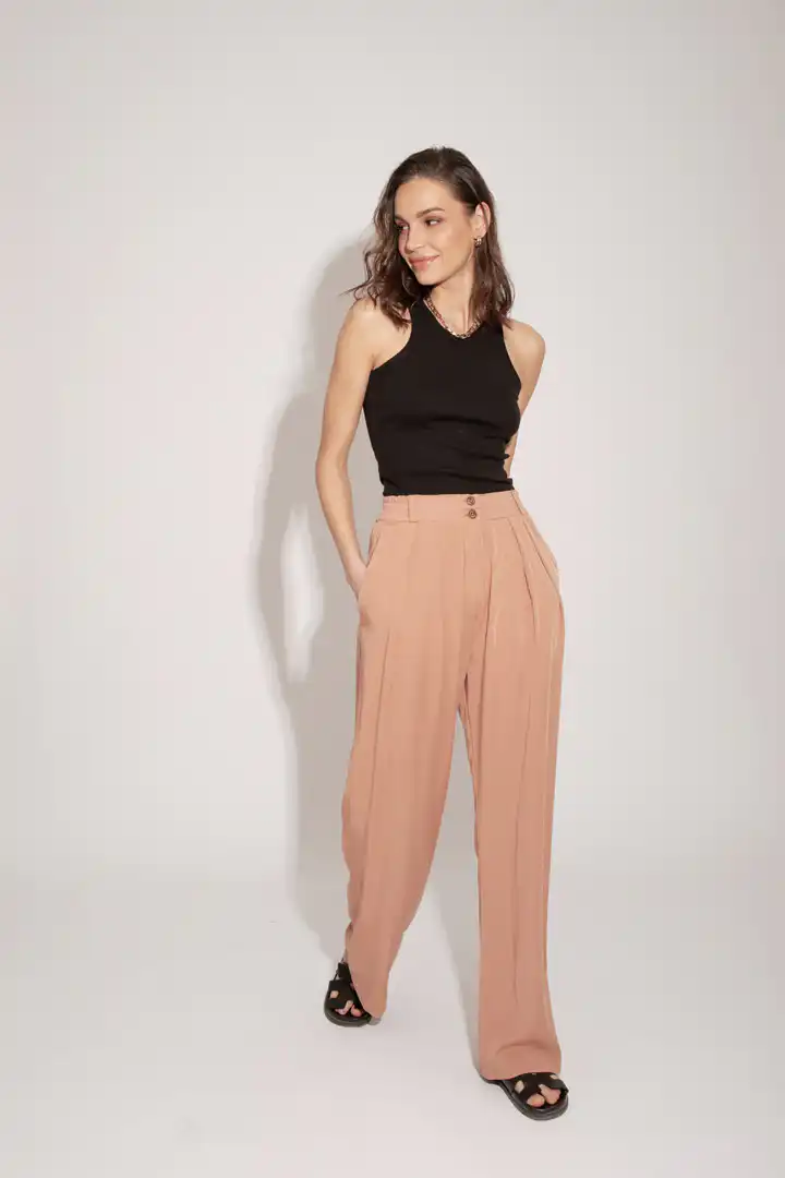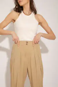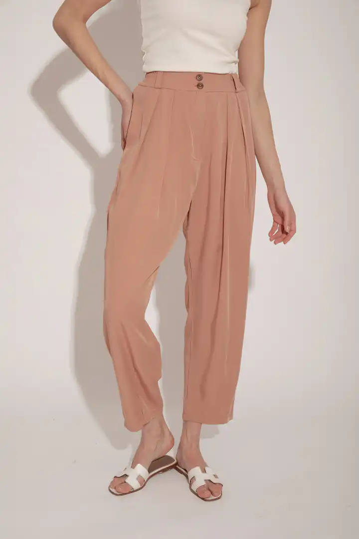 Lagane pantalone od Tencela, širokog kroja, sa džepovima sa strane i duplim kopčanjem, idealne su za sve prilike i stilove. Savršeno stoje različitim tipovima građe, dugačke su i ležerne. Boja masline donosi prirodnu eleganciju i lako se kombinuje sa drugim komadima garderobe. Ove pantalone su dostupne u nijansama masline (Olive), peska (Sand), bledo roze (Blush) i slonovače (Ivory). Ne samo da su udobne, već su i trendi izbor za sve ljubitelje opuštenog stila. Bez obzira da li idete na piknik u prirodi ili na neformalni sastanak sa prijateljima, ove pantalone će vam pružiti udobnost i stil u svakoj prilici.
