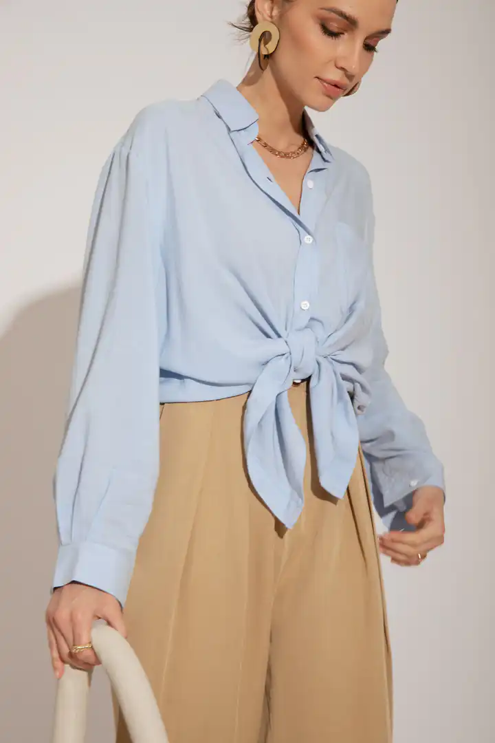 Oversize i dugačka košulja od lagane viskoze sa kopčanjem metalnim dugmićima i velikim džepom na prednjem delu. Idealna za sva godišnja doba. Lagana kako za nošenje, tako i za kombinovanje. Boja nežnog plavog dodaje svežinu i eleganciju vašem izgledu, dok se njen opušteni kroj savršeno uklapa sa različitim stilovima. Nosite je preko farmerki za casual izgled ili je uparite sa suknjom za ženstvenu notu. Ova košulja je jednostavna, ali istovremeno i sofisticirana opcija za vašu garderobu.