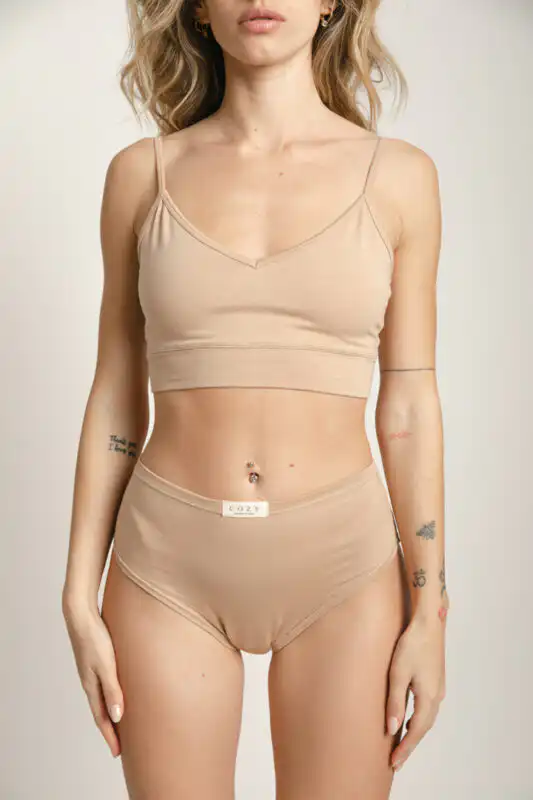 - Ves i donji veš od organskog pamuka: Gaćice i brushalteri u crnoj i pesak nijansama napravljeni su od 100% organskog pamuka, što ih čini savršenim izborom za one koji traže prirodne i udobne materijale. S obzirom da su donji veš i brushalteri najbliži koži, bitno je da budu izrađeni od materijala koji omogućava koži da diše.