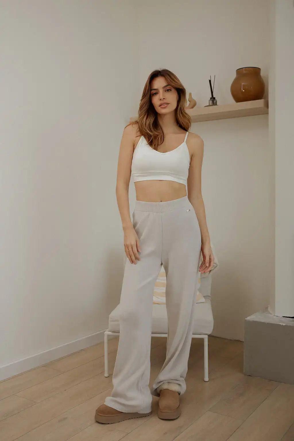 Knitted pantalone su stvorene za svaki trenutak kada ti treba udobnost, sloboda pokreta i osećaj topline. Model je dizajniran tako da prati pokret, ne steže i ne sputava, već pruža idealan spoj između minimalizma i komfora, savršen izbor za dom, posao od kuće ili ležerne dnevne kombinacije.