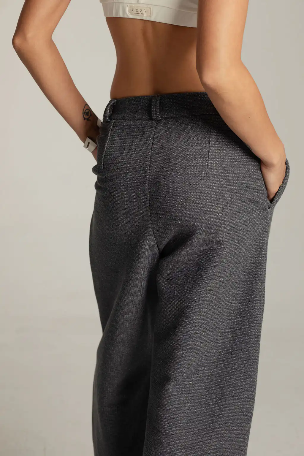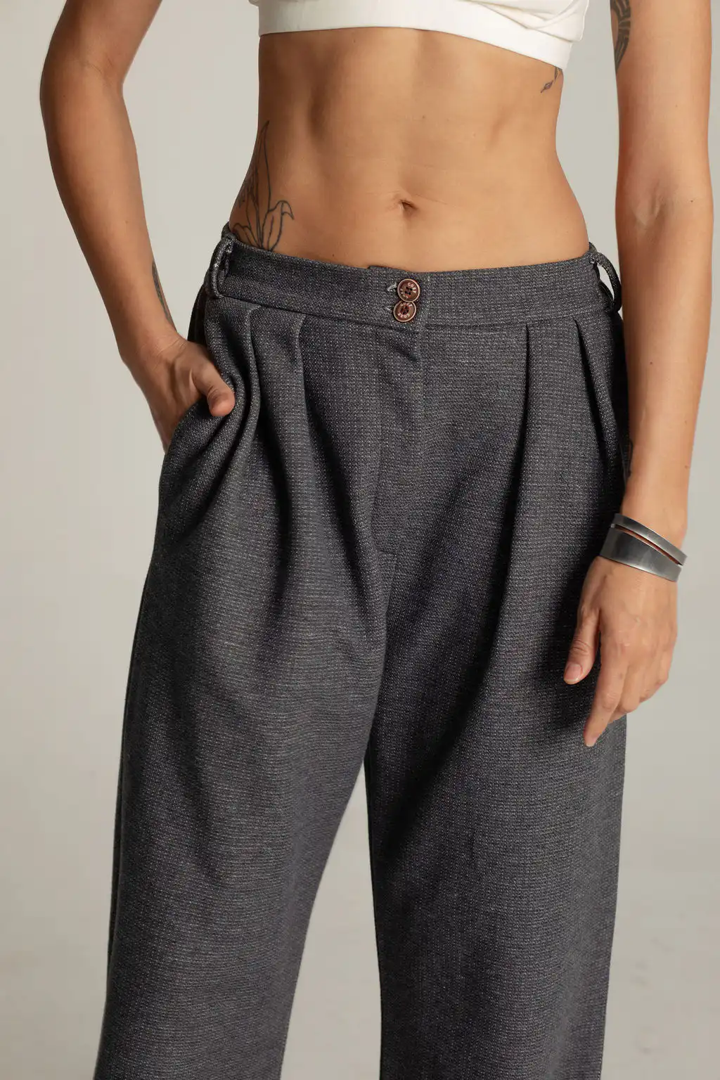 Sportsko elegantne pamučne pantalone koje prilikom nošenja stvaraju osećaj nošenja trenerke, a istovremeno mogu da se nose i na posao i izlazak. Ravnog opuštenog kroja, sa džepovima sa strane, i kopčanjem na rajsferjšlus i lastišem u pojasu, ideane su za sve koji vole udobnost i žele da izgledaju stilizovano. Sa svojim širokim krojem, mogu se nositi sa majicom i patikama za ležeran izgled, ili sa košuljom i cipelama za nešto sofisticiraniji izgled.