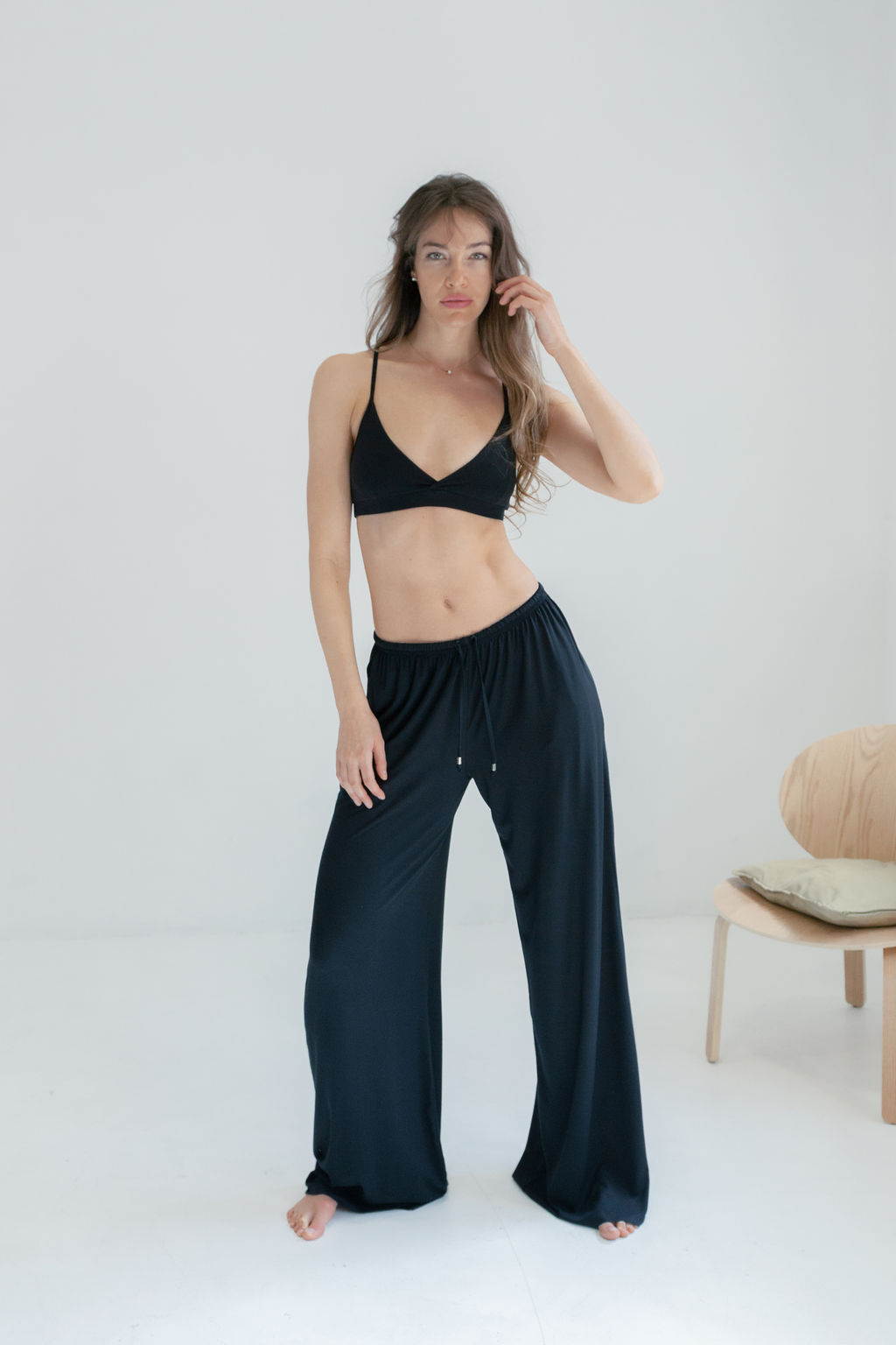 Letnja verzija Palazzo trenerke, lagane pantalone od viskoze, savršene za visoke temperature i vrele letnje noći.