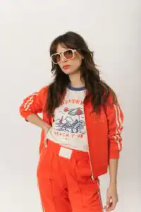 Srce ove kolekcije je crvena boja – simbol strasti, hrabrosti i borbenog duha. Izabrali smo posebnu živahnu i pomalo drčnu nijansu crveno narandžaste – Cherry tomato. Ova nijansa nije samo modni izbor, već podsetnik na hrabre ljude koji su ustali za ono u šta veruju. Bilo da dominira kroz statement komade ili se provlači kroz detalje, crvena u ovoj kolekciji poziva na akciju, pokret i glasno izražavanje sopstvenog stava. Duks jakna, trenerka i dukserica Jane Red svojim mladalačkim krojem vraćaju u bezbrižne dane kada su se ispisivali spomenari, čekao veliki odmor da se ugleda simpatija iz drugog odeljenja, a muzika slušala na max i sanjali veliki snovi.