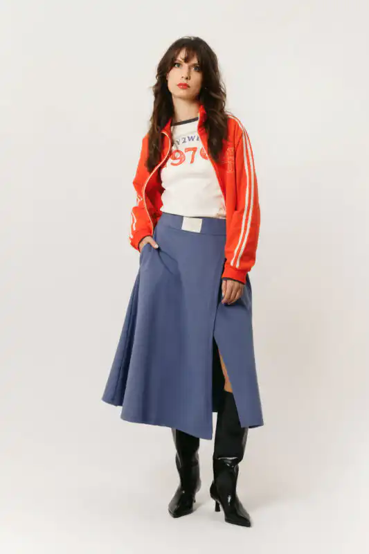 Nestašna suknja Lolita vraća nas u školske hodnike, bežanije sa časa i preskakanje lastiša, dok suknja Asymmetrical unosi dozu bunta. Trenerka Denim sa prugama evocira retro sportski duh ali u kombini sa košuljom garantuje vremenski neograničenu klsiku. Isti efekat postižu i pantalone Kate. Svaki komad priča priču o slobodi – da se izraziš, da se krećeš, da budeš ono što jesi bez kompromisa i stavljanja u tuđe kalupe.