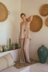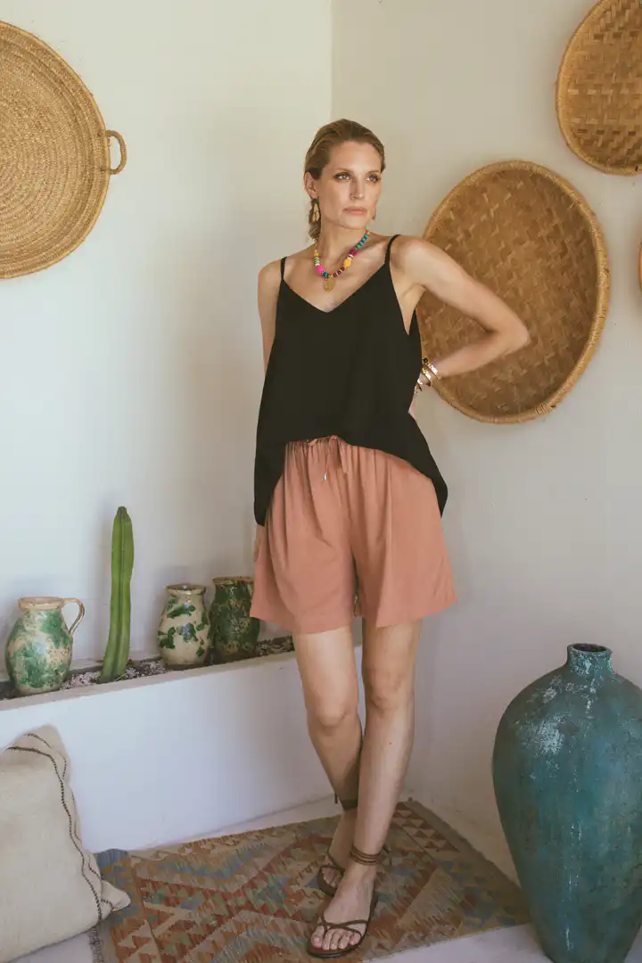 Ovog leta, u našoj novoj kolekciji, predstavljamo i Laganini pantalone i šortseve, koji predstavljaju evoluciju naših popularnih Palazzo pantalona iz prethodne kolekcije. Izrađeni od iste visokokvalitetne 100% viskoze, Laganini modeli su prilagođeni toplijem vremenu, nudeći još veću udobnost i slobodu kretanja.