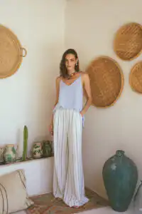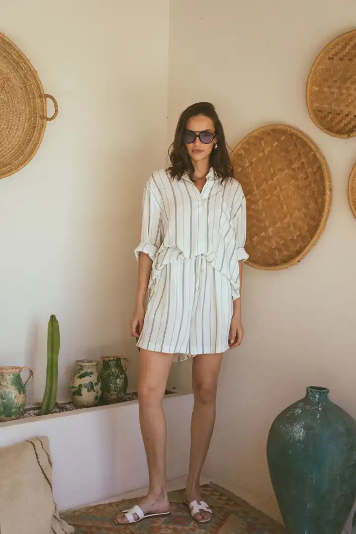 Laganini pantalone i šortsevi dolaze u širokom spektru boja: stripes, black, olive, sand, i clay, svaki sa visokim strukom, kosim prednjim džepovima i prefinjenim faltama. Ako ste uživali u ležernosti i stilu naših Palazzo pantalona, sigurno ćete obožavati Laganini modele. Ove pantalone i šortsevi su savršeni za sve letnje prilike, od opuštenih popodneva na plaži do večernjih šetnji gradom.